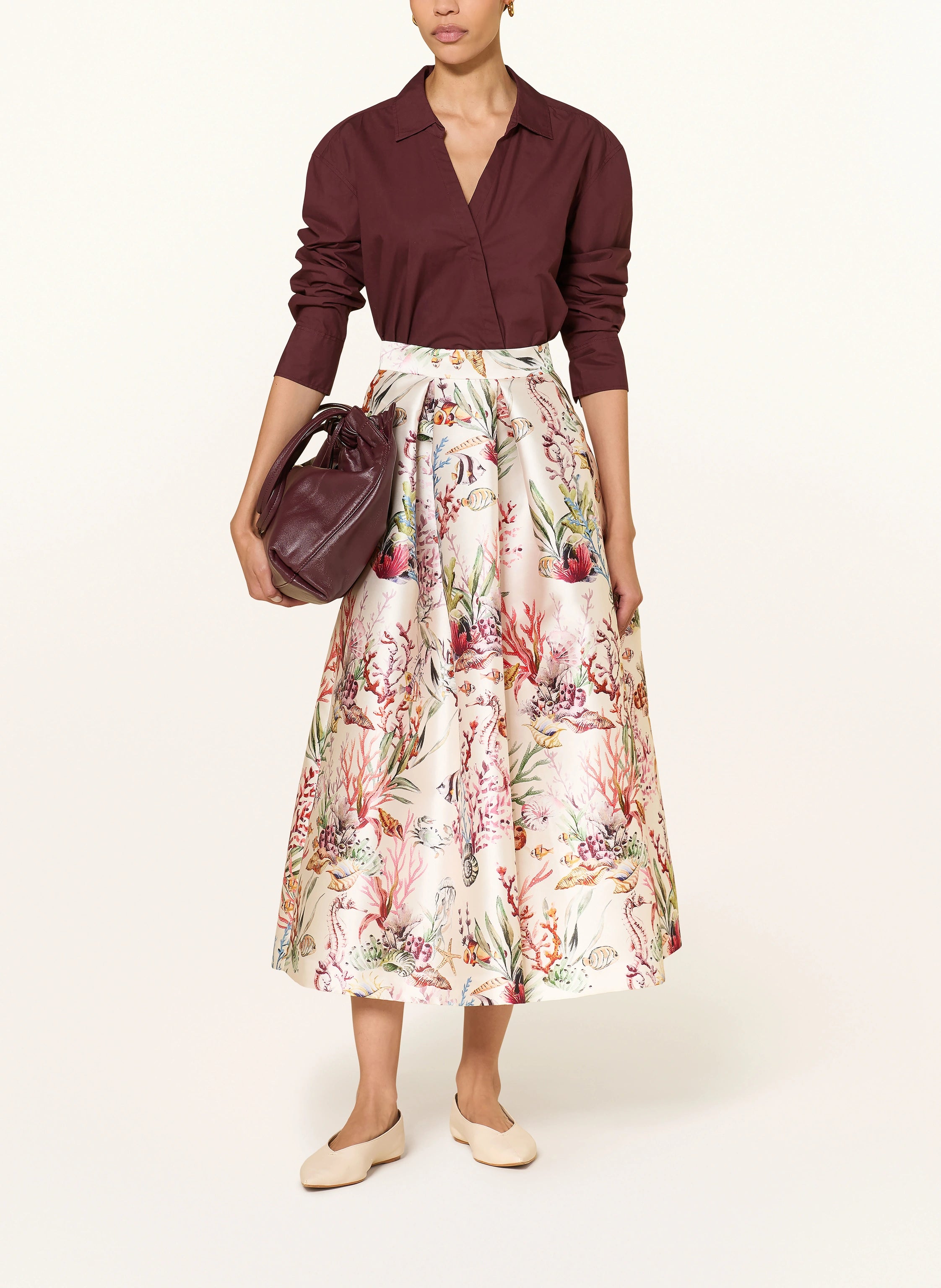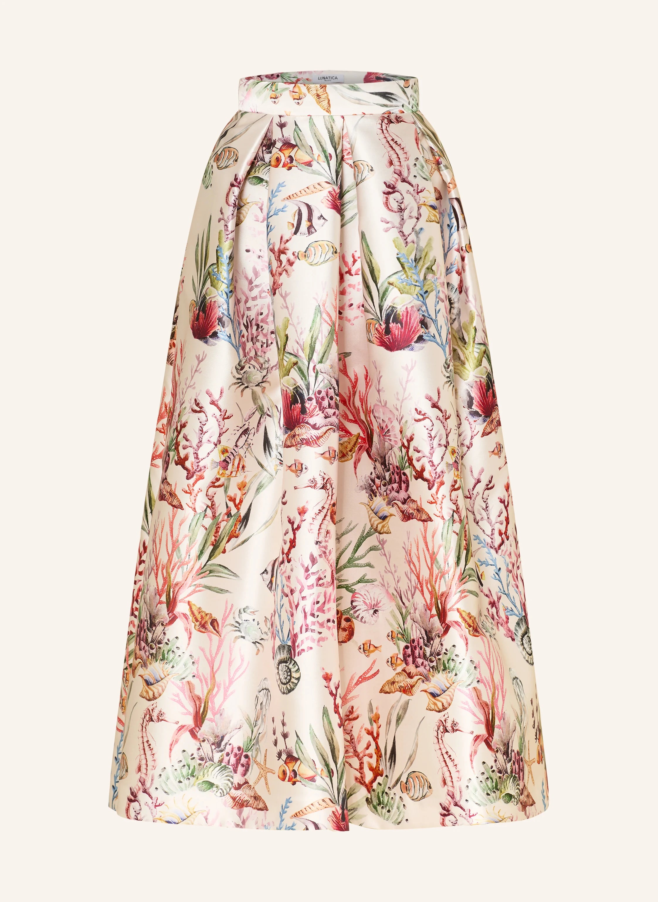 The skirt features a striking all-over print that ensures you make an impact from every angle. Its flared cut is designed to sit high on the waist before sweeping out into a voluminous, feminine silhouette. Despite its substantial look, the piece is unlined, offering a fluid, lightweight drape that moves effortlessly with you.