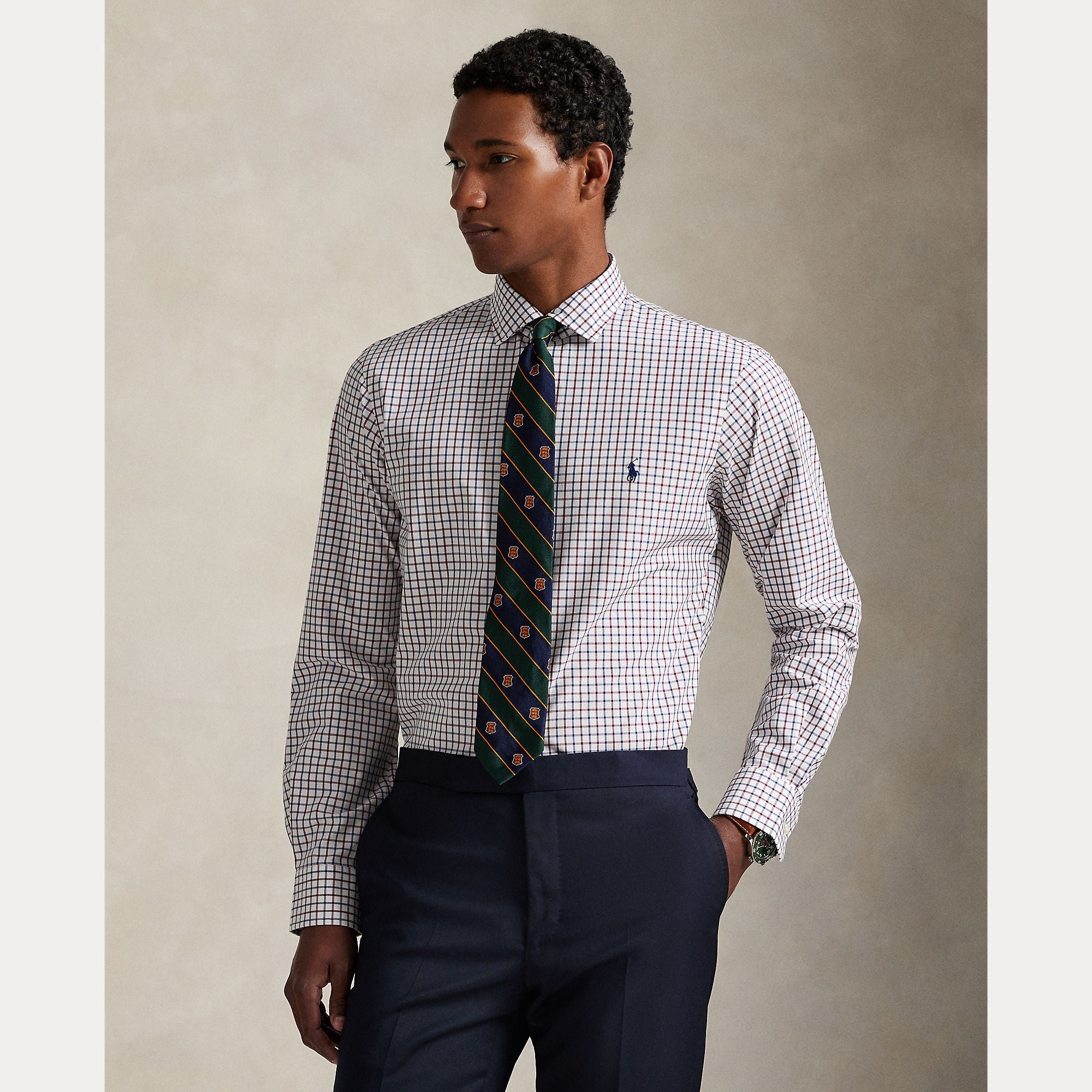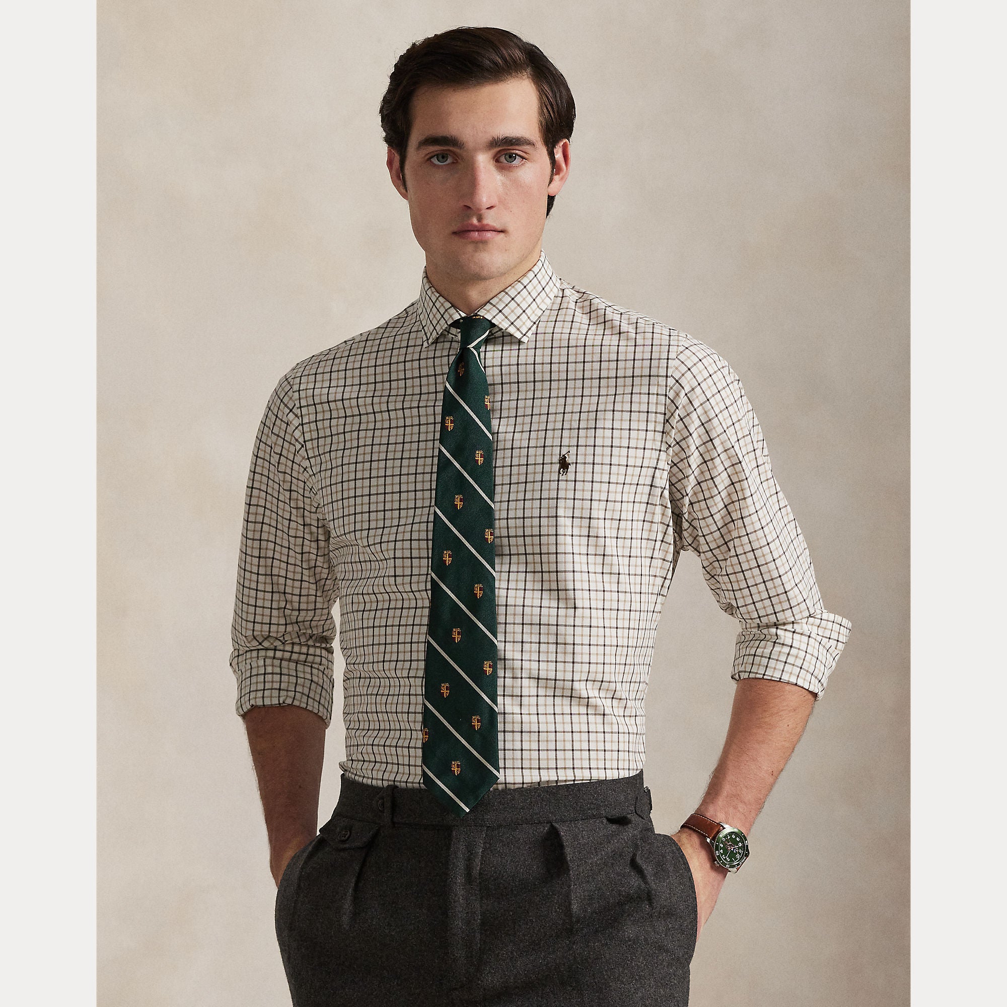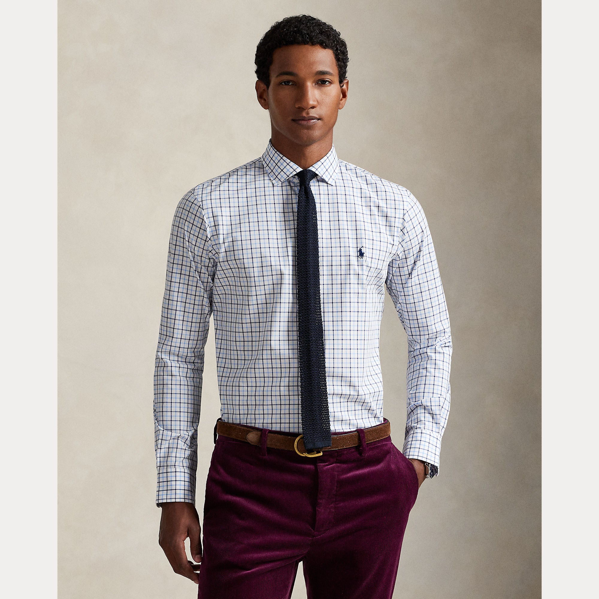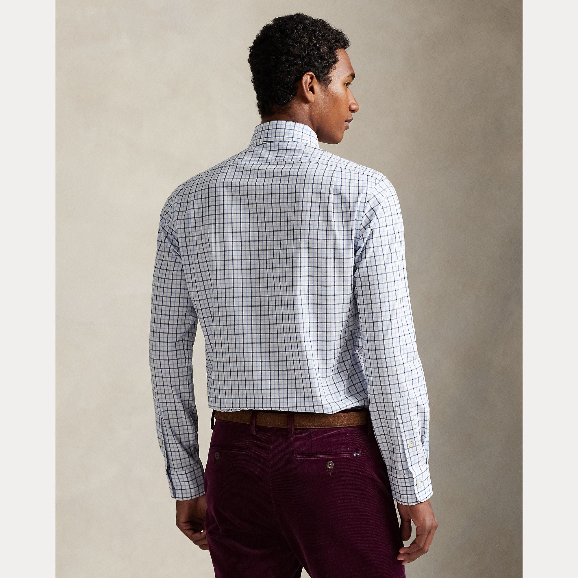 CUSTOM FIT PLAID STRETCH POPLIN SHIRT