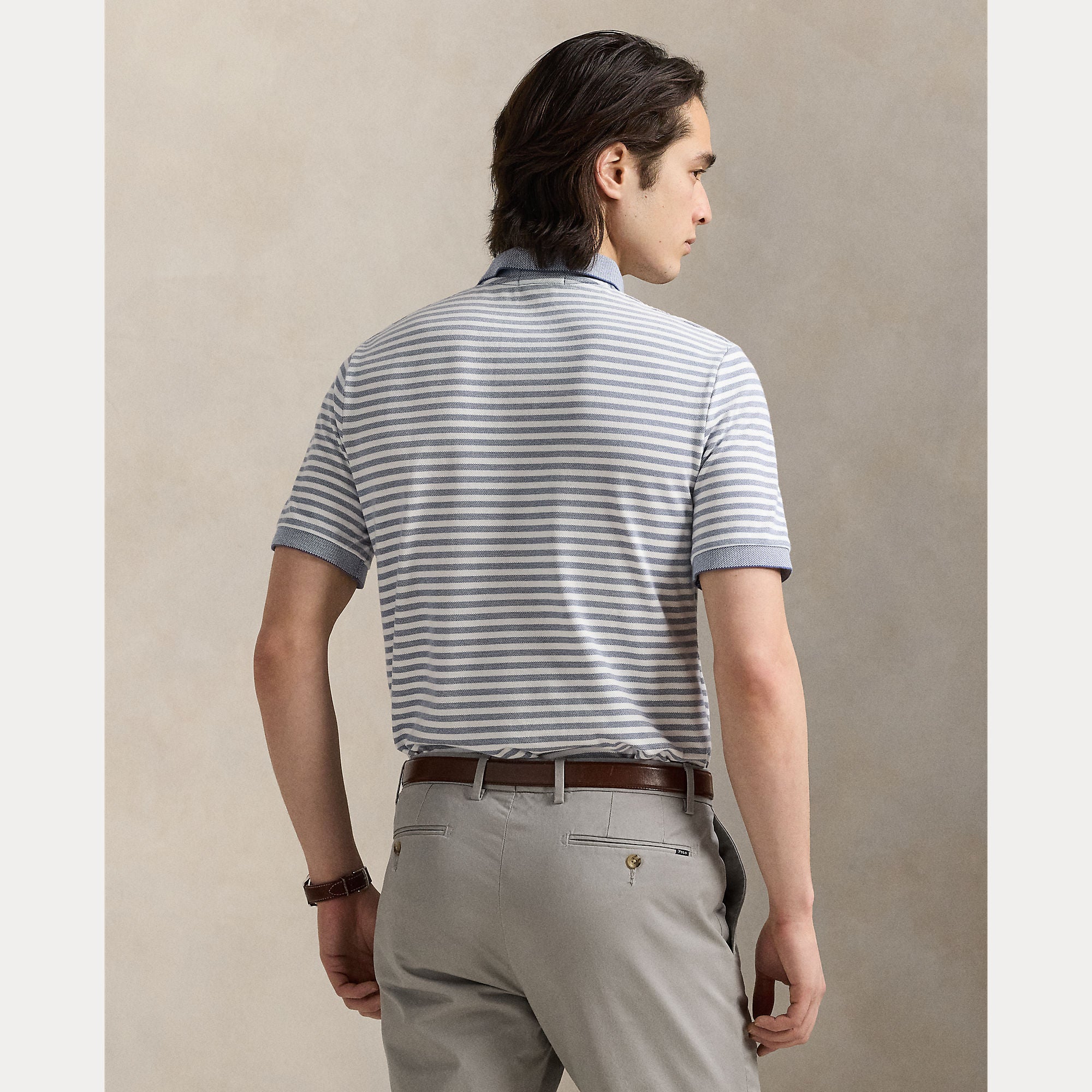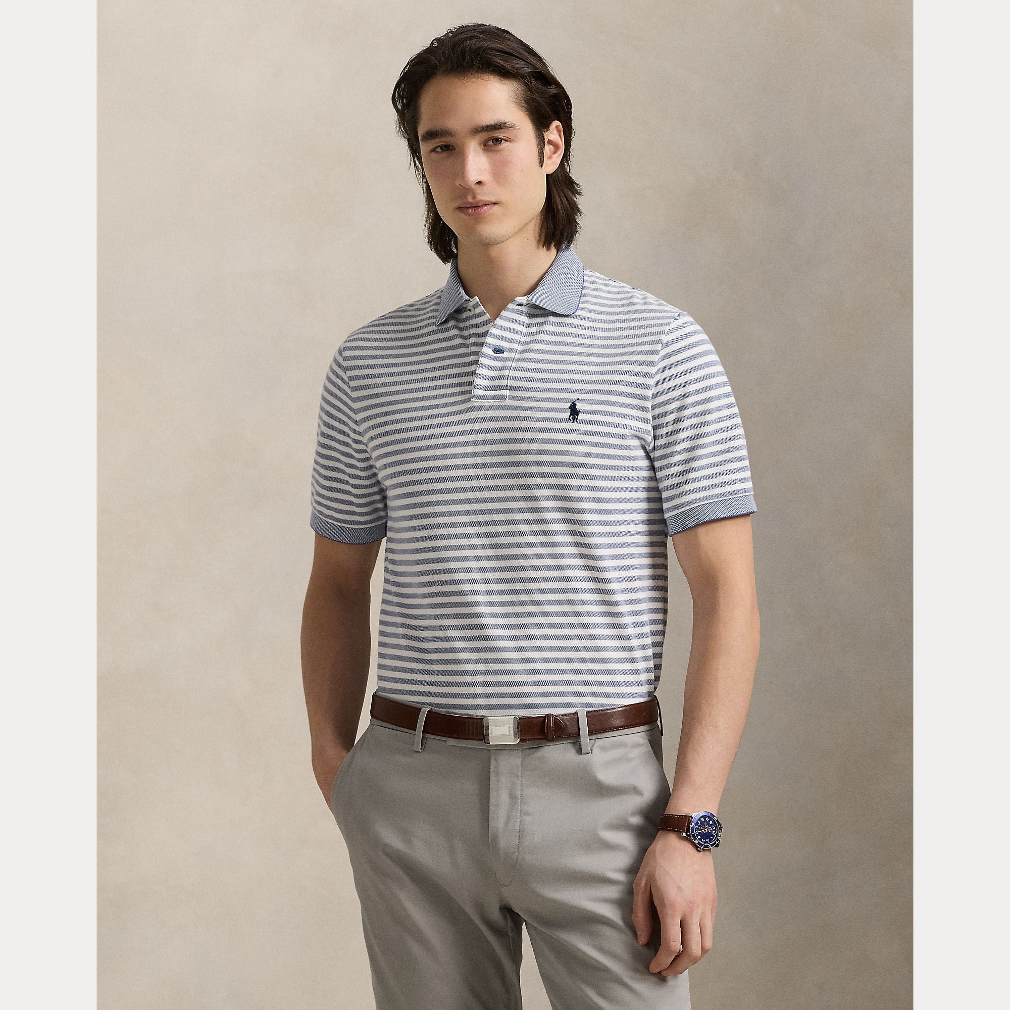 An American style standard since 1972, the Polo shirt has been imitated but never matched. Over the decades, Ralph Lauren has reimagined his signature style in a wide array of colors and fits, yet all retain the quality and attention to detail of the iconic original. This striped version is made with a cotton mesh fabric that draws inspiration from oxford cloth.