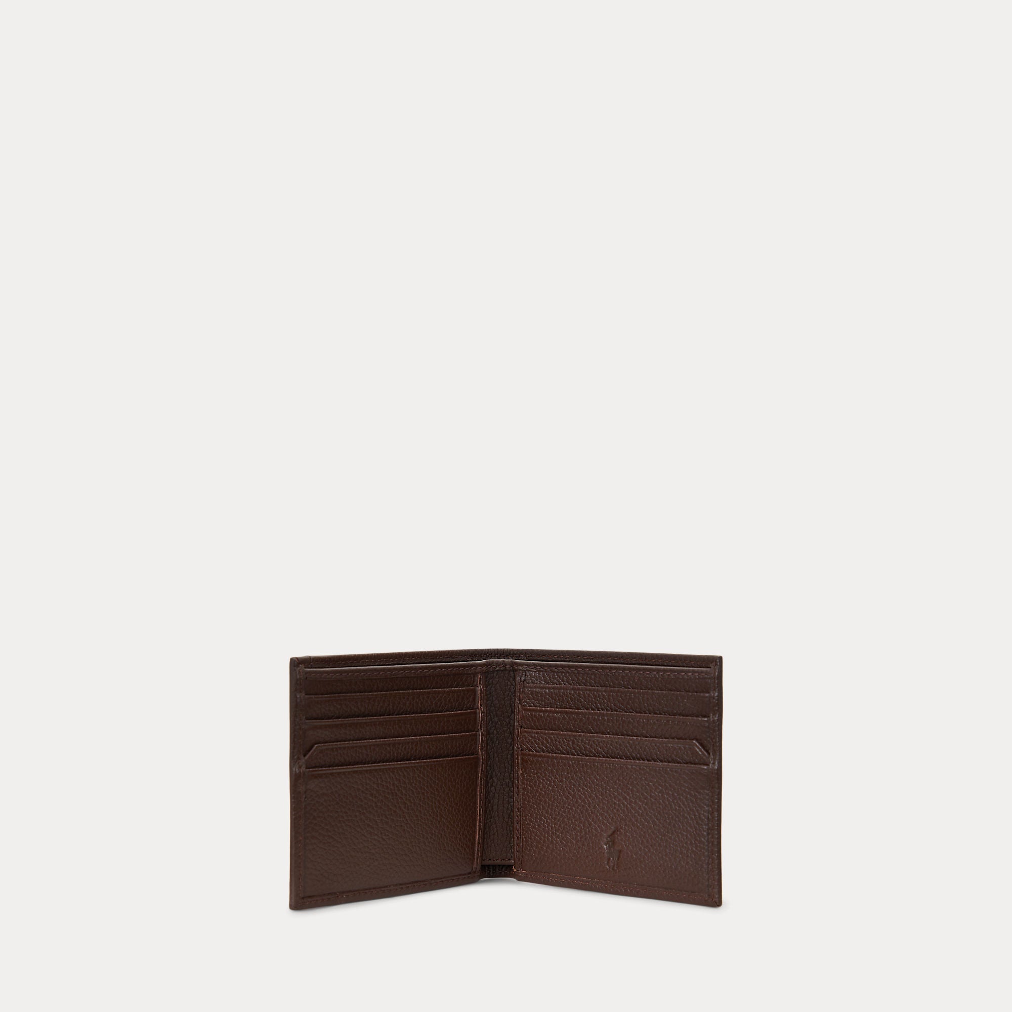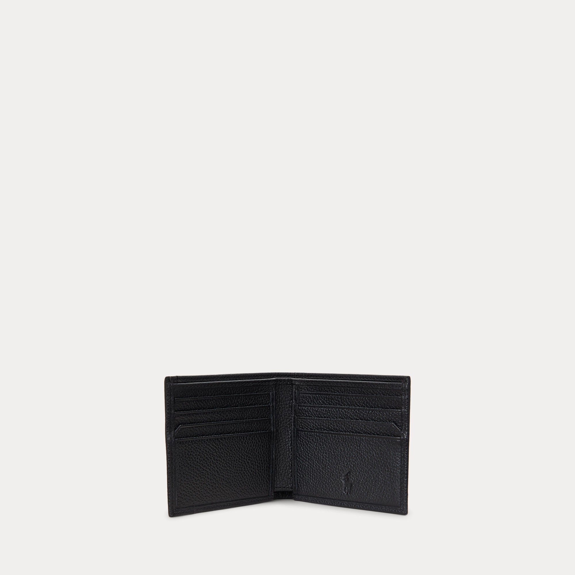 Slim design. Single-needle–stitched edges.Card slot at the front. Eight card slots, one currency pocket, and two slip pockets at the interior.“Polo Ralph Lauren” and signature Pony embossed at the front.Signature Pony debossed at the interior.Pockets are lined with polyester.3.75" H x 4.25" L.Shell: leather. Lining: polyester.Presented in a signature box.