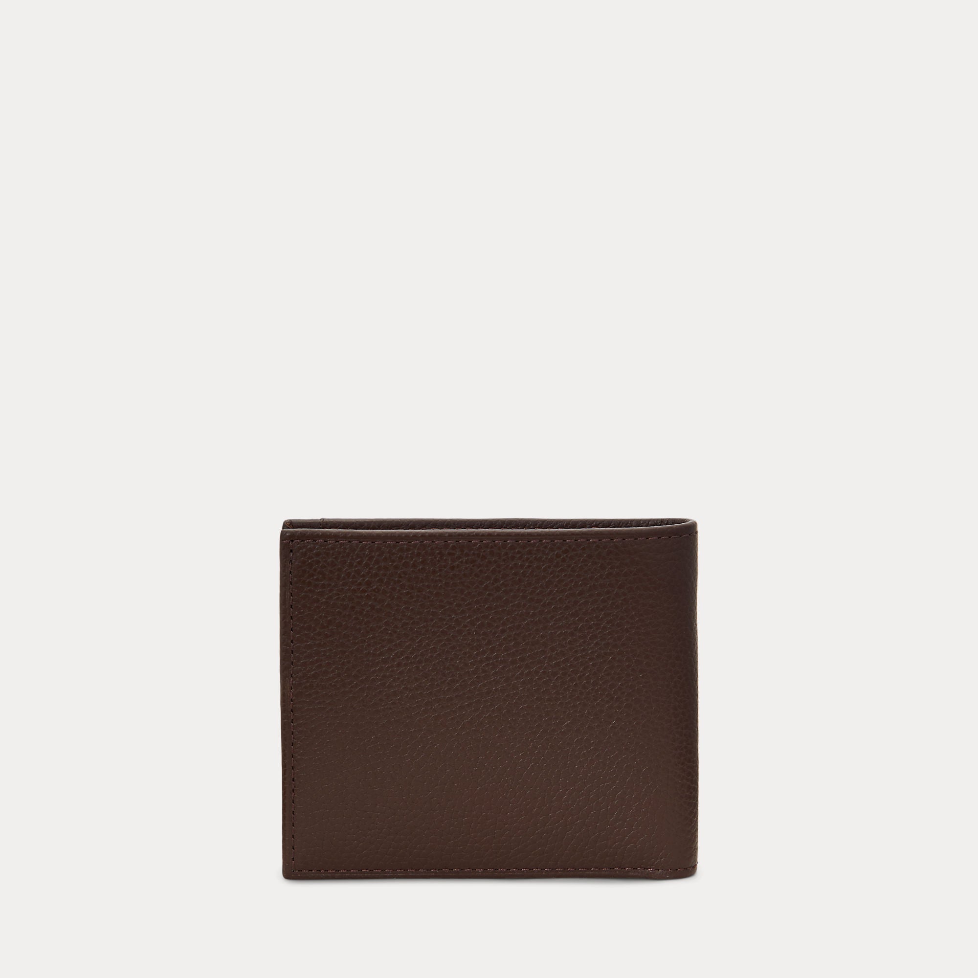 Crafted with pebbled leather, this slender billfold wallet is designed with multiple pockets, including a card slot at the front.