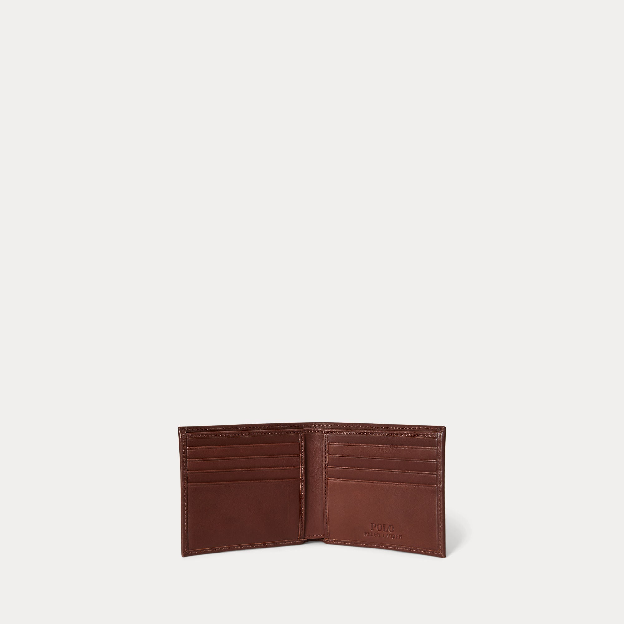 Ralph Lauren’s iconic mascot is embroidered on this slim billfold wallet, which is crafted with waxed full-grain leather.