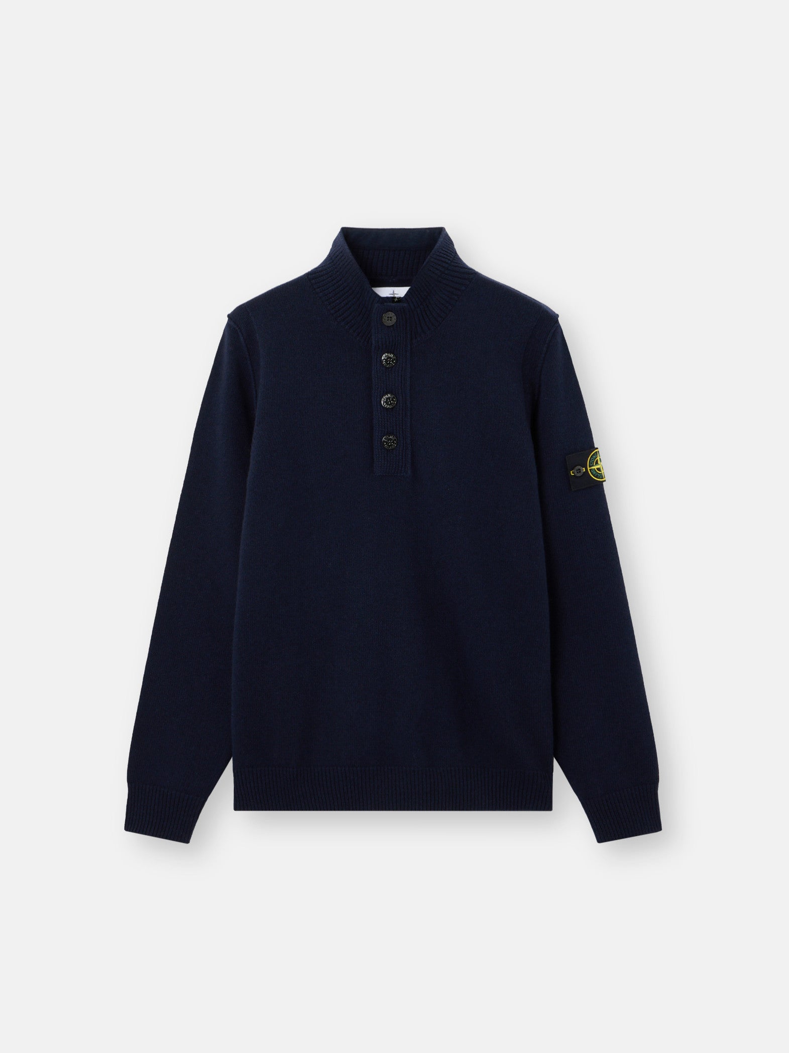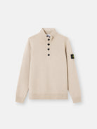 Knit half-zip jumper in lamb wool and nylon blend. Stocking stitch. Gauge 7.