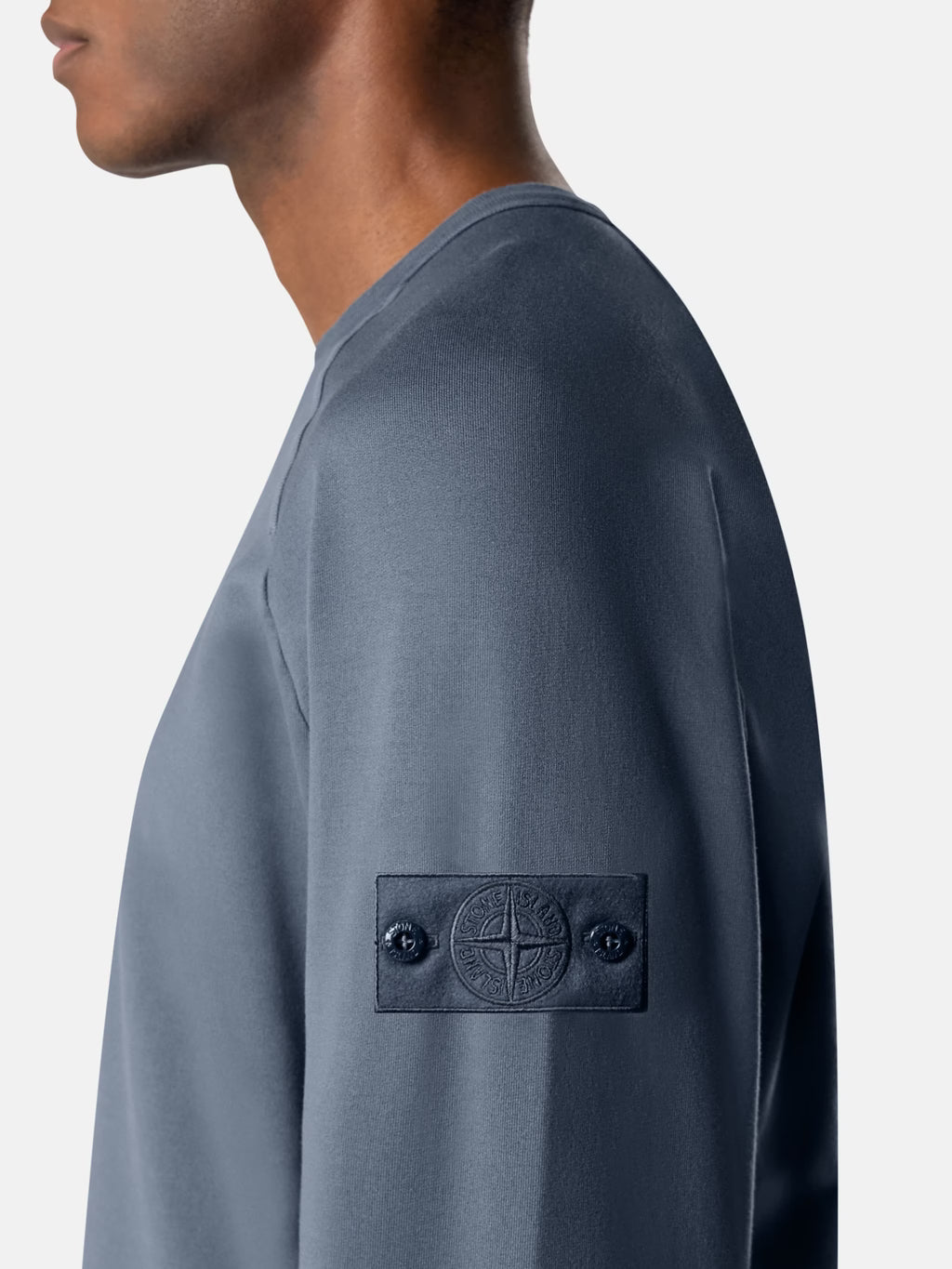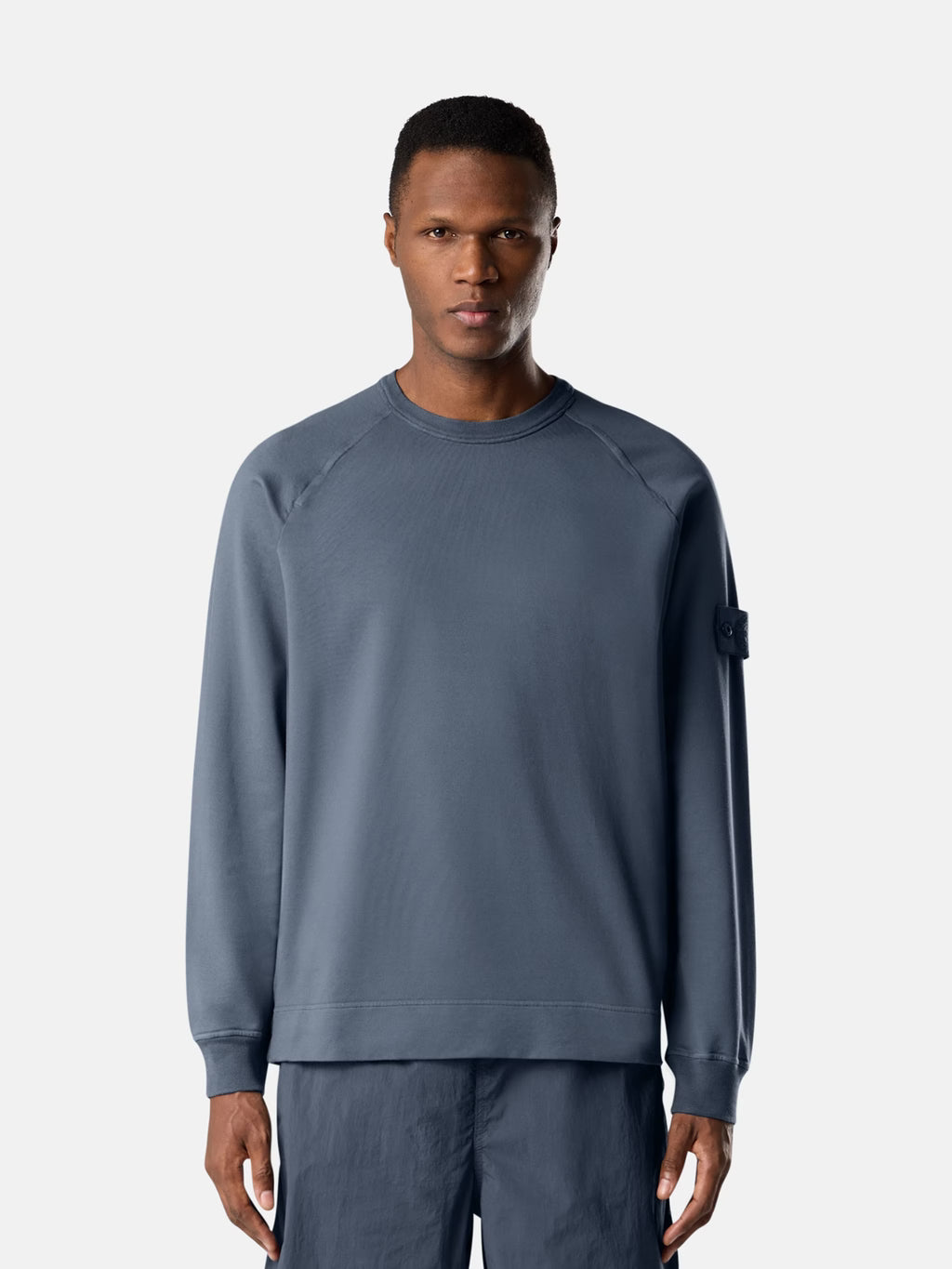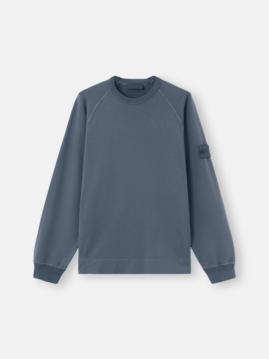 Crewneck sweatshirt in cotton stretch fleece featuring raglan sleeves and ribbed trims. Lightweight. Garment dyed.
