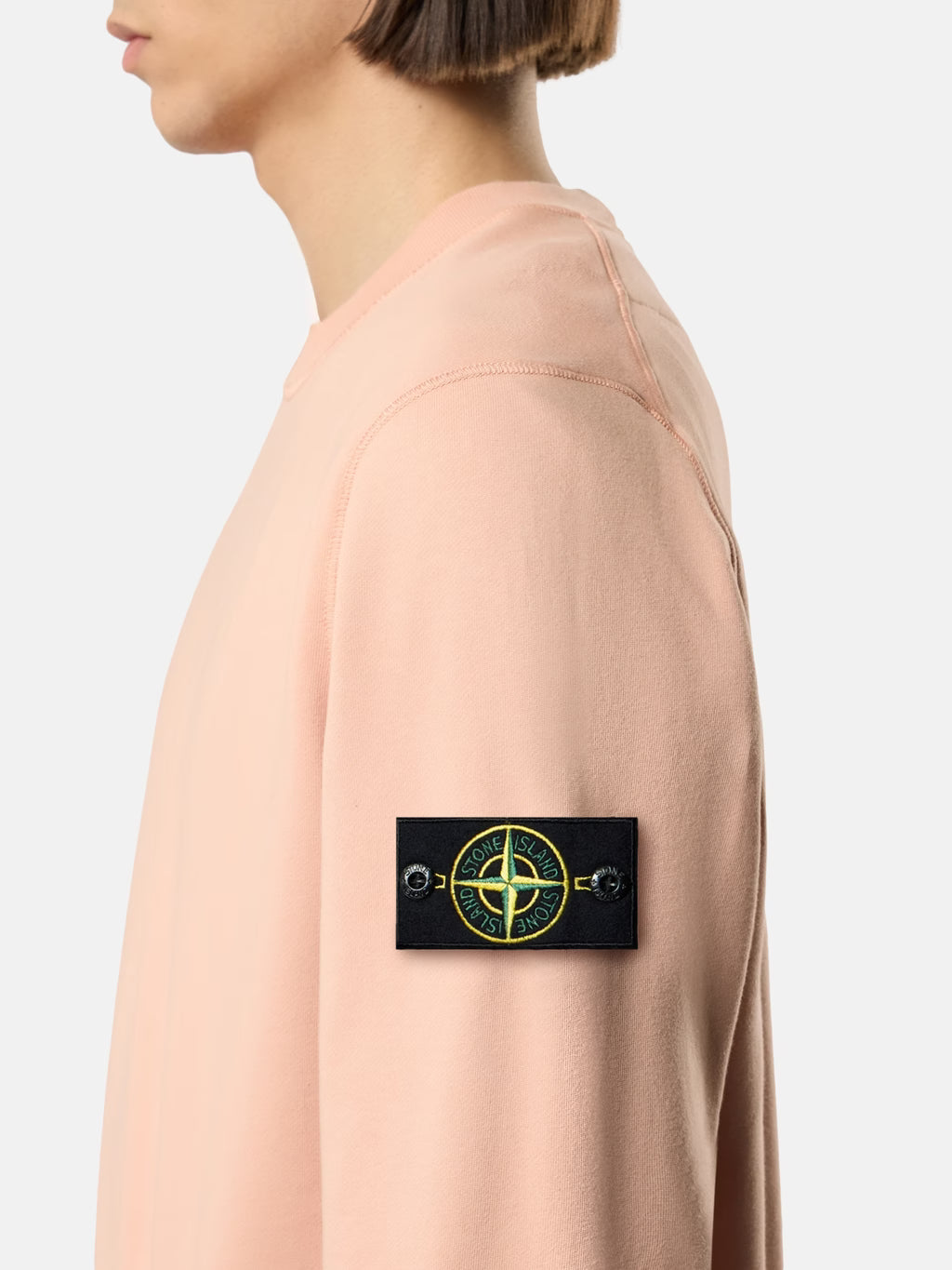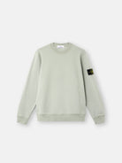 Crewneck sweatshirt in organic cotton fleece, featuring raglan sleeves, overlock seams, ribbed trims, and a lunette detail under the back neckline. Midweight. Garment dyed.