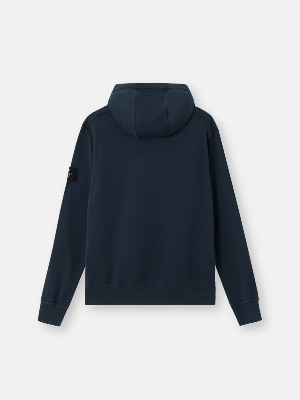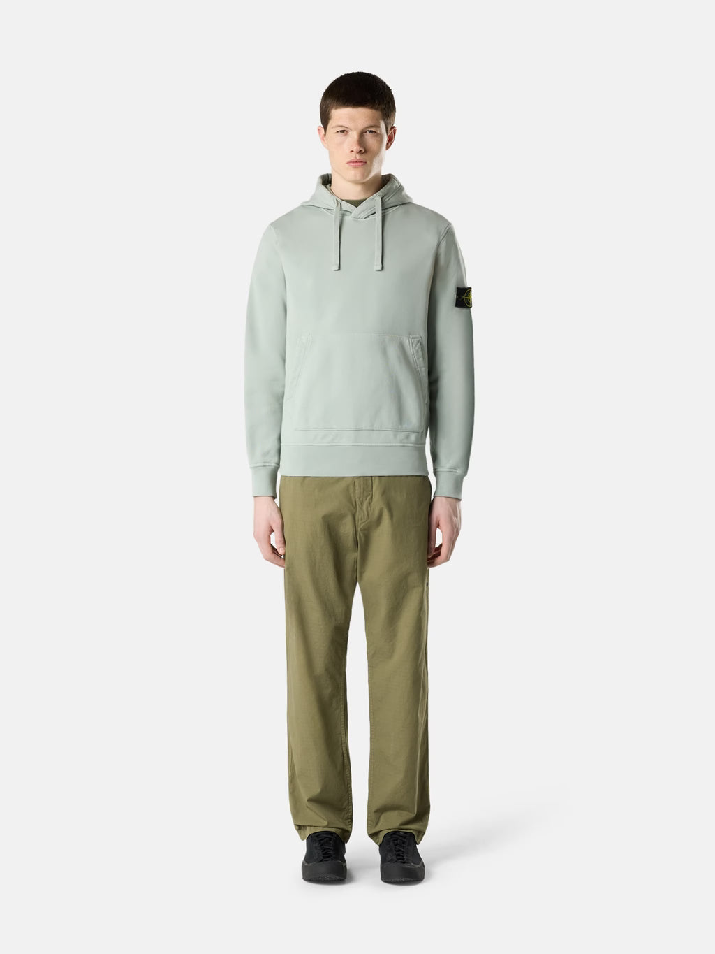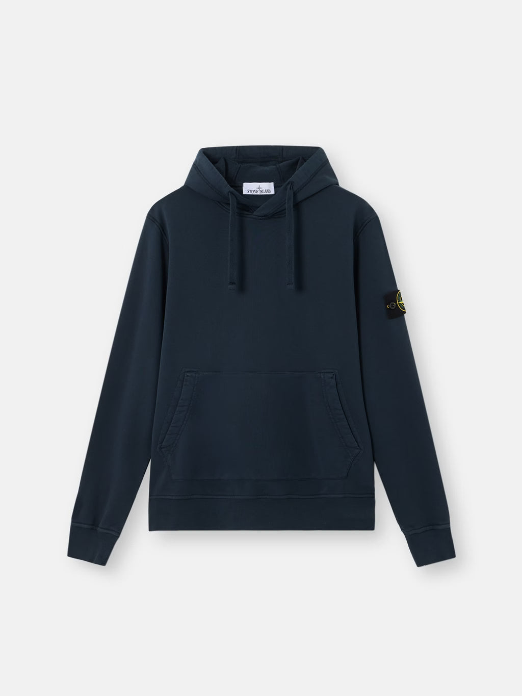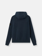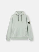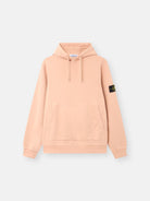 Hooded sweatshirt in organic cotton fleece, featuring a pouch pocket, raglan sleeves on the back, overlock seams, and ribbed trims. Midweight. Garment dyed.