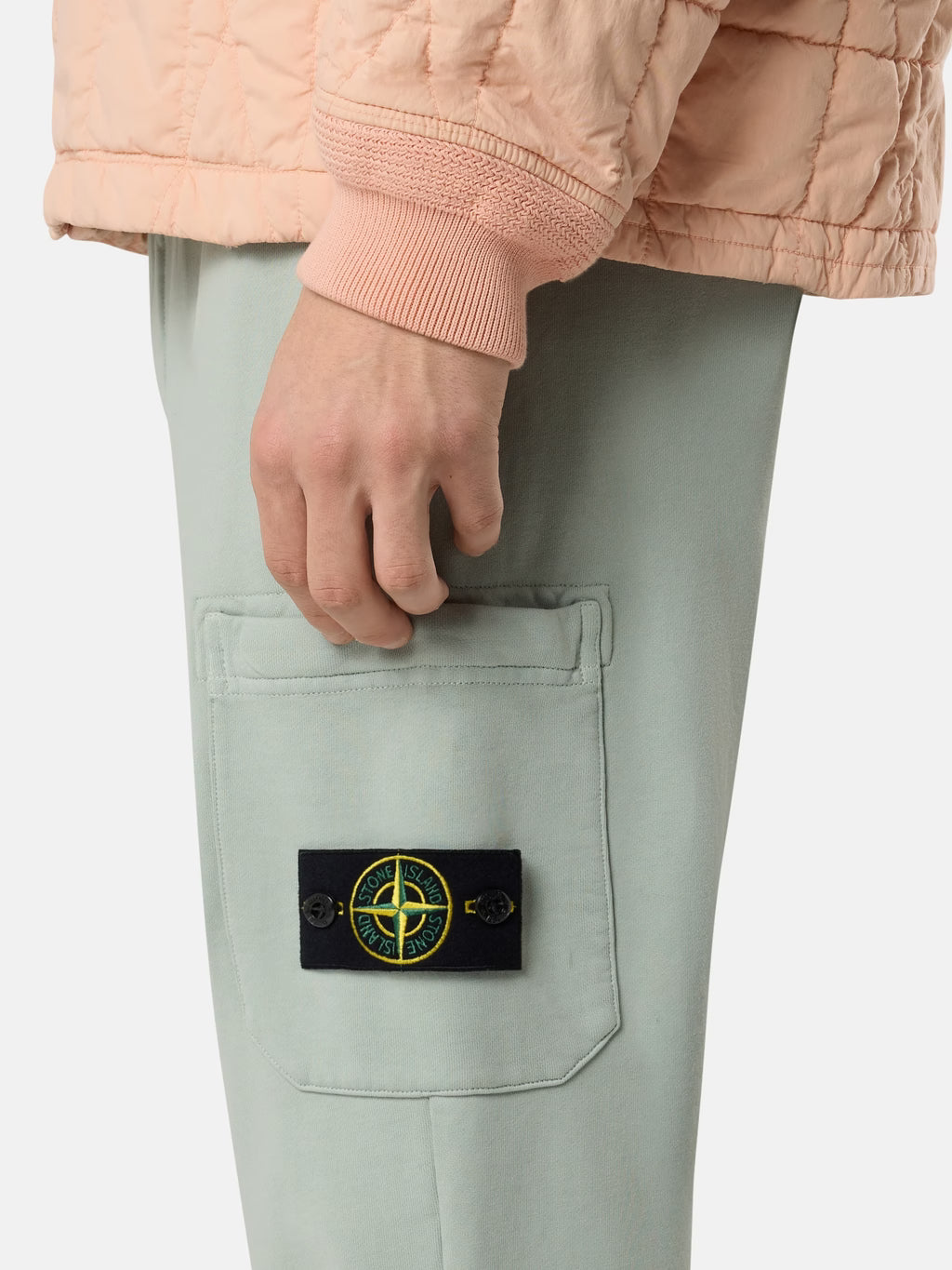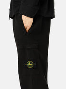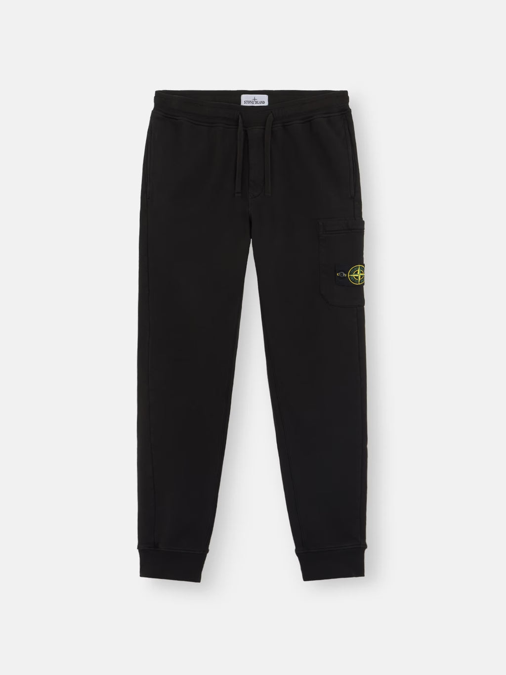 Joggers in organic cotton fleece, featuring hand pockets, a cargo pocket with concealed zip, elasticated drawstring waistband, and ribbed cuffs. Midweight. Garment dyed.