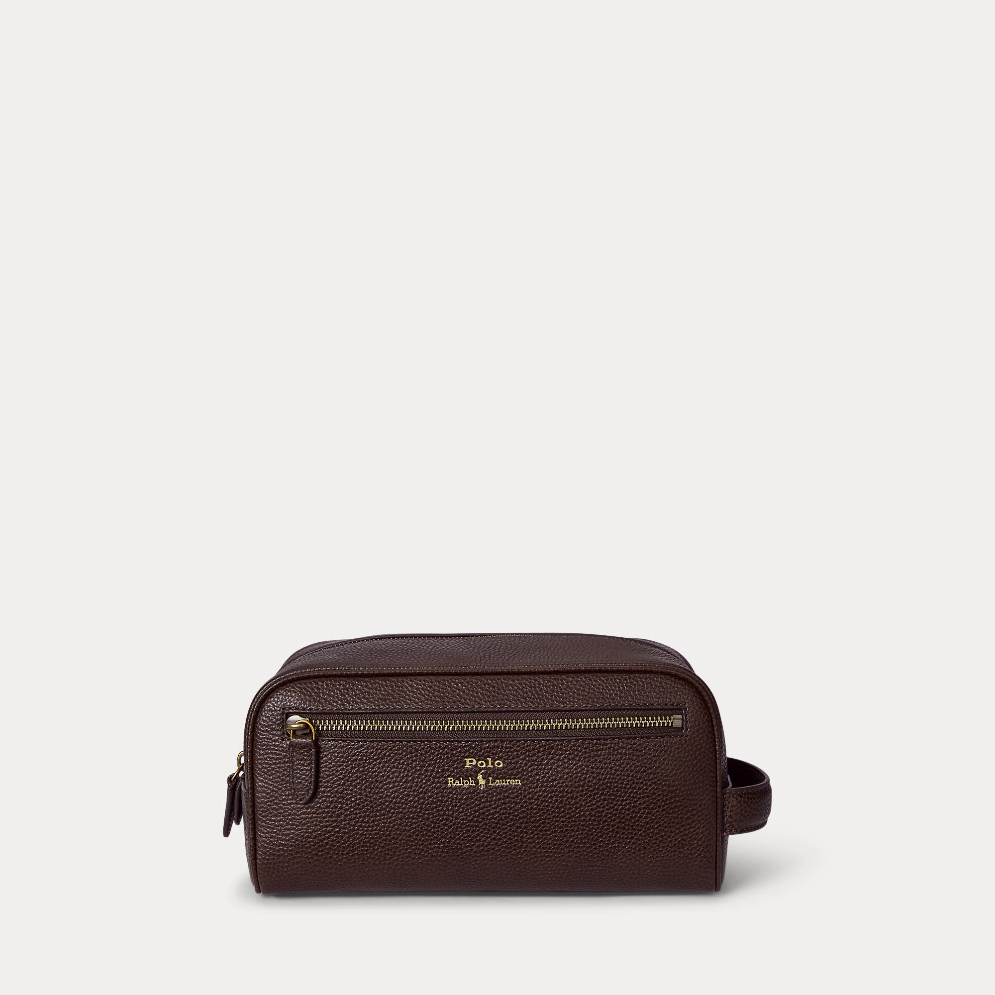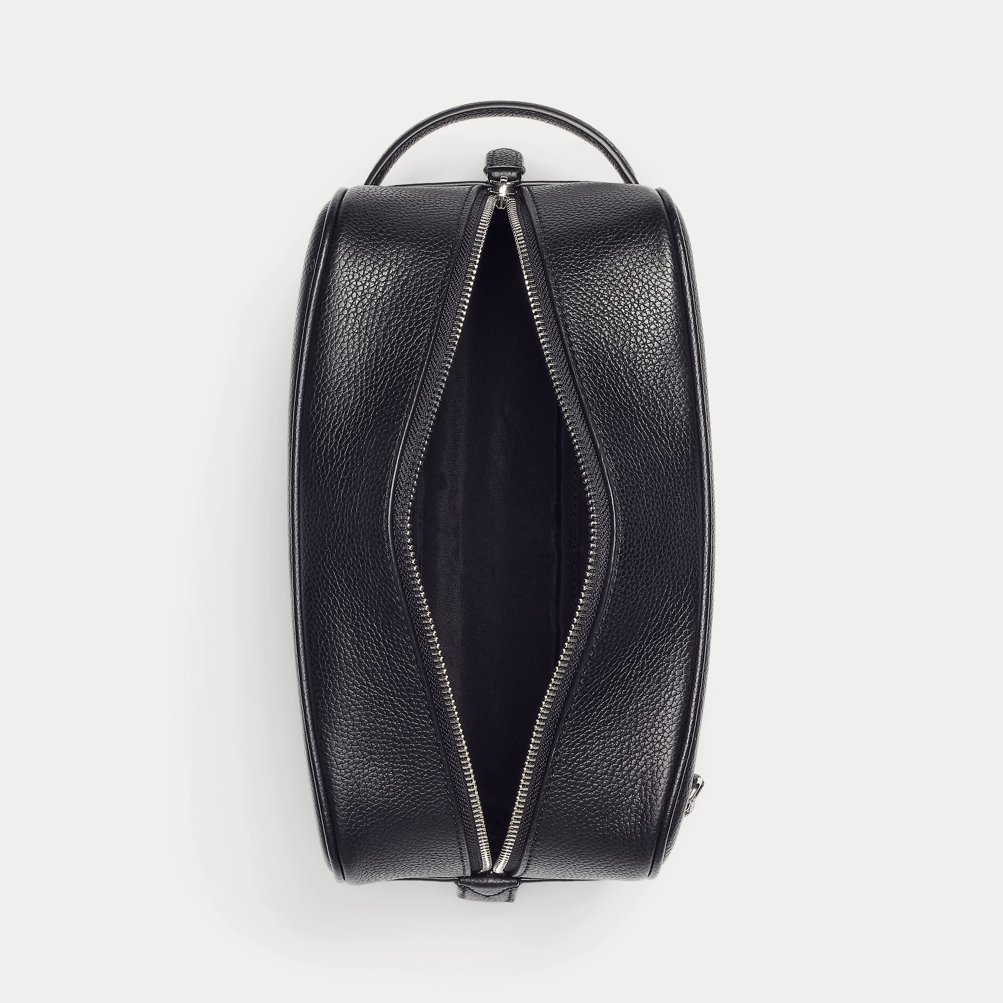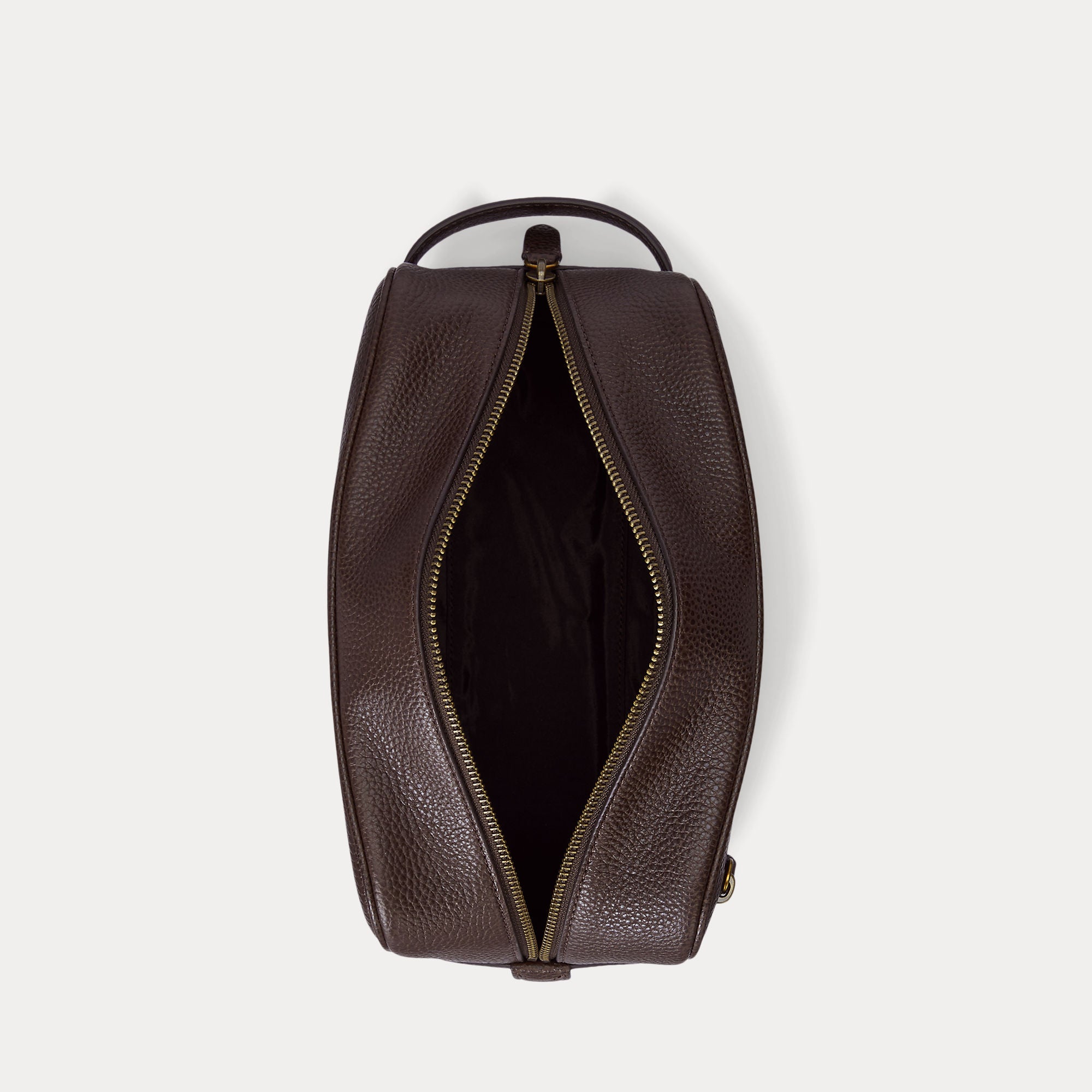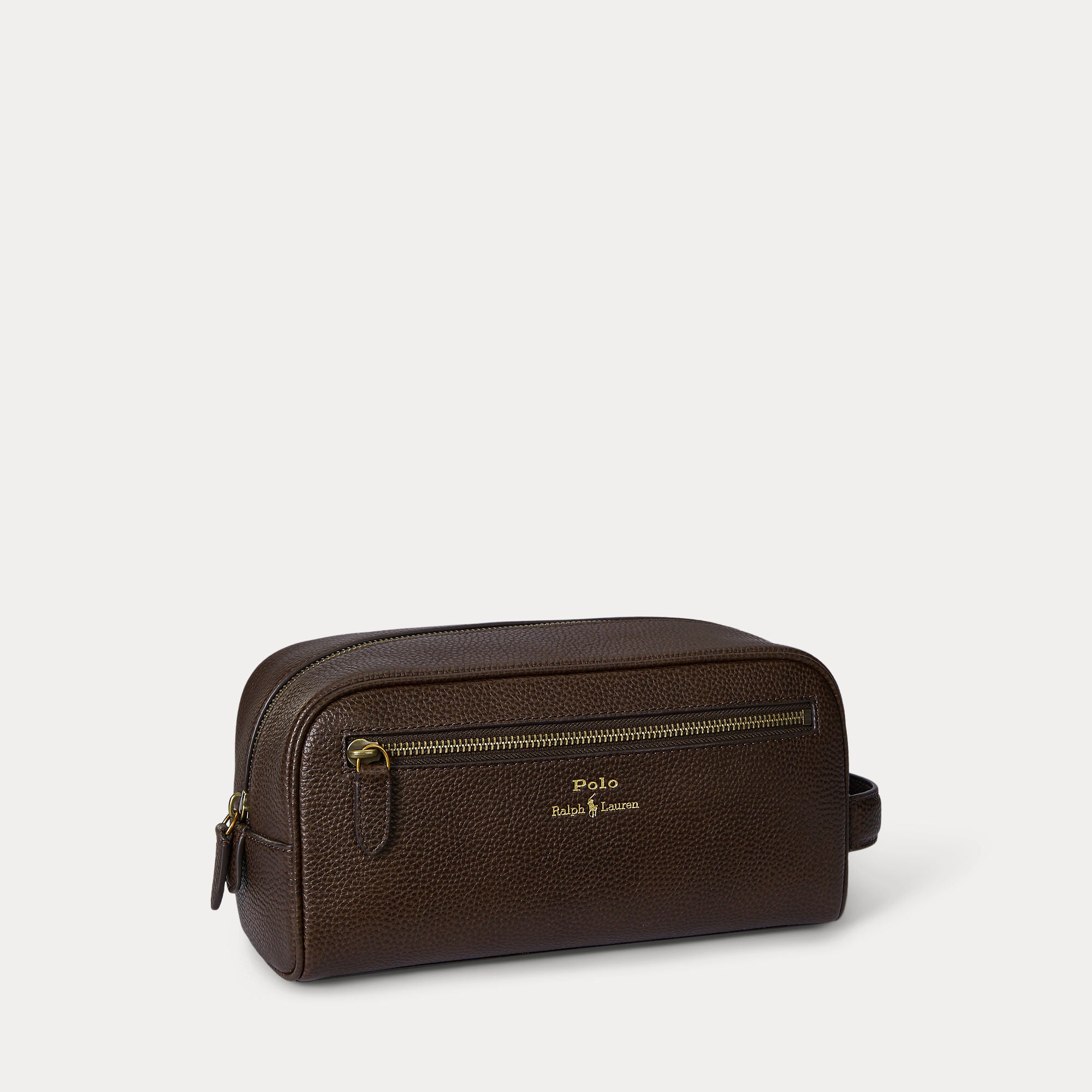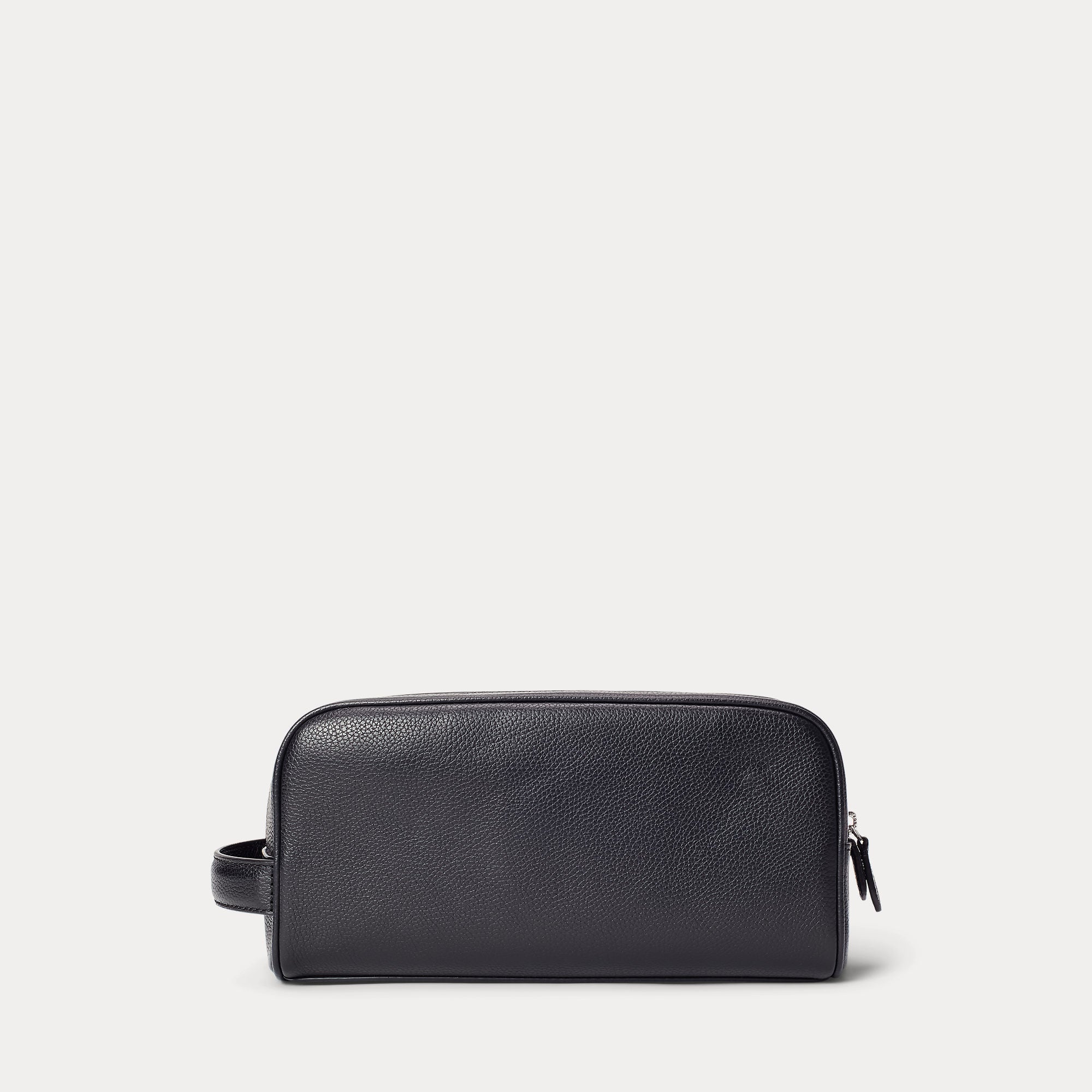 Crafted with pebbled leather, this streamlined travel case is the perfect size to hold your grooming essentials.