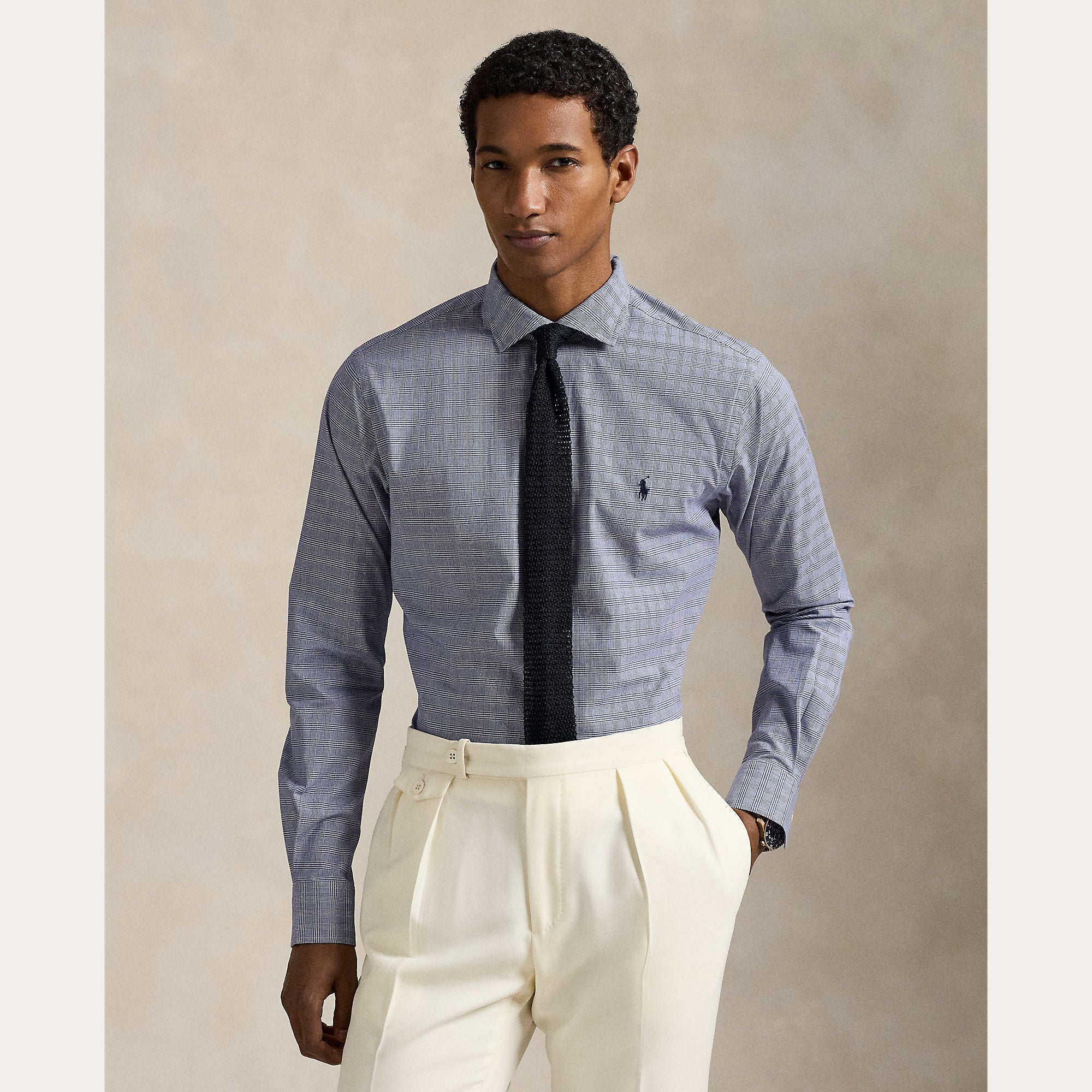 CUSTOM FIT PLAID STRETCH POPLIN SHIRT