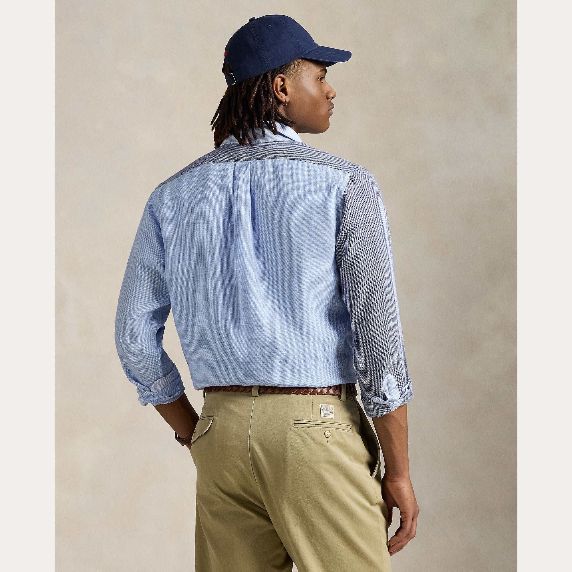 Decades ago, tailors would learn their craft by sewing together shirts made from fabric remnants. Over time, a staple of playful preppy style evolved from the practice—the fun shirt. This linen version combines a mix of checked and striped patterns into a single statement-making piece, adorned with the iconic Pony.