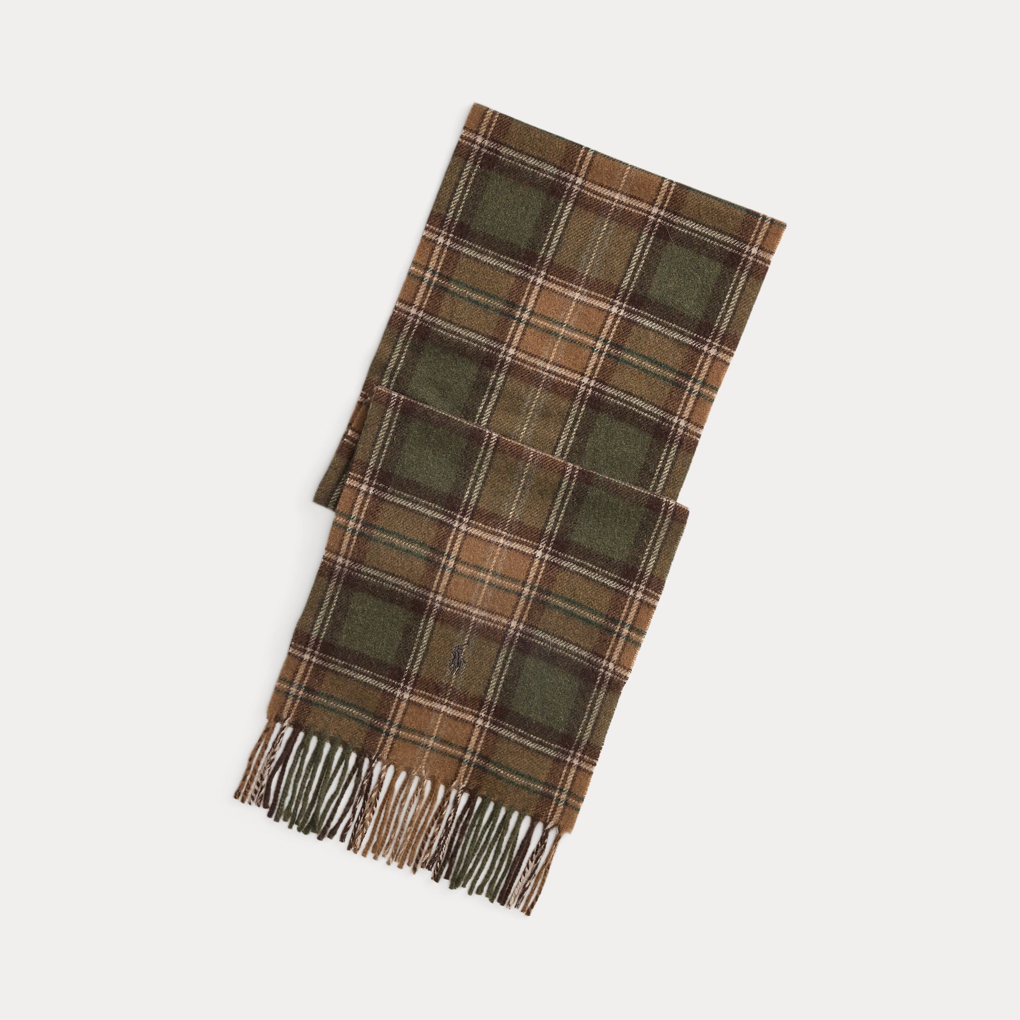 A vibrant plaid motif and our signature embroidered Pony define this classic Italian-crafted wool scarf.