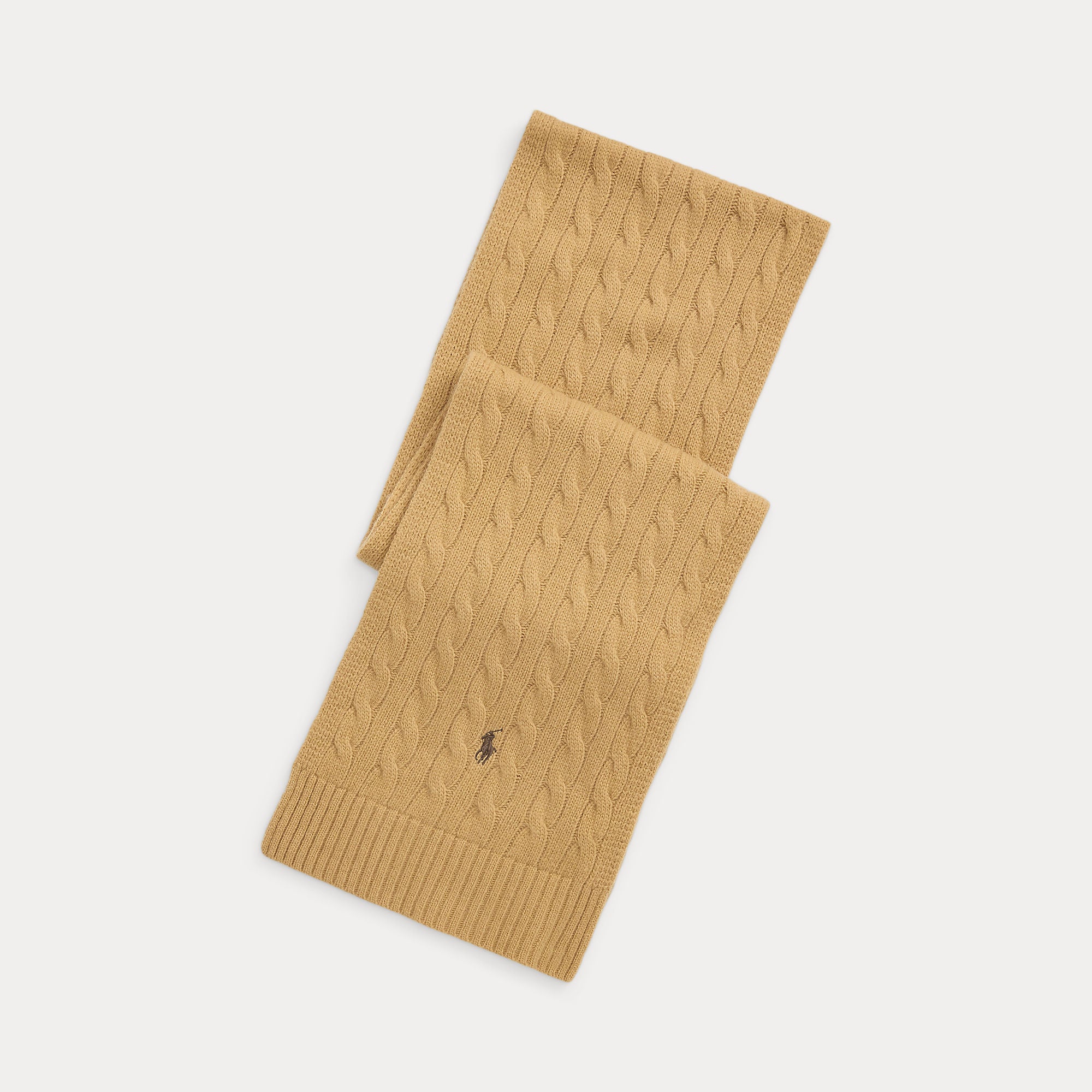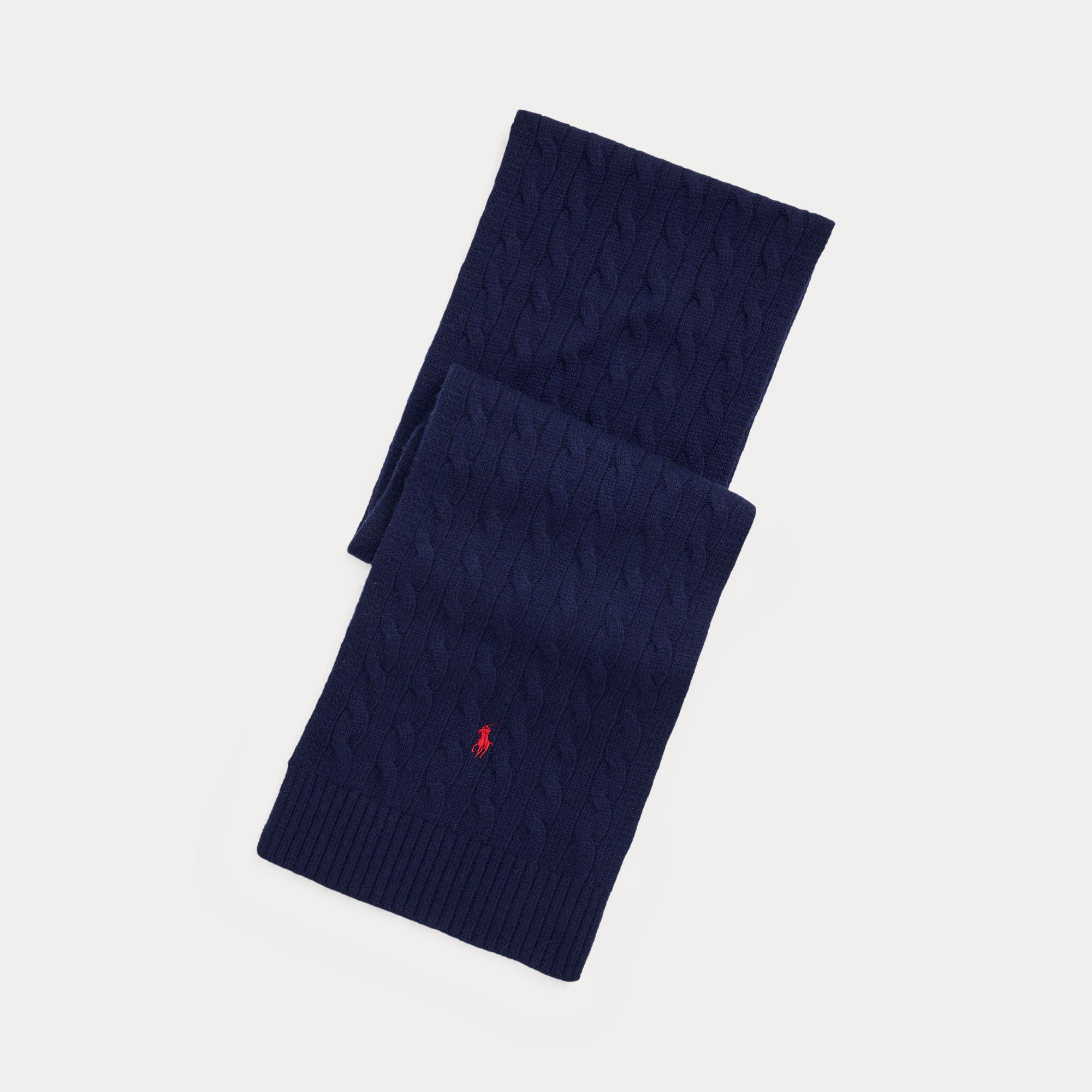 Crafted in a classic cable-knit construction from yarns blended with extrafine merino wool, this scarf is finished with our signature embroidered Pony.
