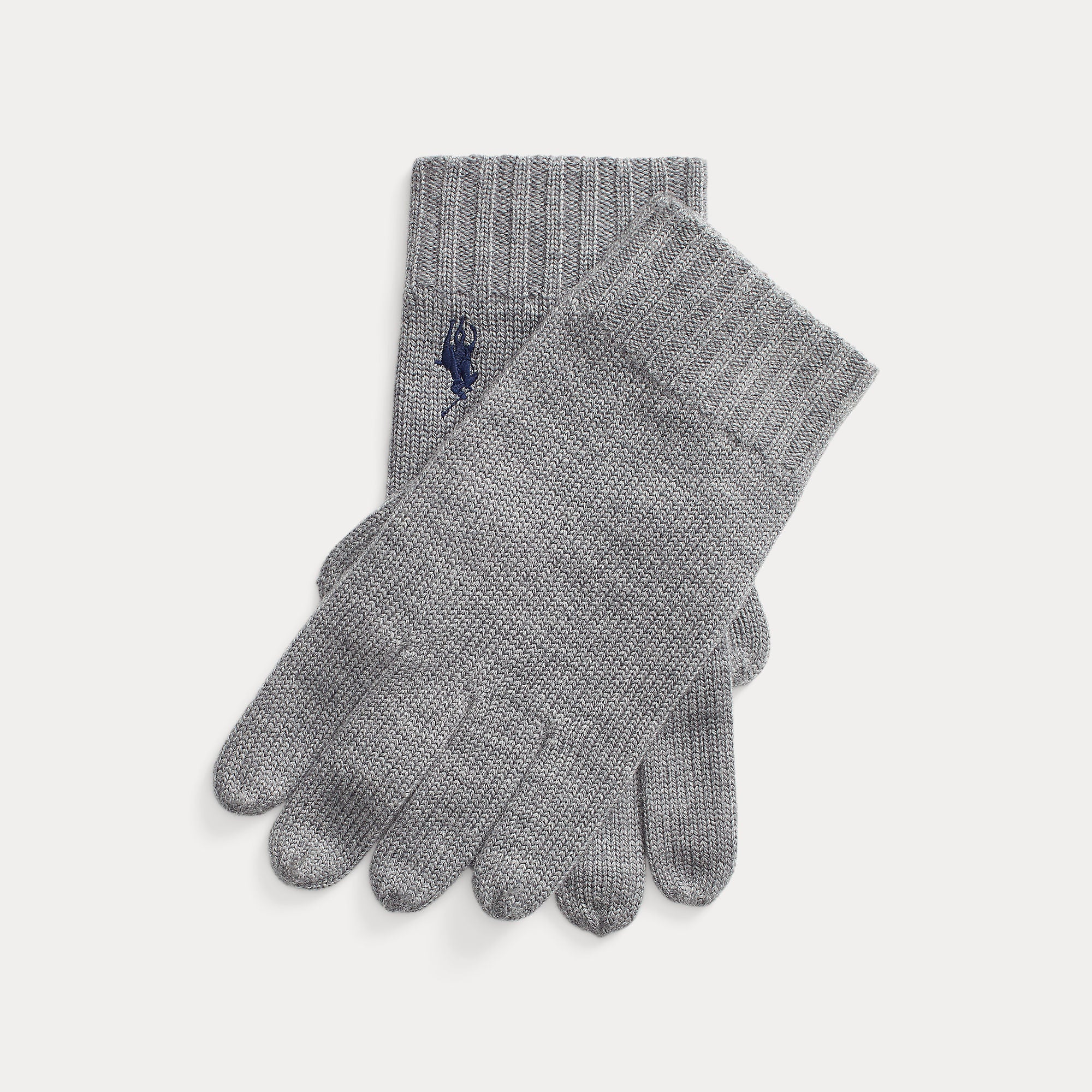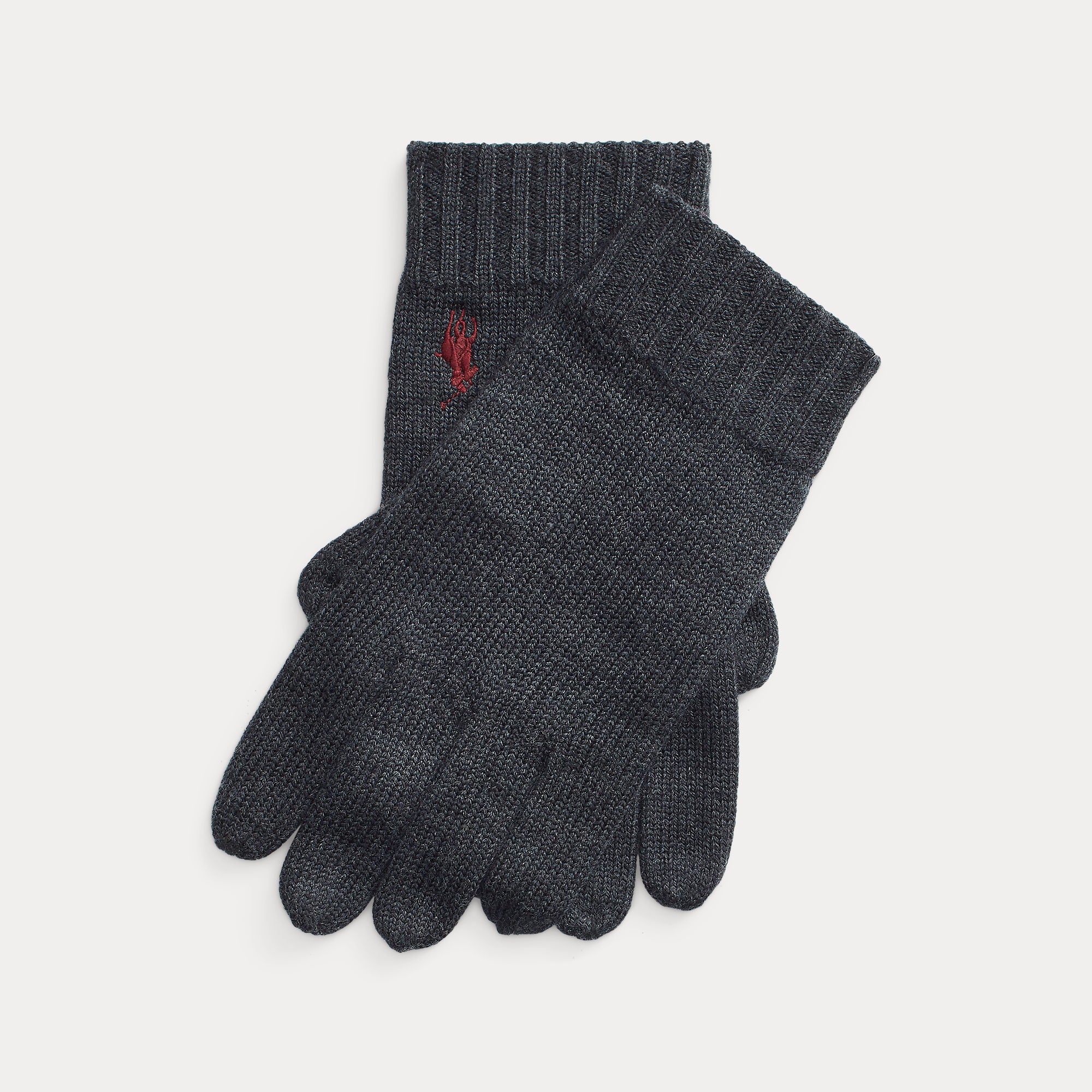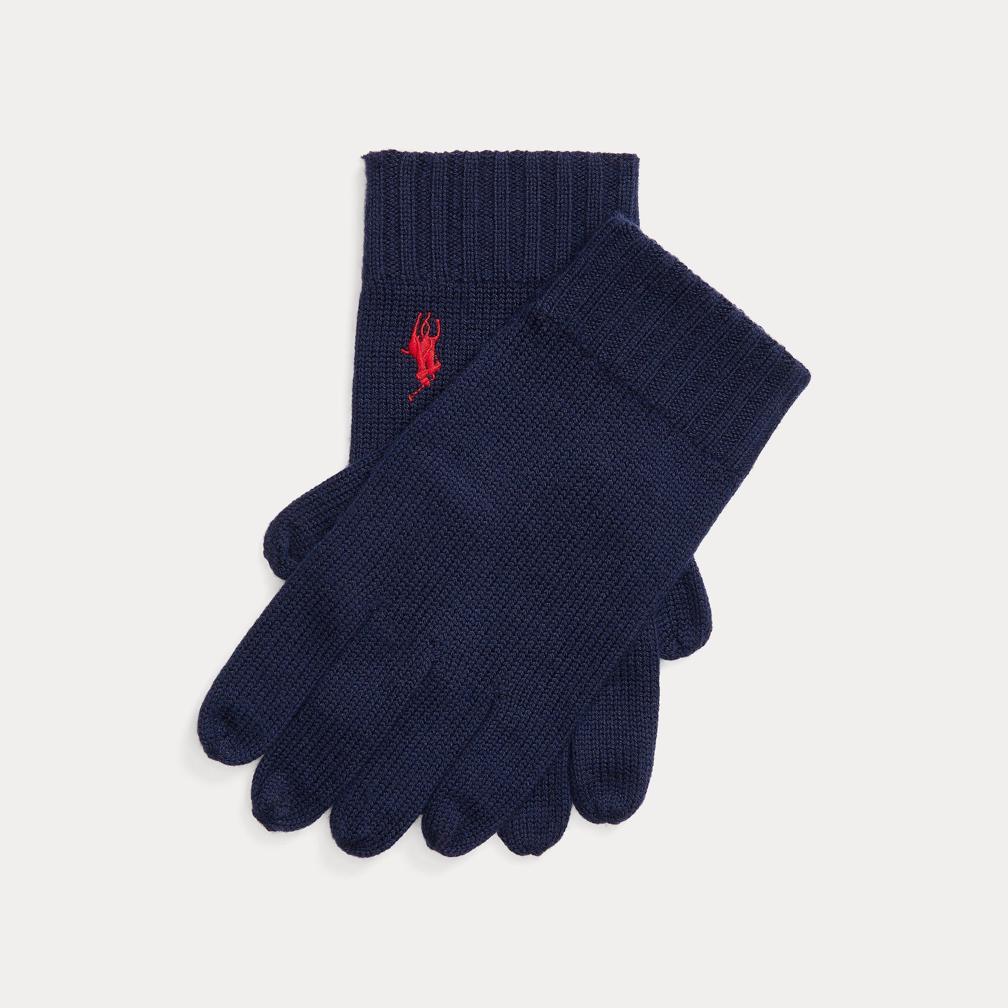 Knit with worsted wool yarns that are specially treated for easy care while maintaining durability and softness, these gloves are finished with Ralph Lauren’s signature embroidered Pony.