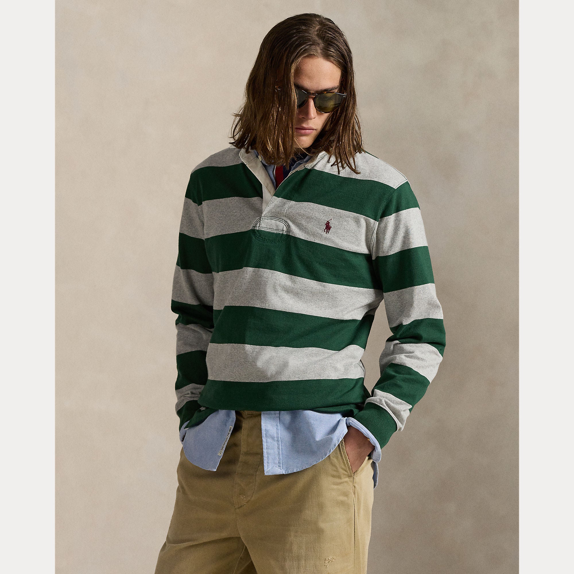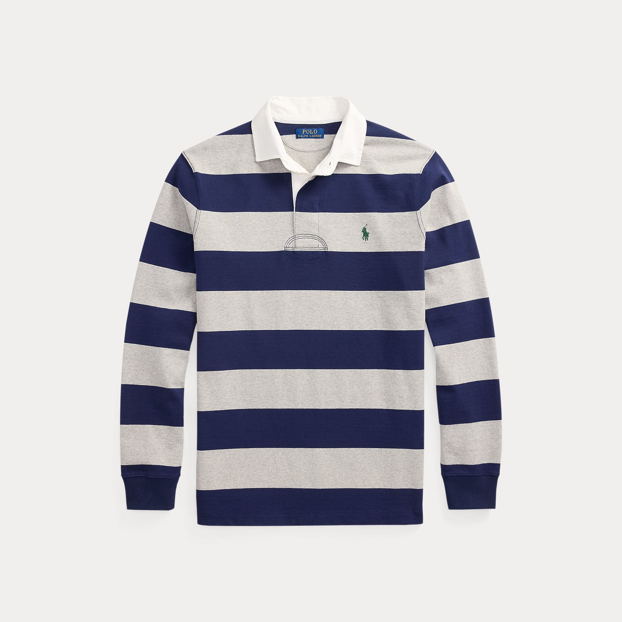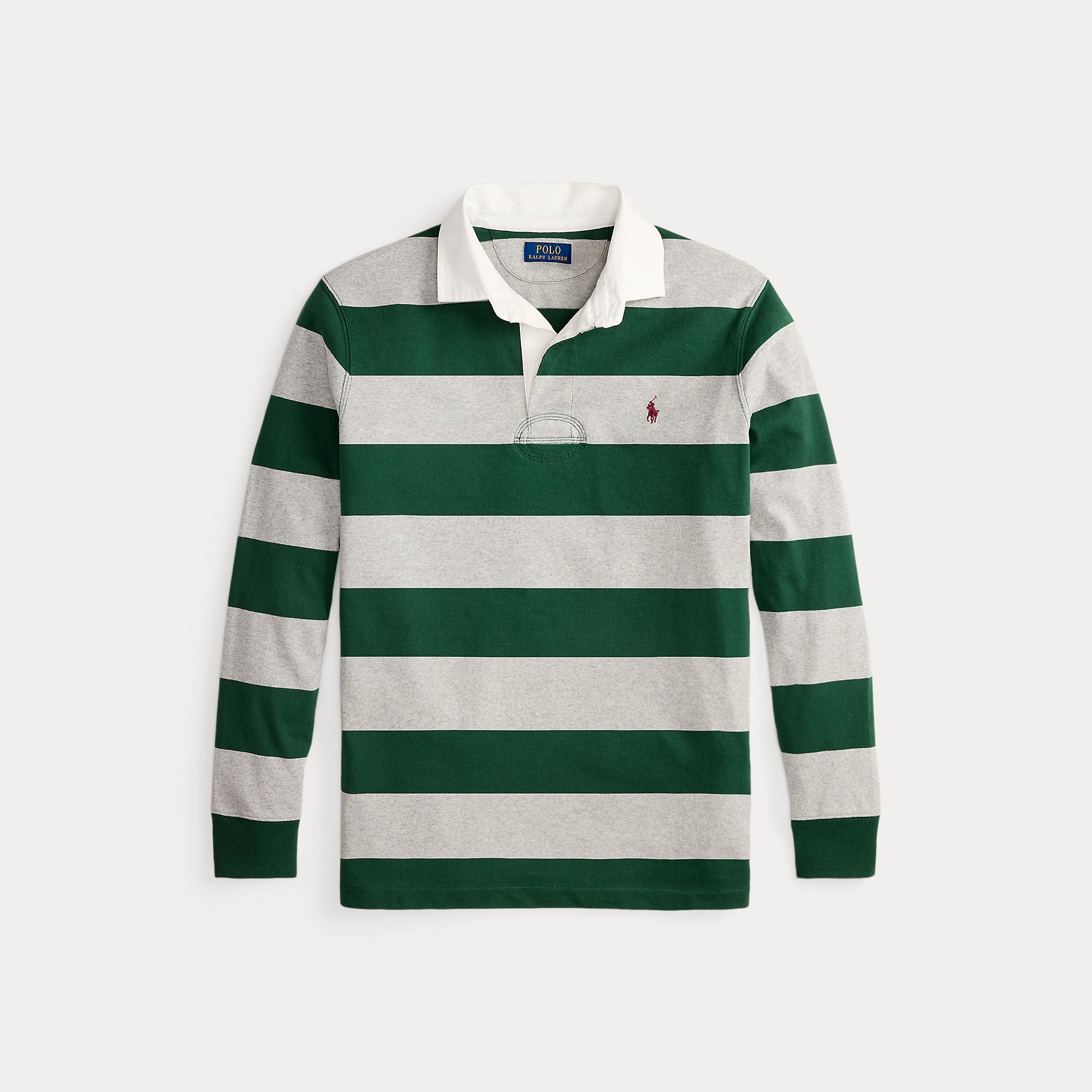 With its athletic details and timeless design, The Iconic Rugby Shirt captures the preppy yet sporty sensibility that has long defined the Polo Ralph Lauren brand. This version features all the hallmarks of a traditional rugby shirt—the distinctive stripe, white point collar, concealed placket, rubber buttons, and ribbed cuffs. Made with durable cotton jersey that stays true to the sport’s rough-and-tumble heritage, this shirt will stand up to repeated wear on and off the field of play.