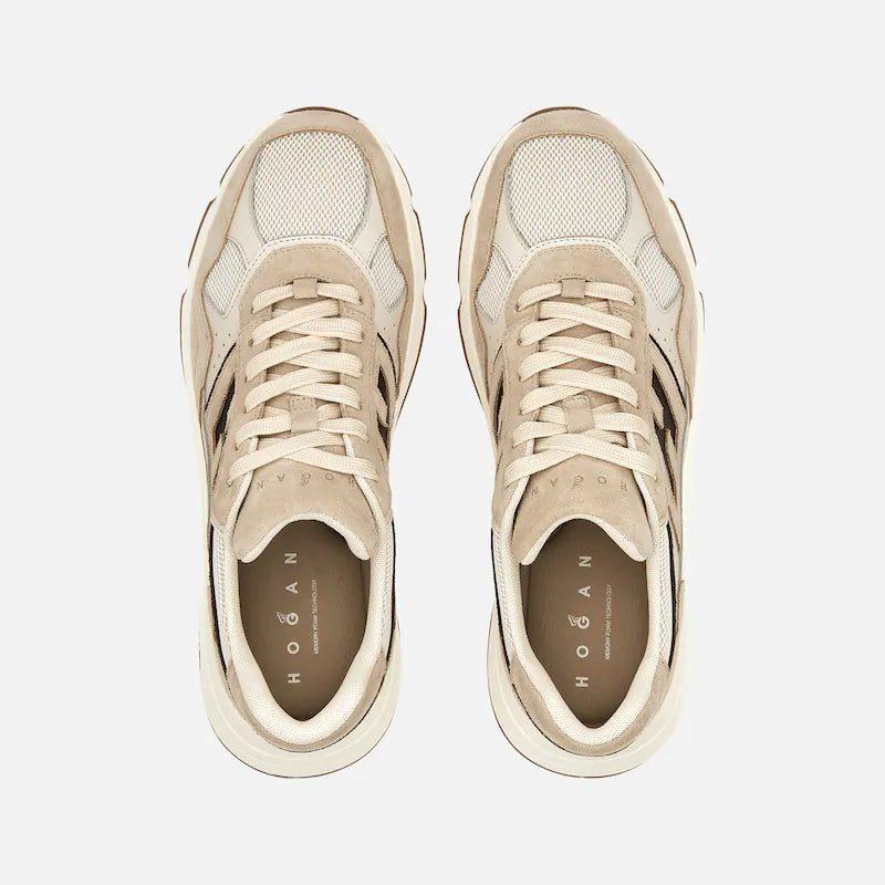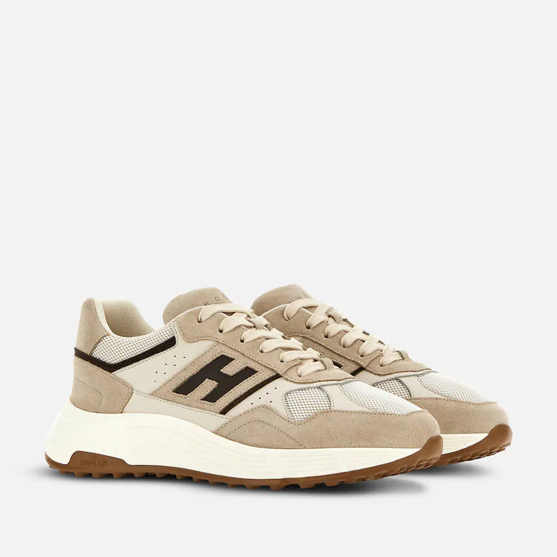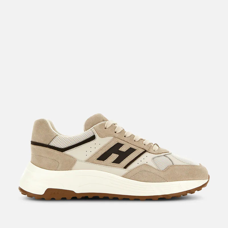 Characterized by smooth and dynamic forms, the Hogan Hyperlight sneakers combine the jogging shoe lines and urban features. The suede upper with side H recalls iconic details of the brand. A dynamic style, with a memory foam insole and a lightweight outsole with spikes.