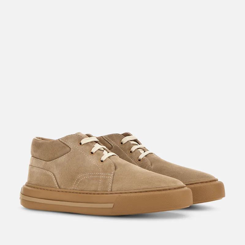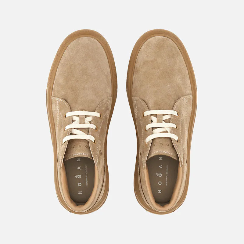 A men’s urban shoe inspired by 90s skater sneakers. The Hogan H691 desert boot is crafted in suede, with refined stitching and Hogan logo stamped on the tongue. The memory foam insole complements this versatile and refined style.