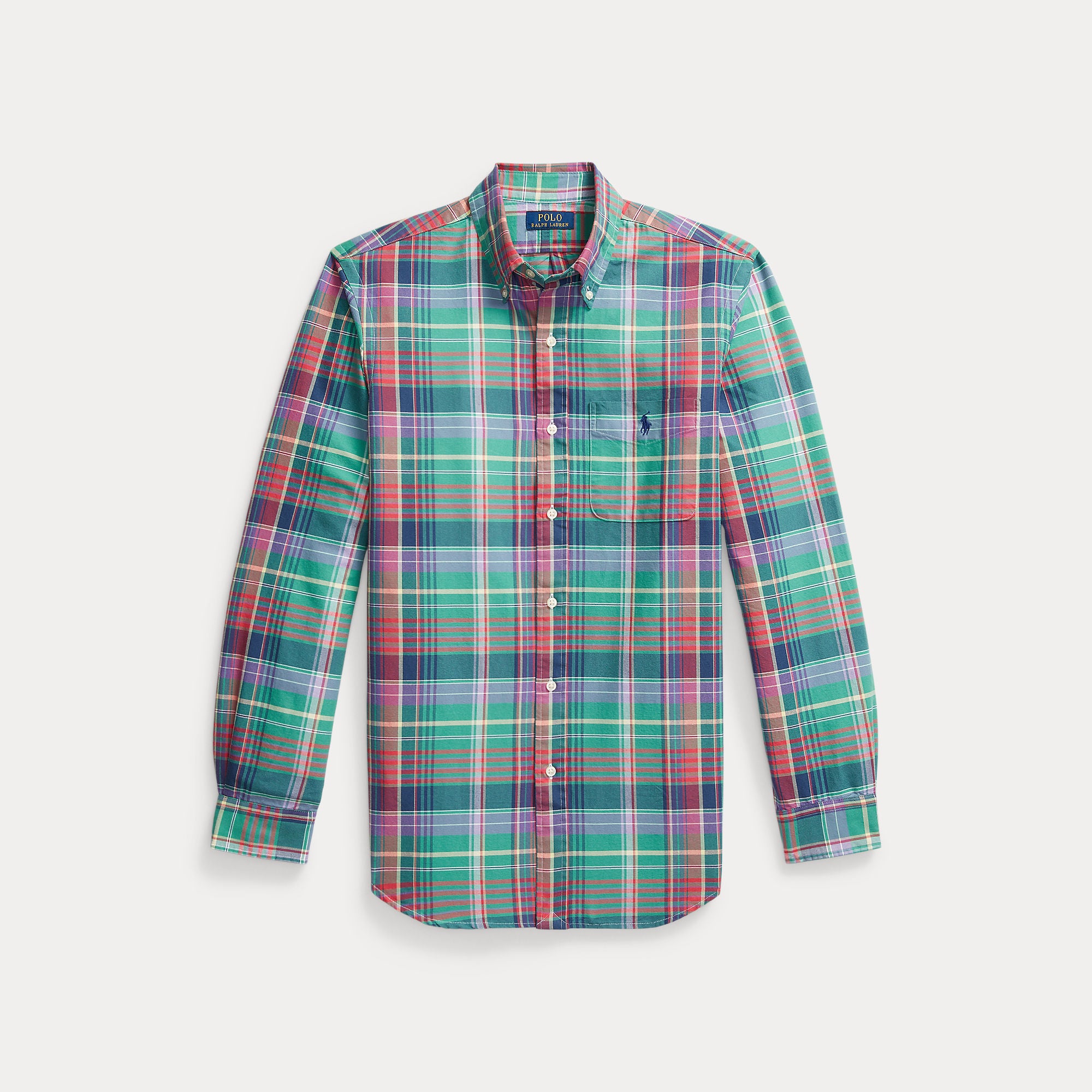 The oxford shirt made its debut very early on in Ralph Lauren’s designs, and since then it has solidified its status as a pillar of the Polo look. Our fabric is developed with a secret wash that gives it instant character, ease, and a heathered softness—what we call the perfect “rumple.” The formula is so unique, it’s been kept in a safe for more than three decades. Today, Mr. Lauren continues to create countless variations of his iconic shirt, including this plaid version that is finished with our signature embroidered Pony.