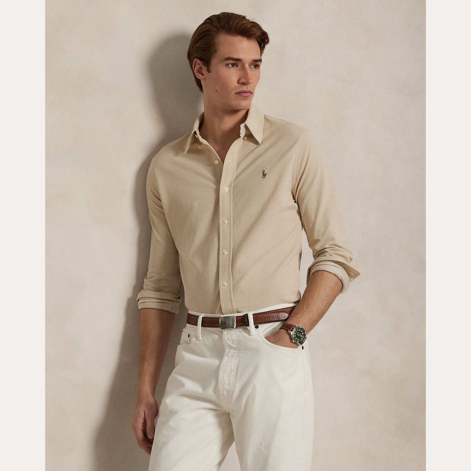 Inspired by two of our icons, this button-down combines the look of an oxford with the comfort and ease of our Polo shirt’s cotton mesh fabric.