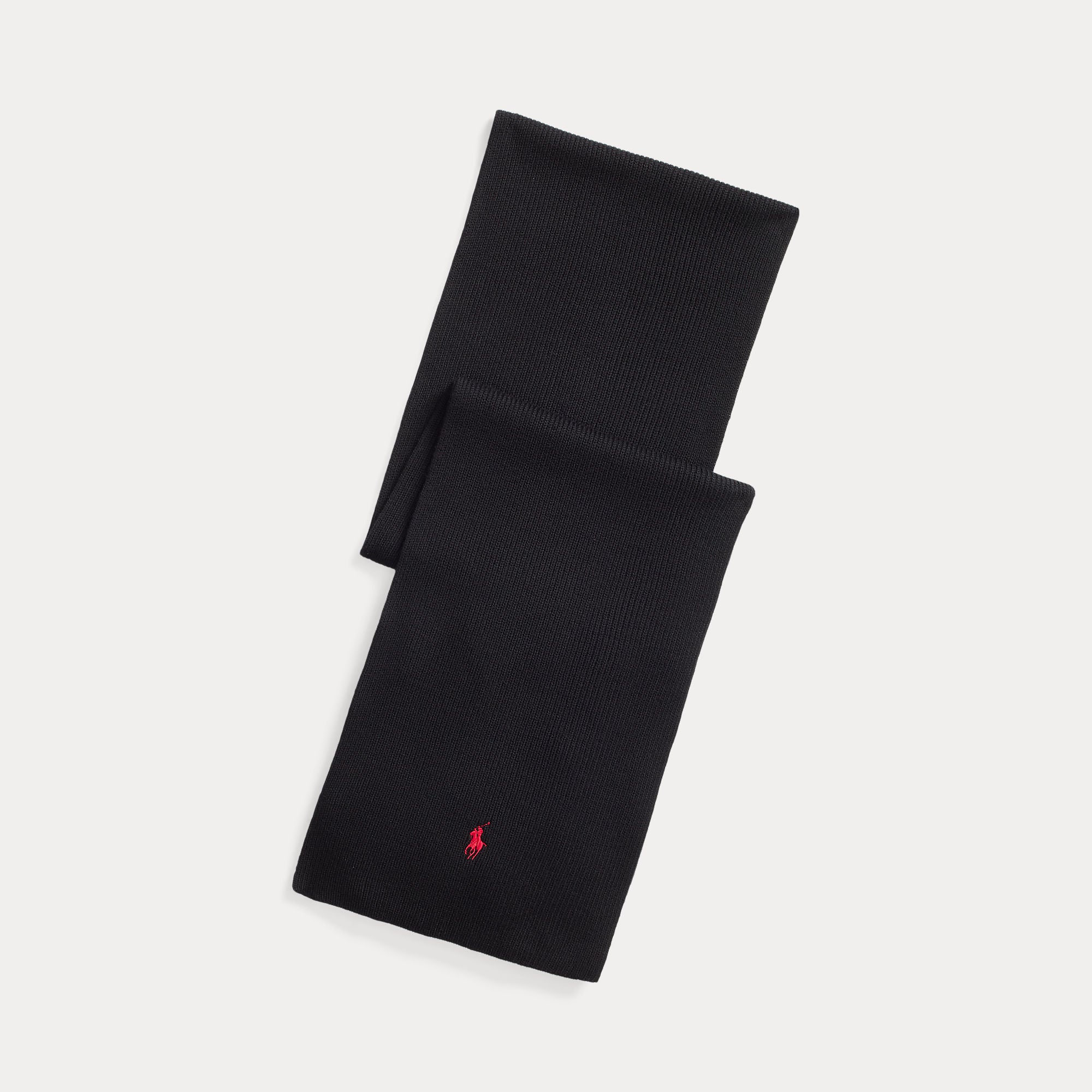 Knit with worsted wool yarns that are specially treated for easy care while maintaining durability and softness, this scarf is finished with Ralph Lauren’s signature embroidered Pony.
