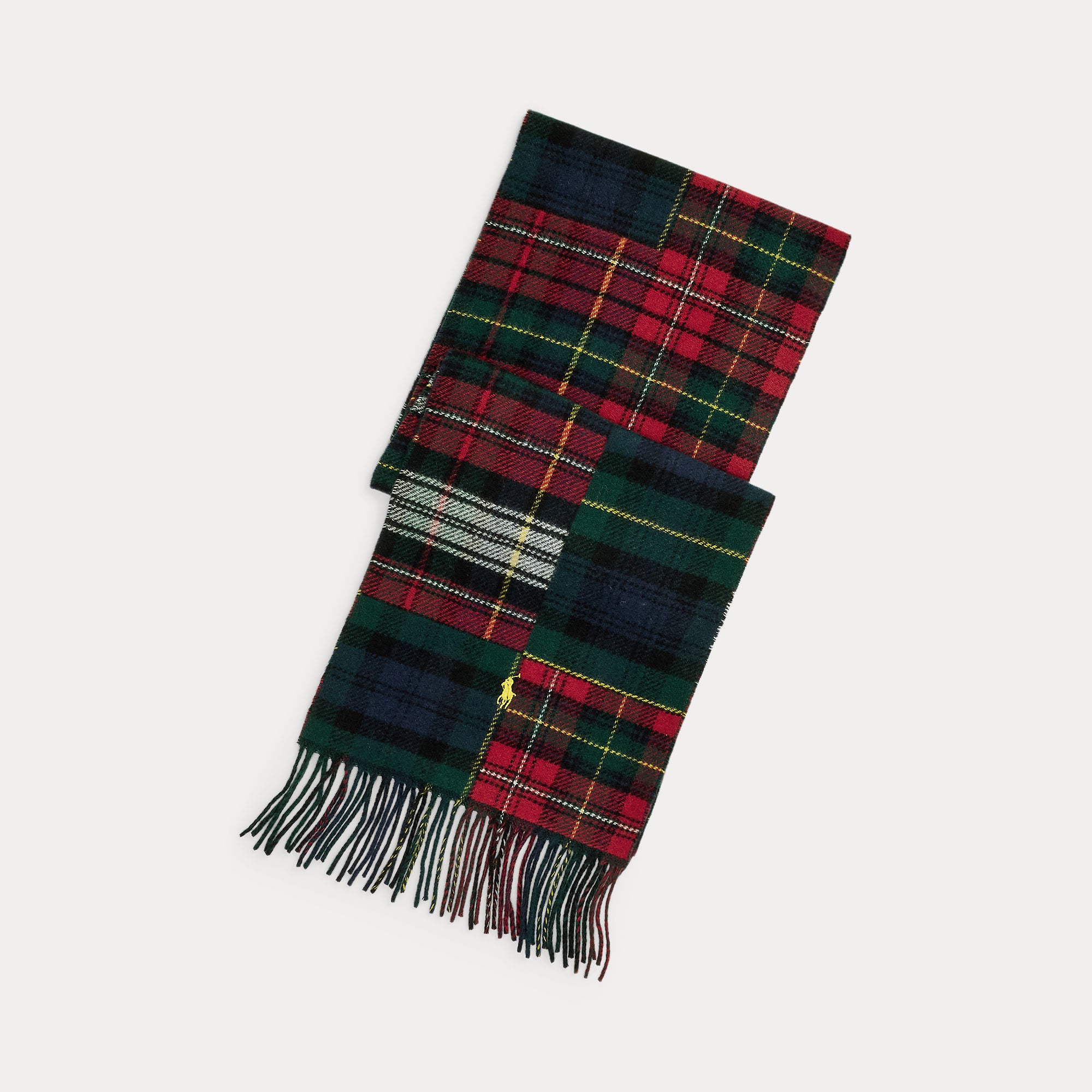 This Italian-made wool-blend scarf unites a variety of traditional plaid patterns and our signature embroidered Pony.