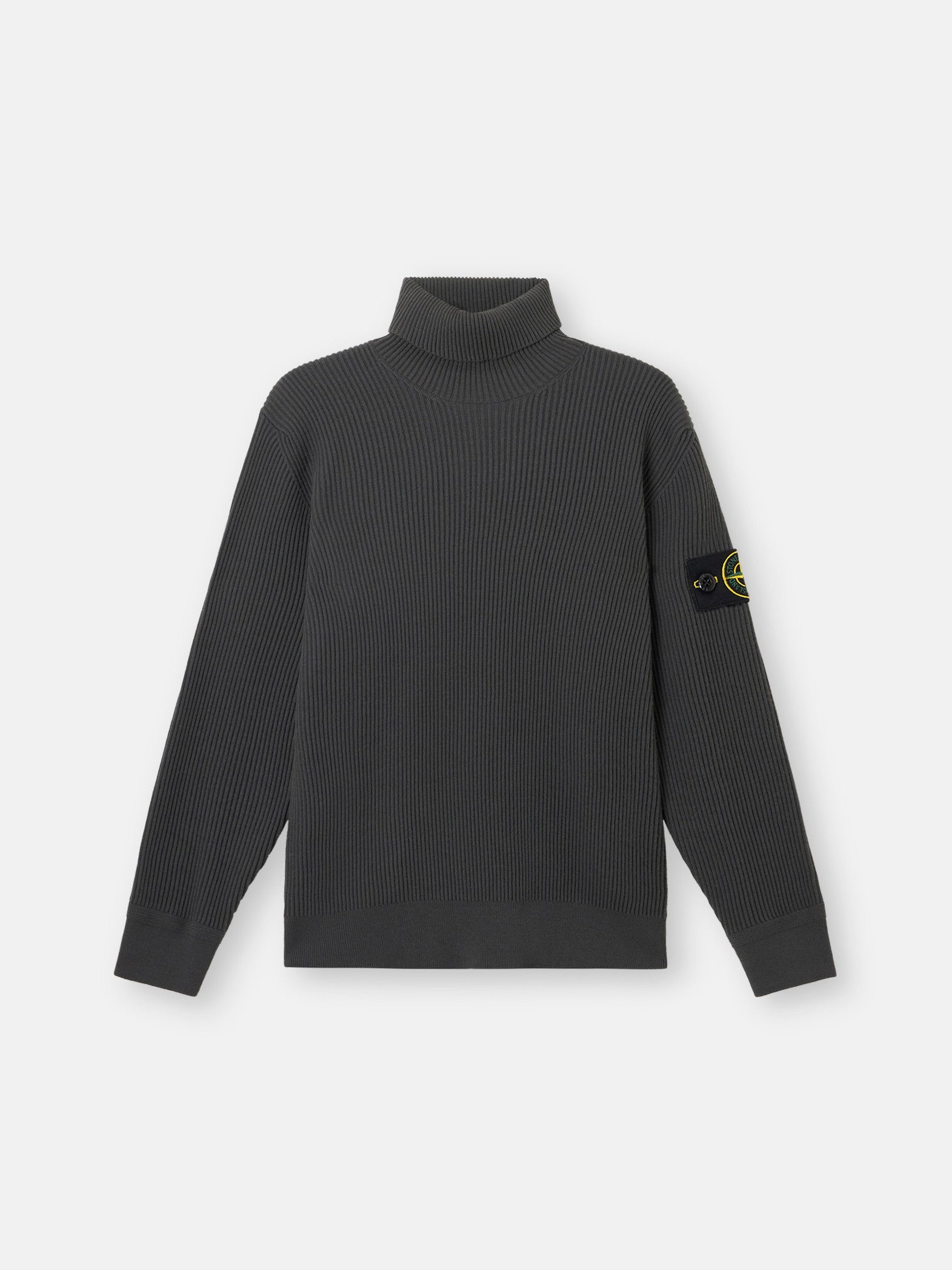Knit turtleneck jumper in full rib RWS wool. Gauge 12.