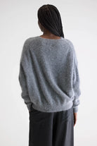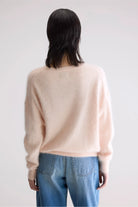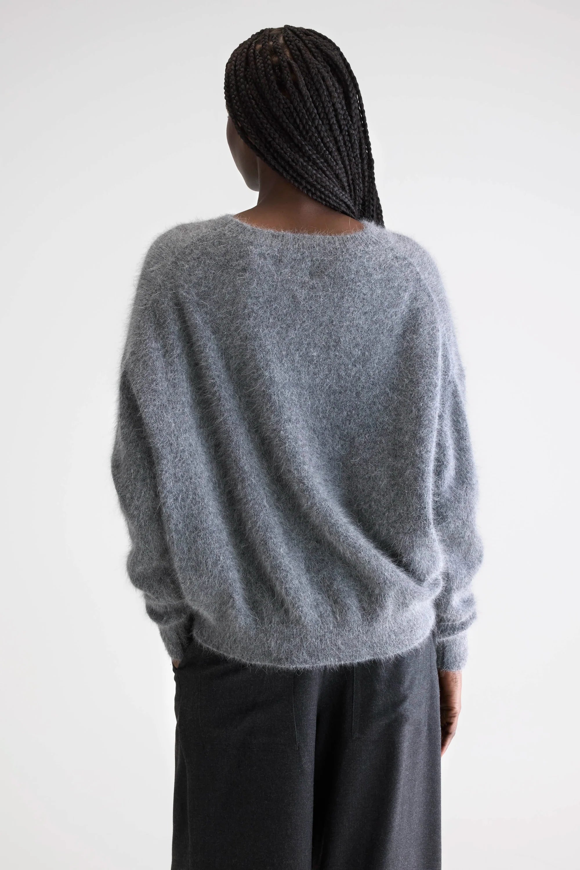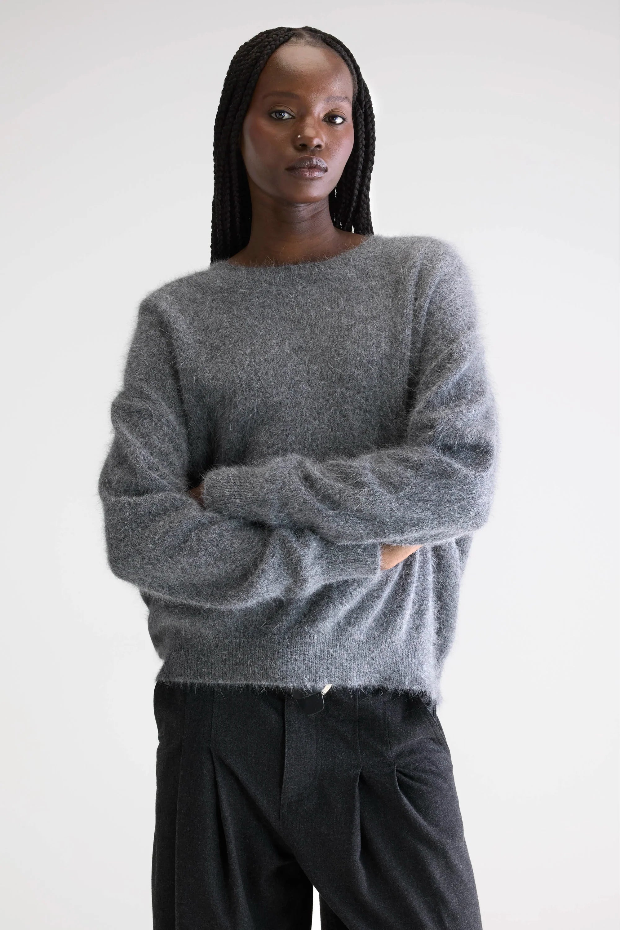 Oversized sweater with crewneck and long sleeves, crafted from a soft angora blend in ecru.