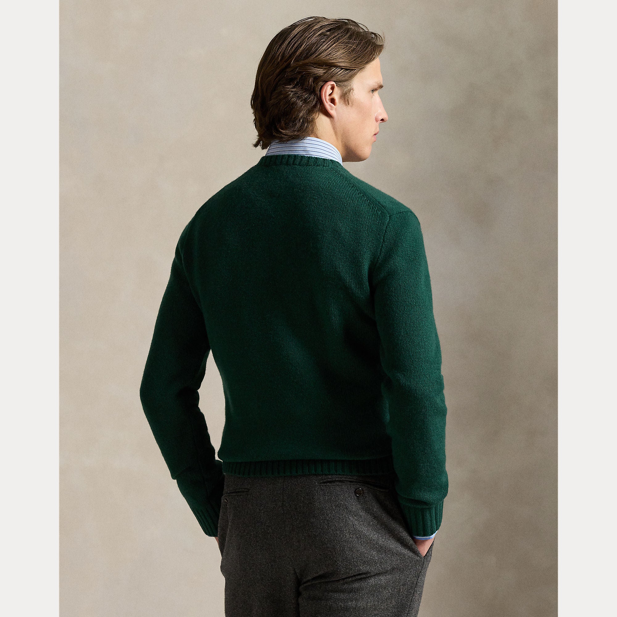 This sweater depicts our iconic Polo Bear dressed in a layered Ralph Lauren look perfect for chilly weather. More than 20 yarns combine with real wool cloth from a storied British mill with more than 185 years of experience, adding textural dimension and a dash of haberdashery-quality style. At the left hem, our founder’s initials are embroidered by hand.