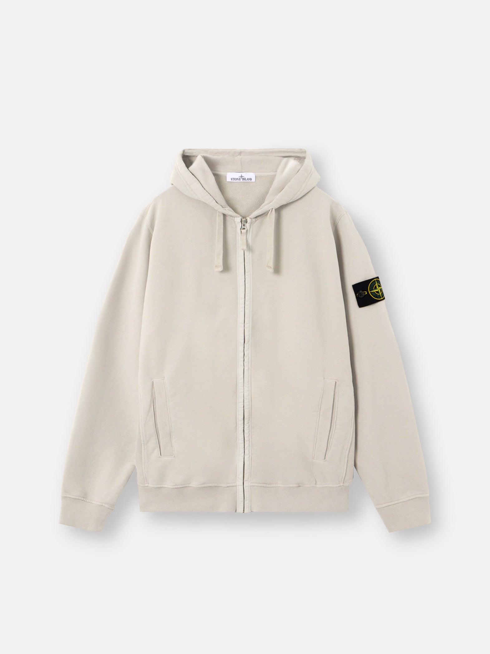 Hooded zip-up sweatshirt in brushed organic cotton fleece. Garment dyed.