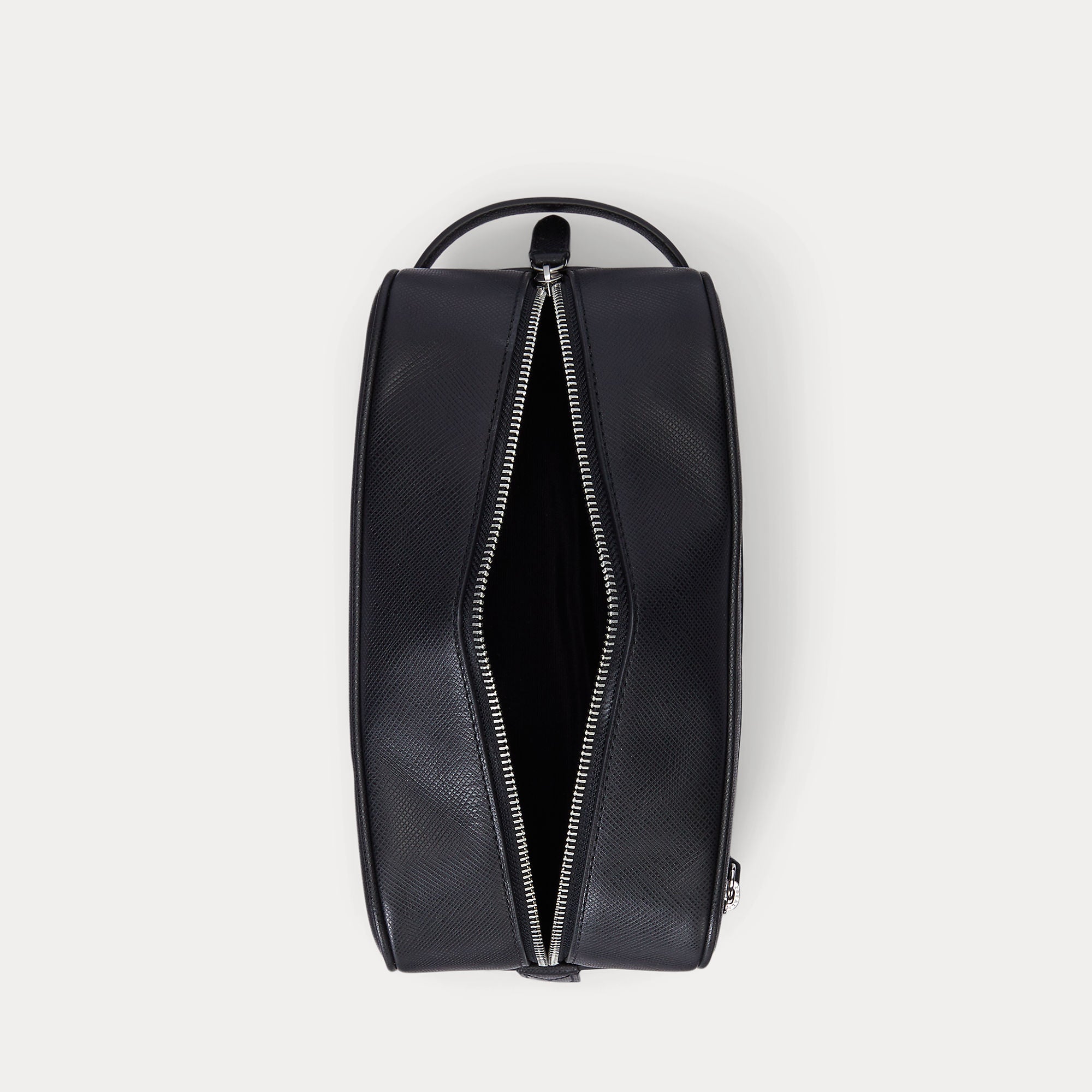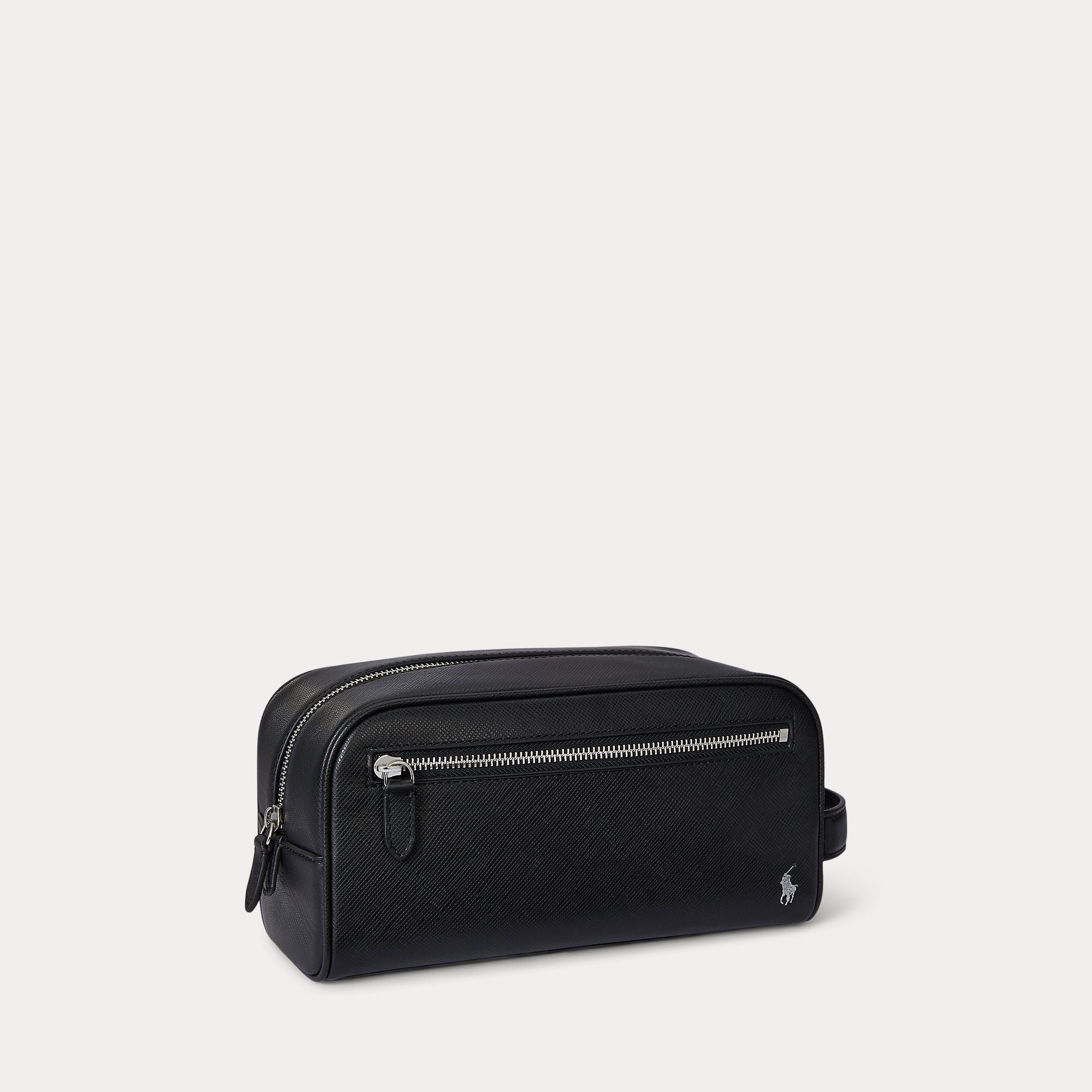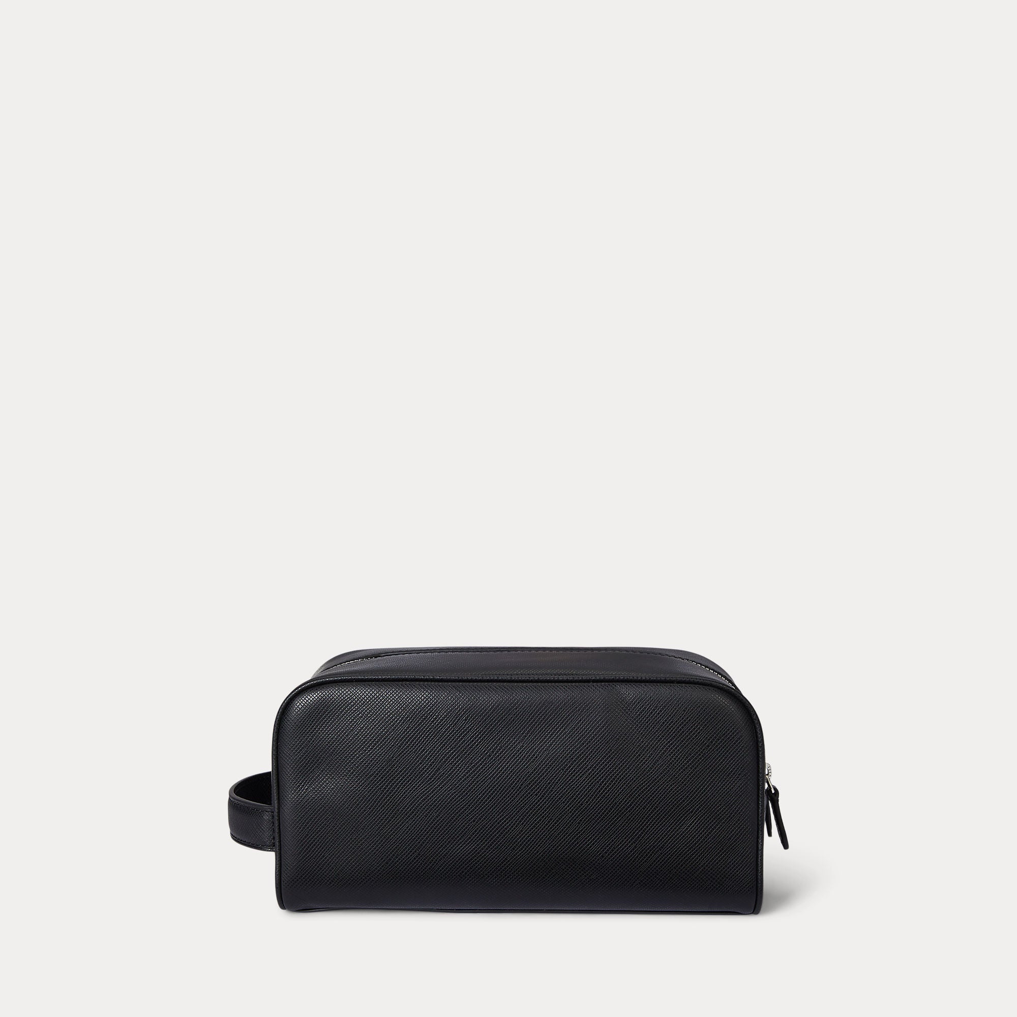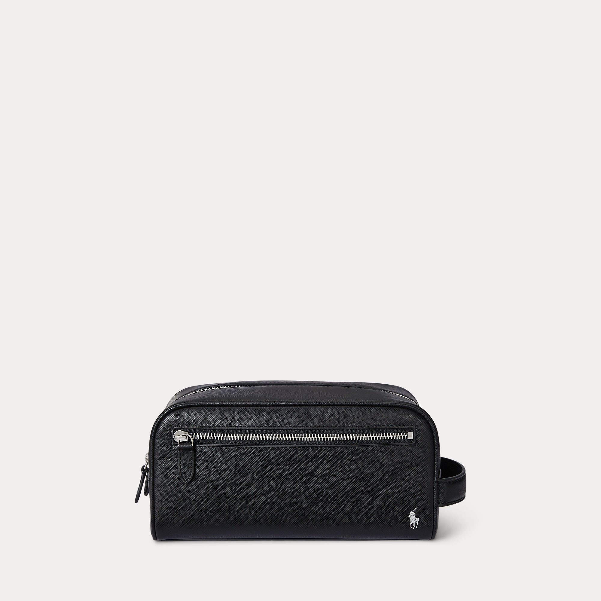 Crafted with textured Saffiano leather, this sleek travel case is the perfect size to hold your grooming essentials.