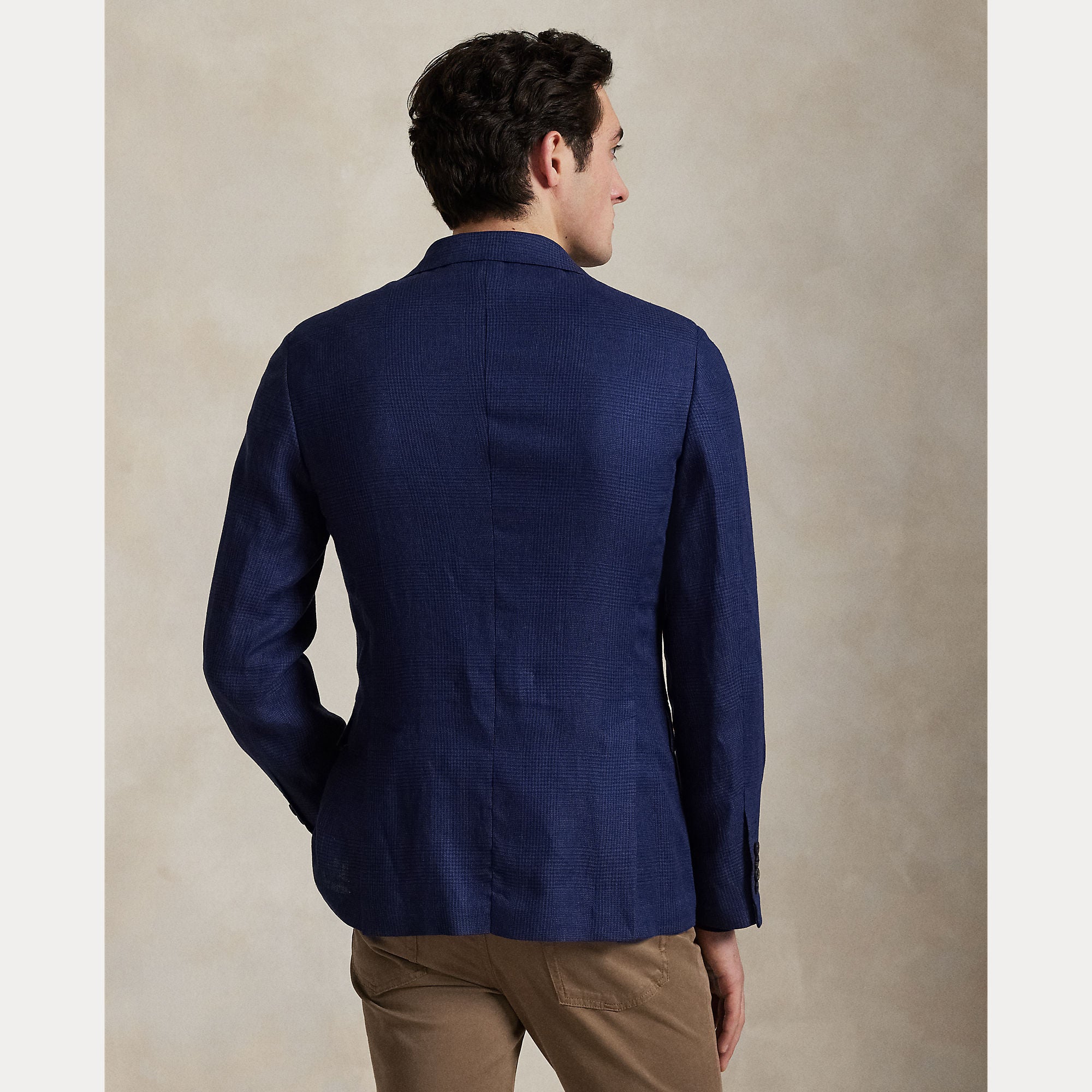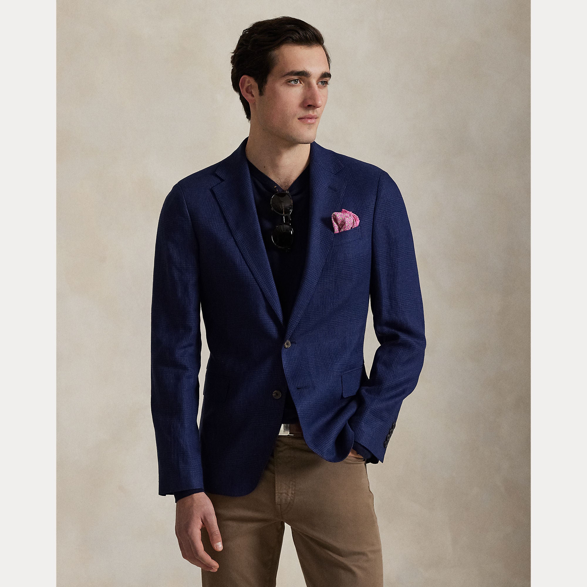 Our Polo sport coat offers more structure in the chest and shoulders. This version is crafted with a custom-developed linen-blend fabric that features a classic Glen plaid pattern.