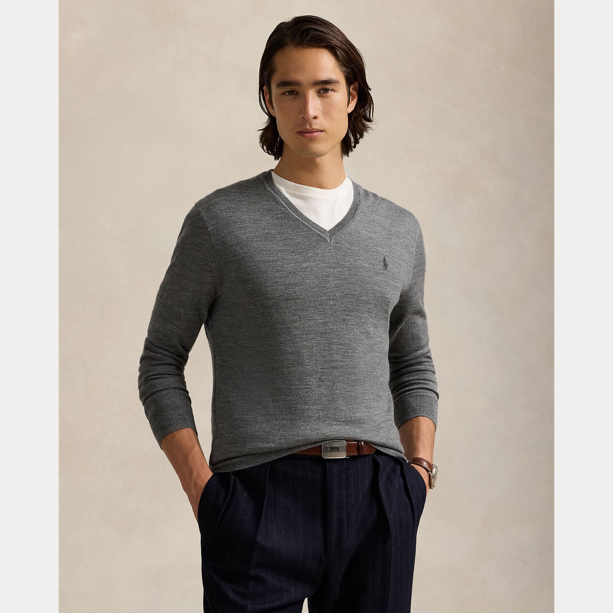 SLIM FIT WASHABLE WOOL V-NECK SWEATER