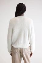 Oversized zip-front cardigan with bomber-style collar and elastic edges, crafted from a light beige blend with extra fine merino and baby alpaca.