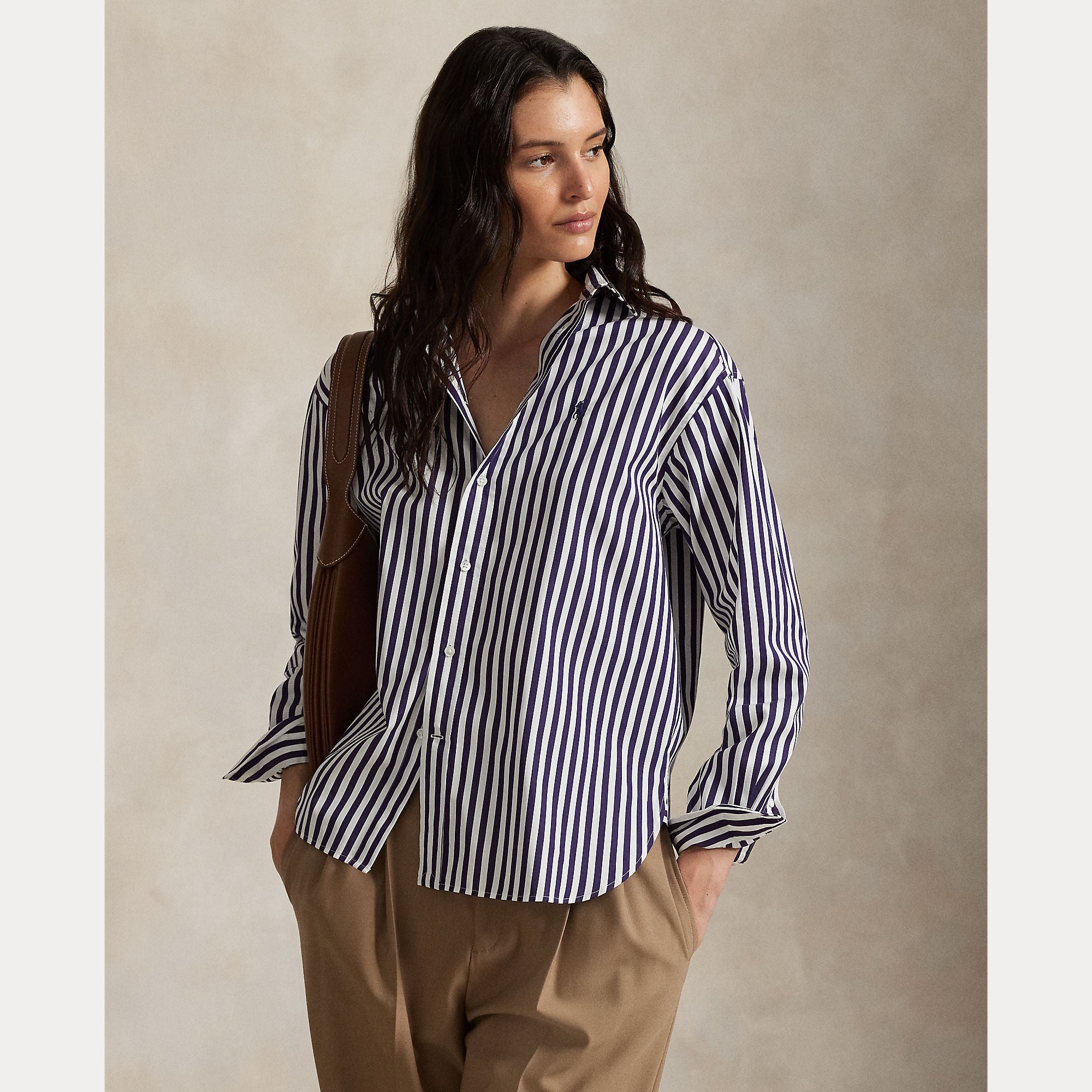Designed for a relaxed fit, this striped cotton shirt is accented by our signature embroidered Pony at the right cuff.