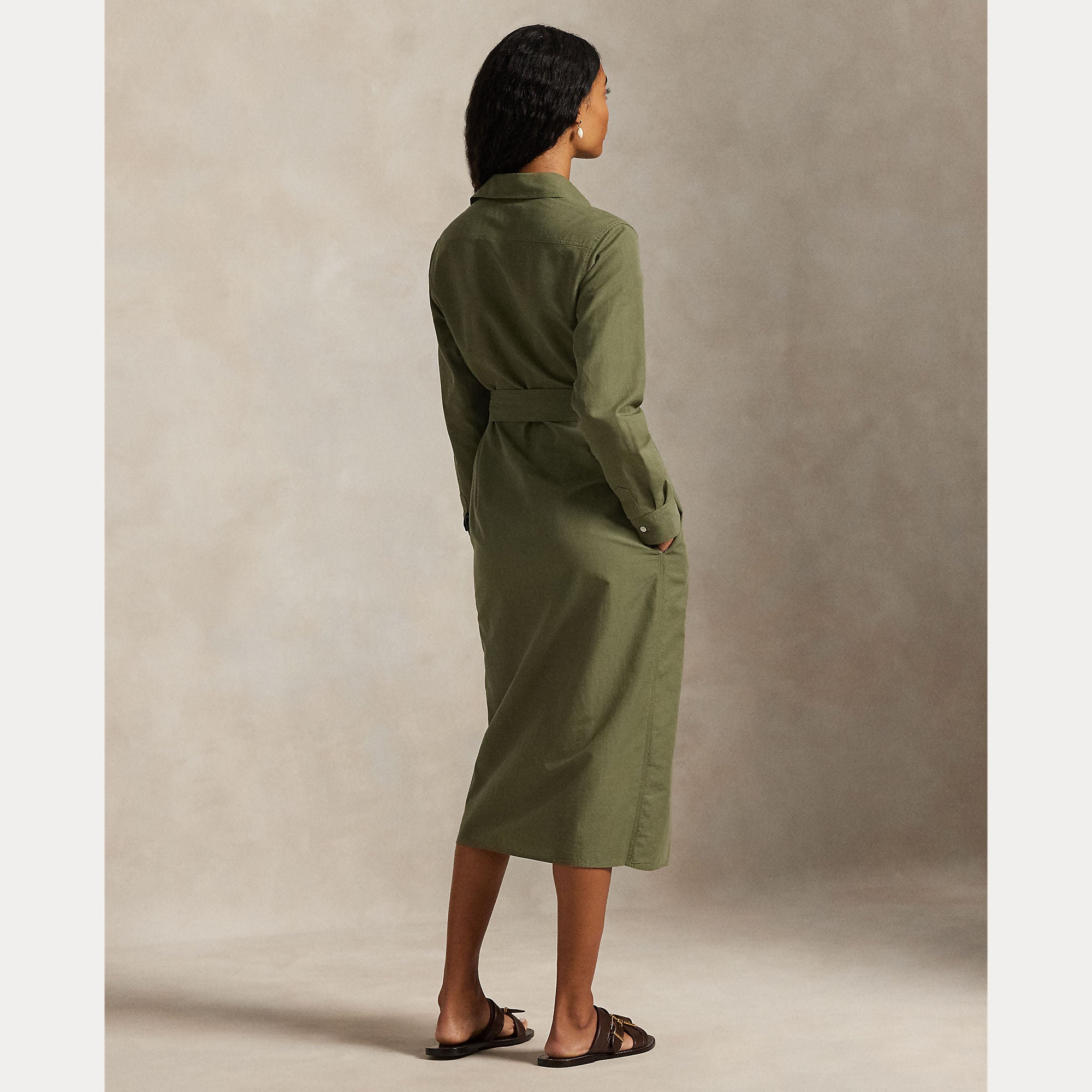Woven with a breathable cotton-and-linen blend, this timeless shirtdress features a straight silhouette with side on-seam pockets, a casual self-belt, and our embroidered Pony at the left chest.