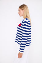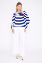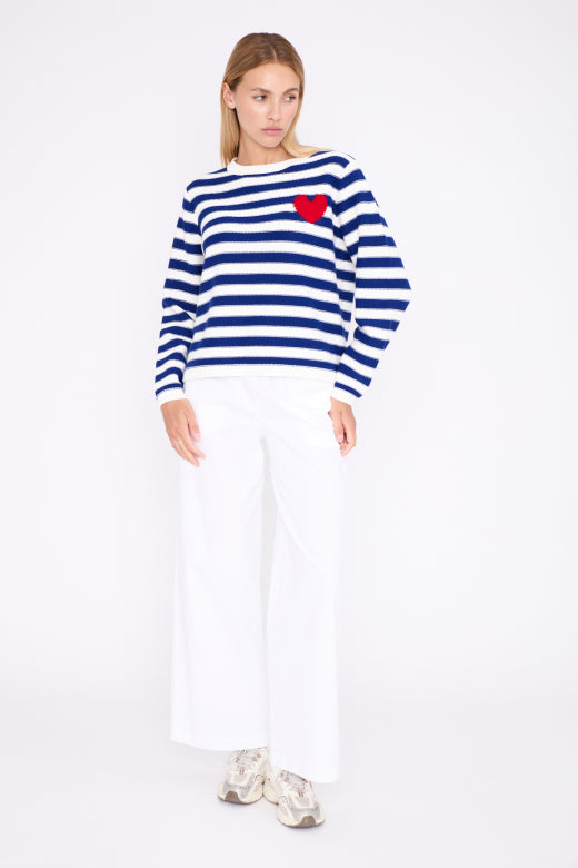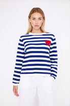 Its timeless stripes are enhanced with a small contrasting heart, adding a fresh and feminine touch.
