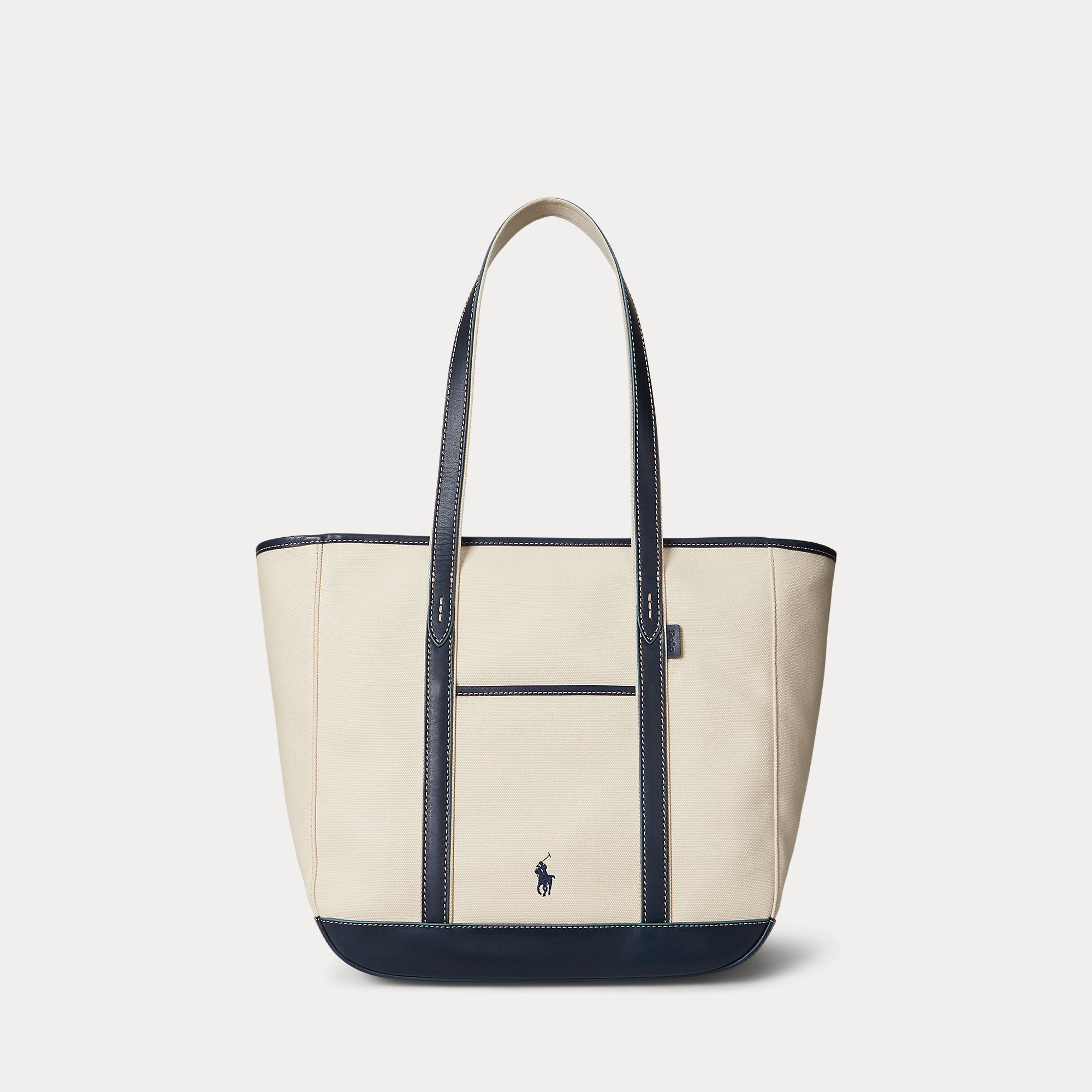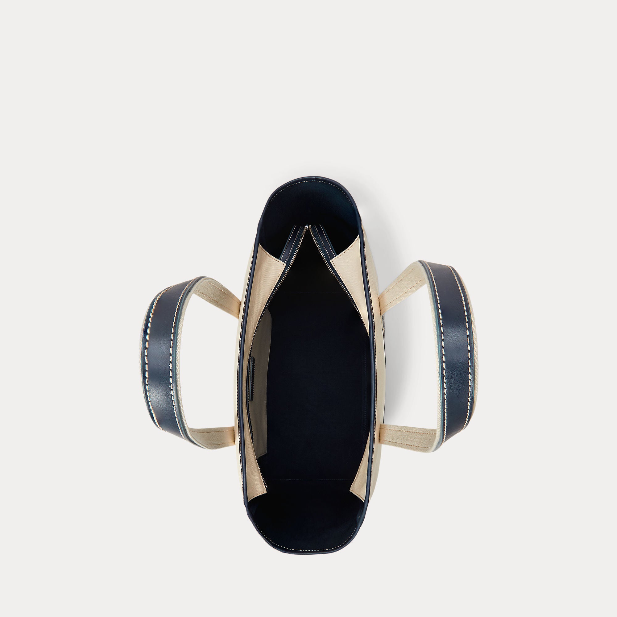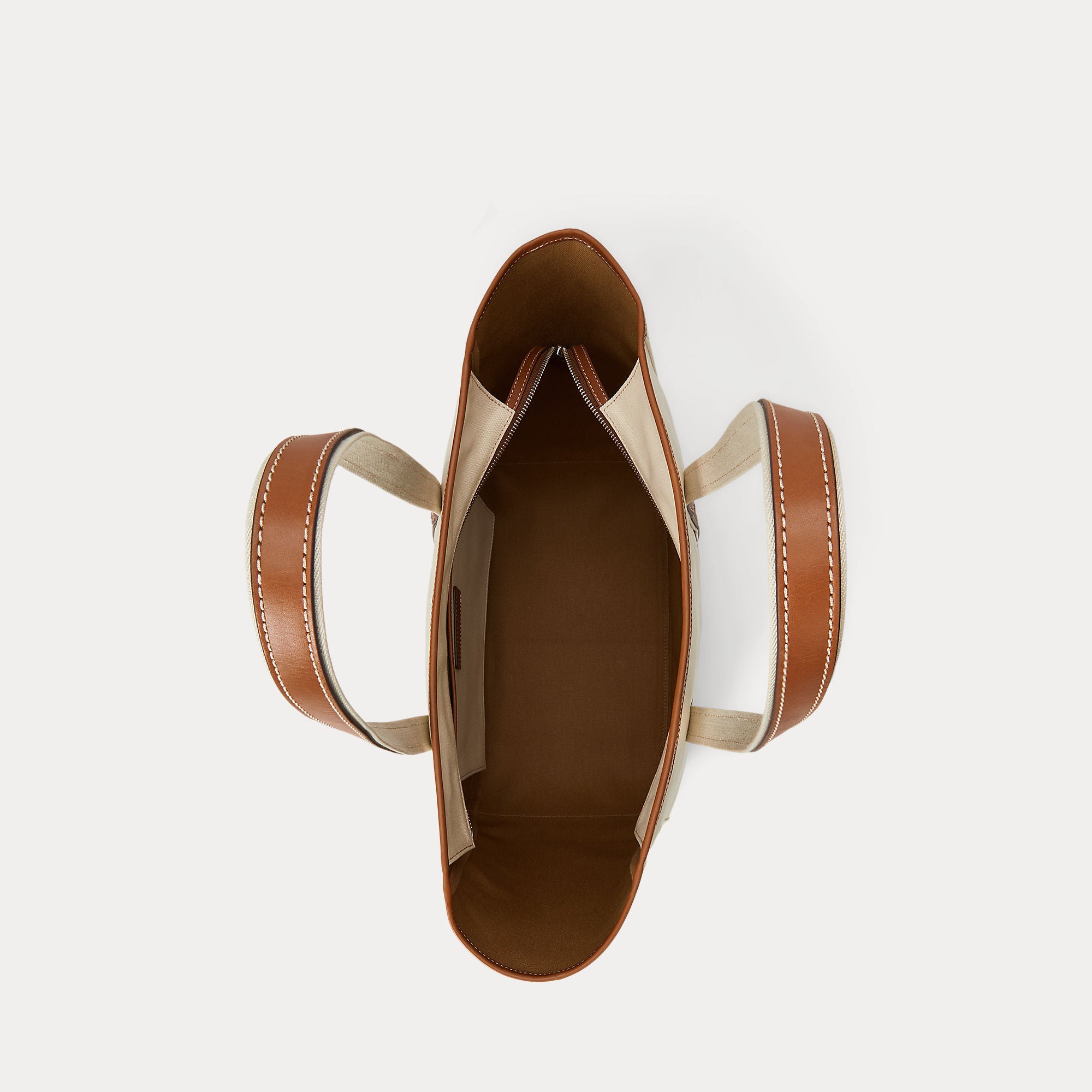 This shopper tote combines resilient canvas with burnished leather trim featuring topstitched details, while signature branded elements, including our embroidered Pony and an embossed logo tag, reinforce its heritage appeal. The classic silhouette features a thoughtfully designed top zip closure and is accented with interior and exterior slip pockets for easy access to essentials.