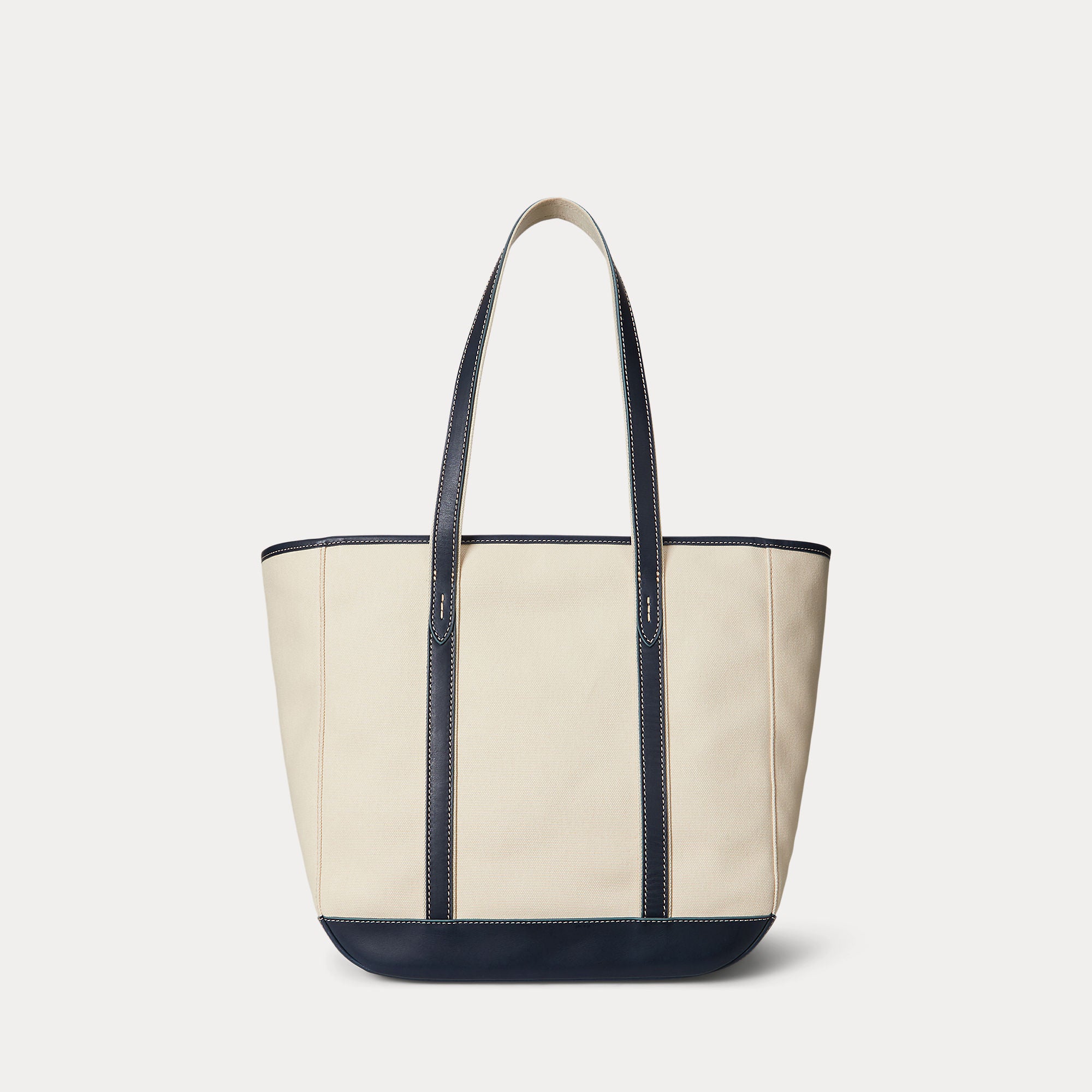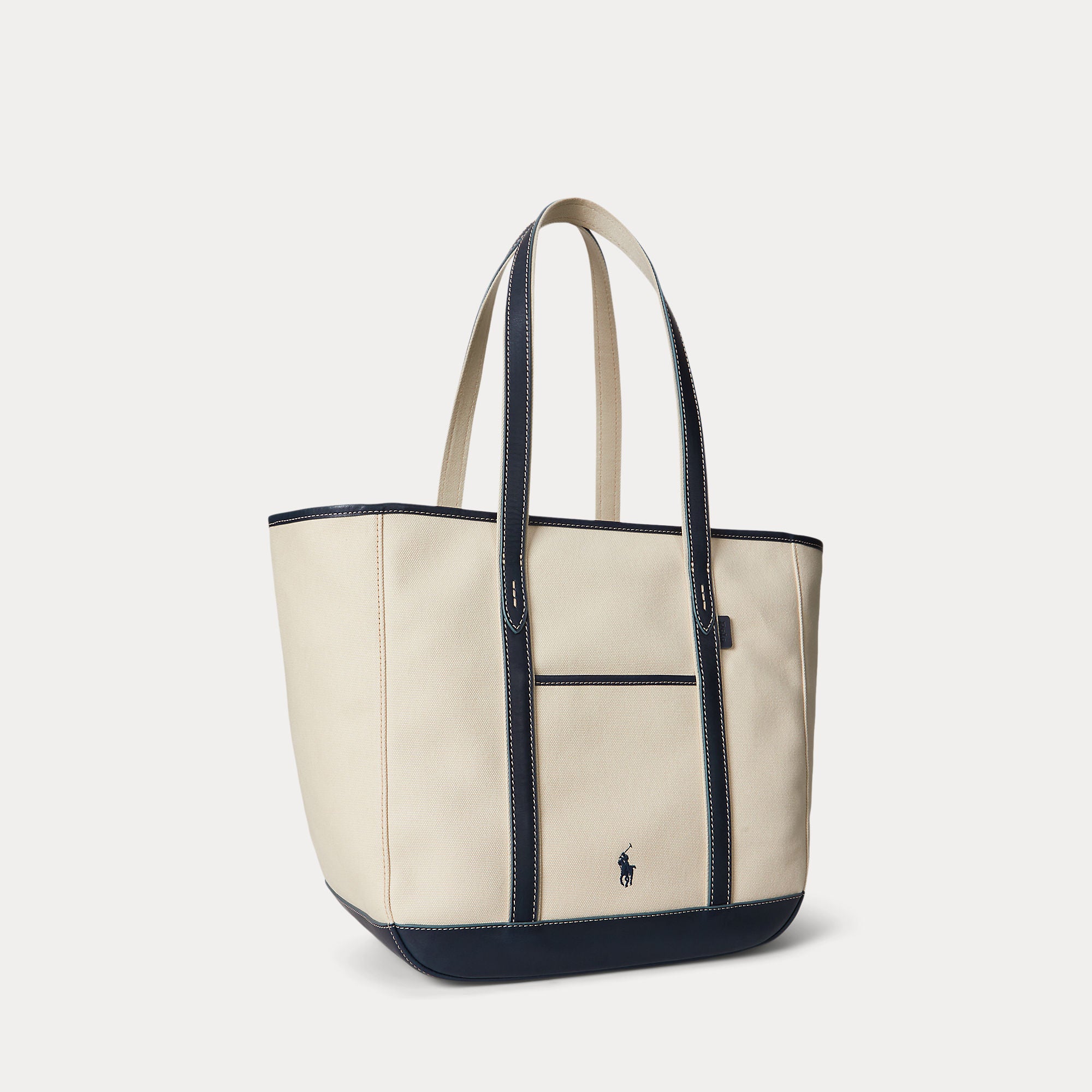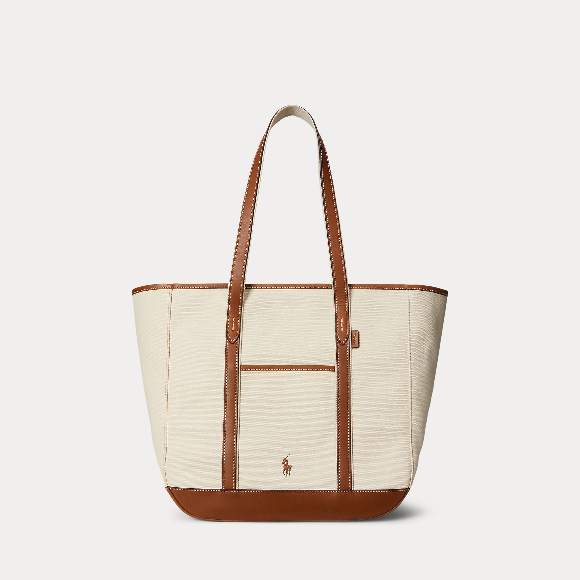 This shopper tote combines resilient canvas with burnished leather trim featuring topstitched details, while signature branded elements, including our embroidered Pony and an embossed logo tag, reinforce its heritage appeal. The classic silhouette features a thoughtfully designed top zip closure and is accented with interior and exterior slip pockets for easy access to essentials.