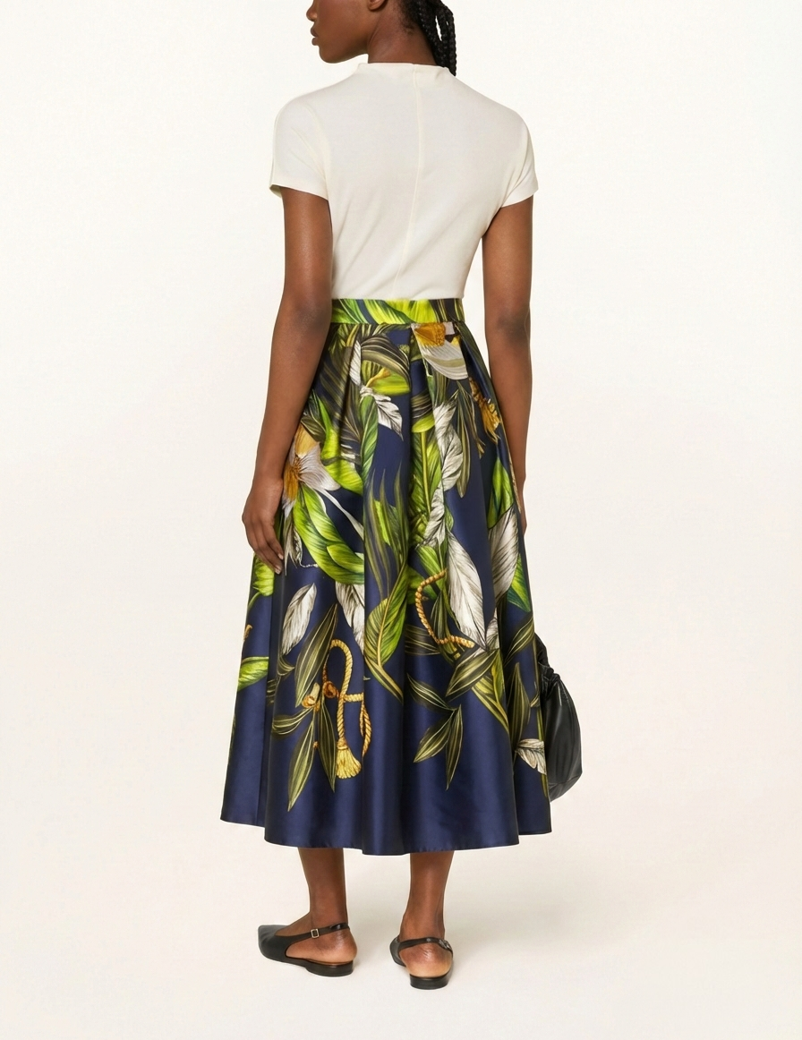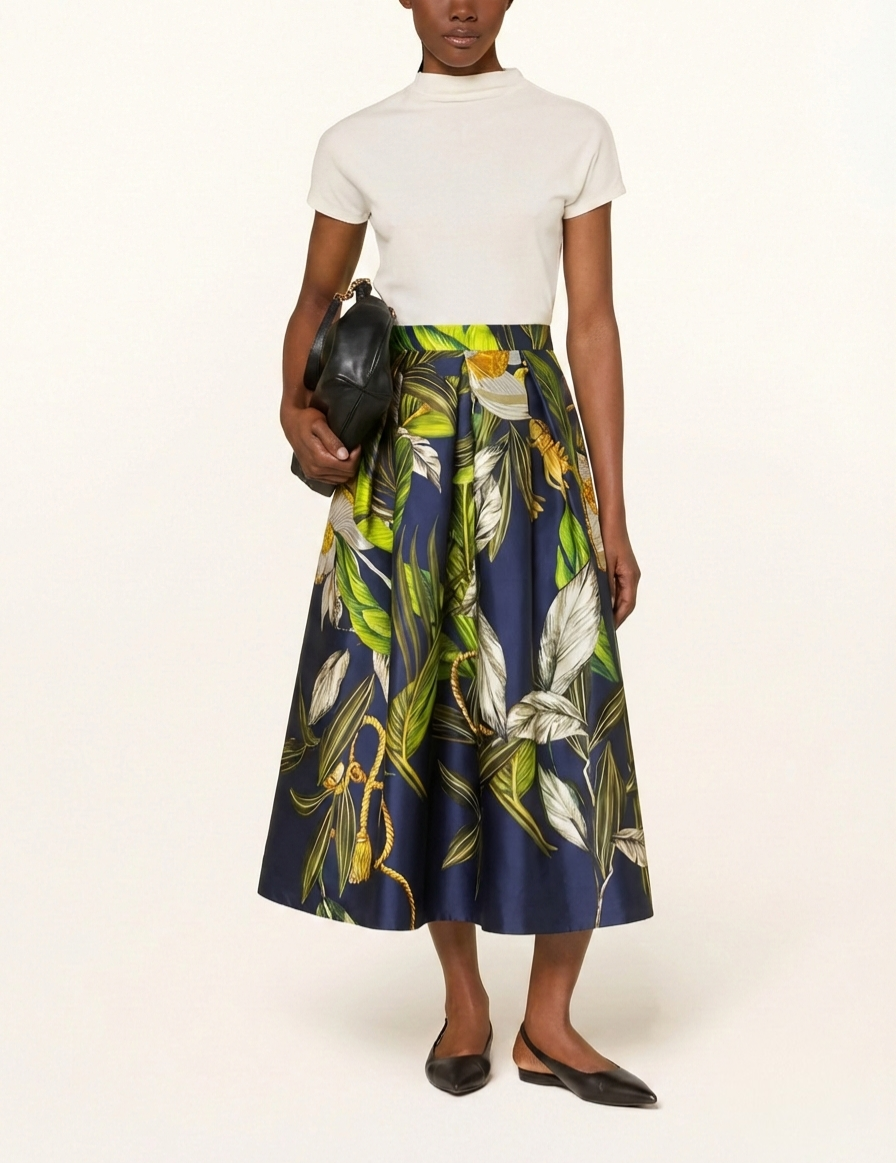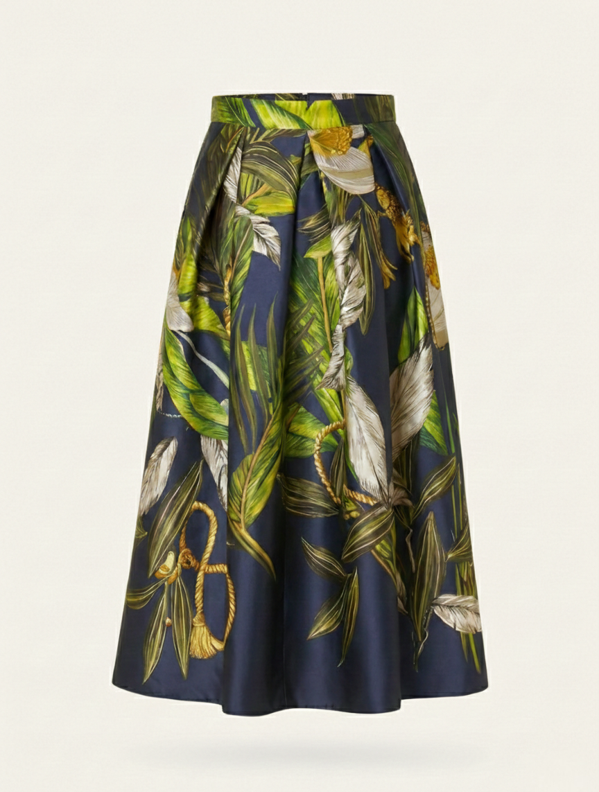 Experience the architectural elegance of Mikado fabric with this stunning high-waisted midi skirt. Expertly made in Italy, this piece is designed for the woman who appreciates a bold, structured silhouette and the refined luster of premium textiles.