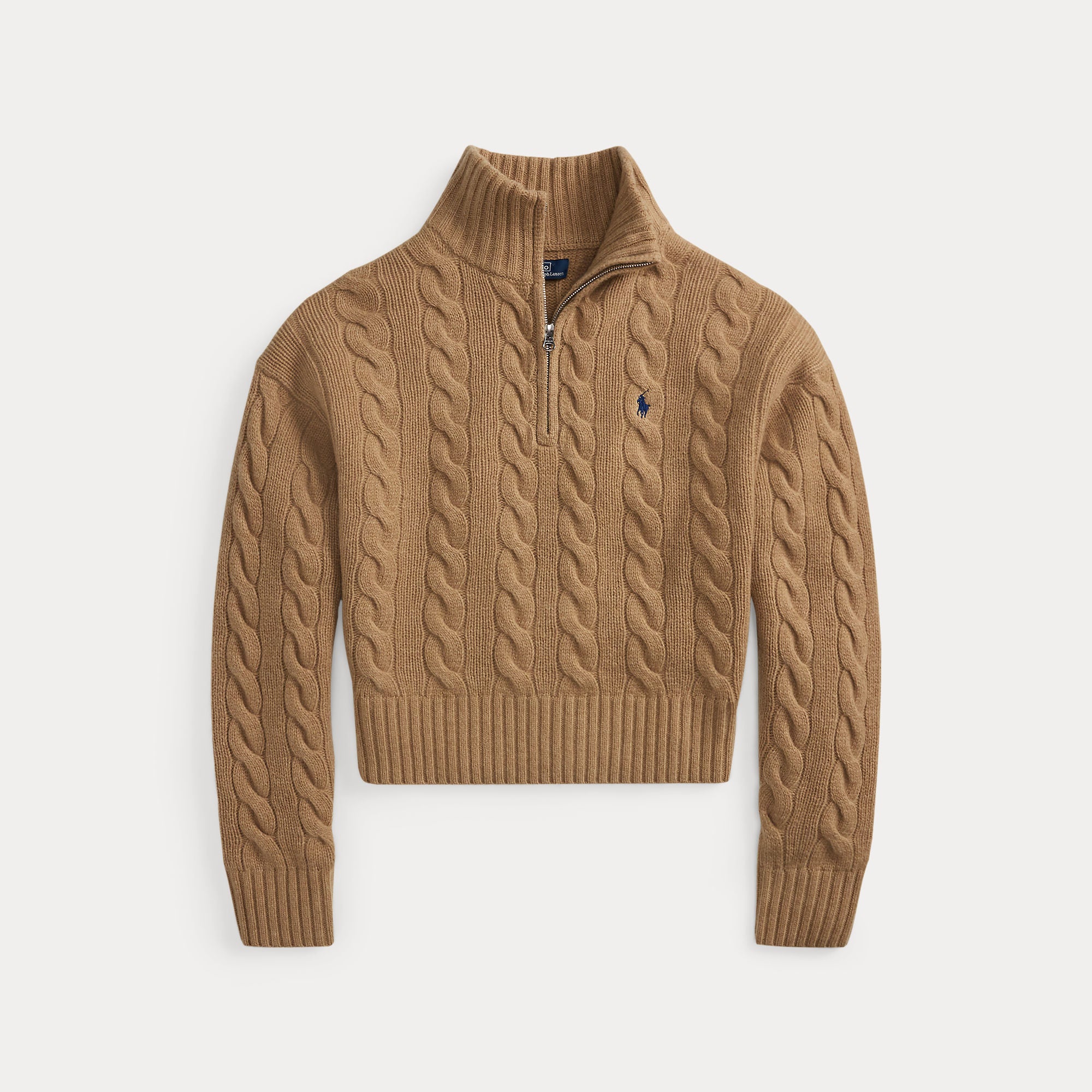 Italian wool and cashmere is cable-knit for a soft, chunky texture to create this relaxed-fitting pullover featuring a half-zip placket. Our signature embroidered Pony accents the chest.
