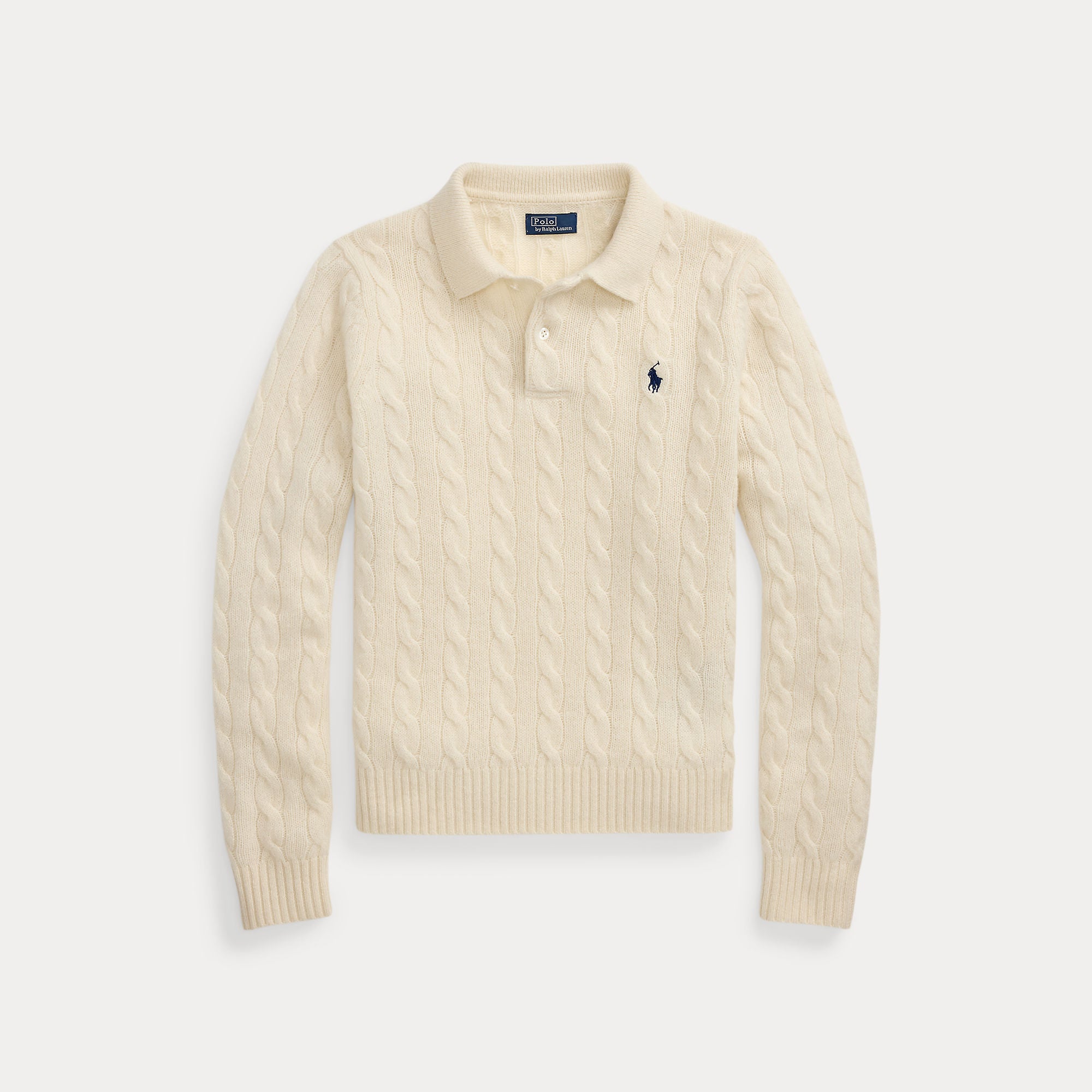Ralph Lauren’s signature cable-knit construction and a classic Polo collar come together to create this slim-fitting sweater crafted with a medium-weight blend featuring soft Italian wool and cashmere.