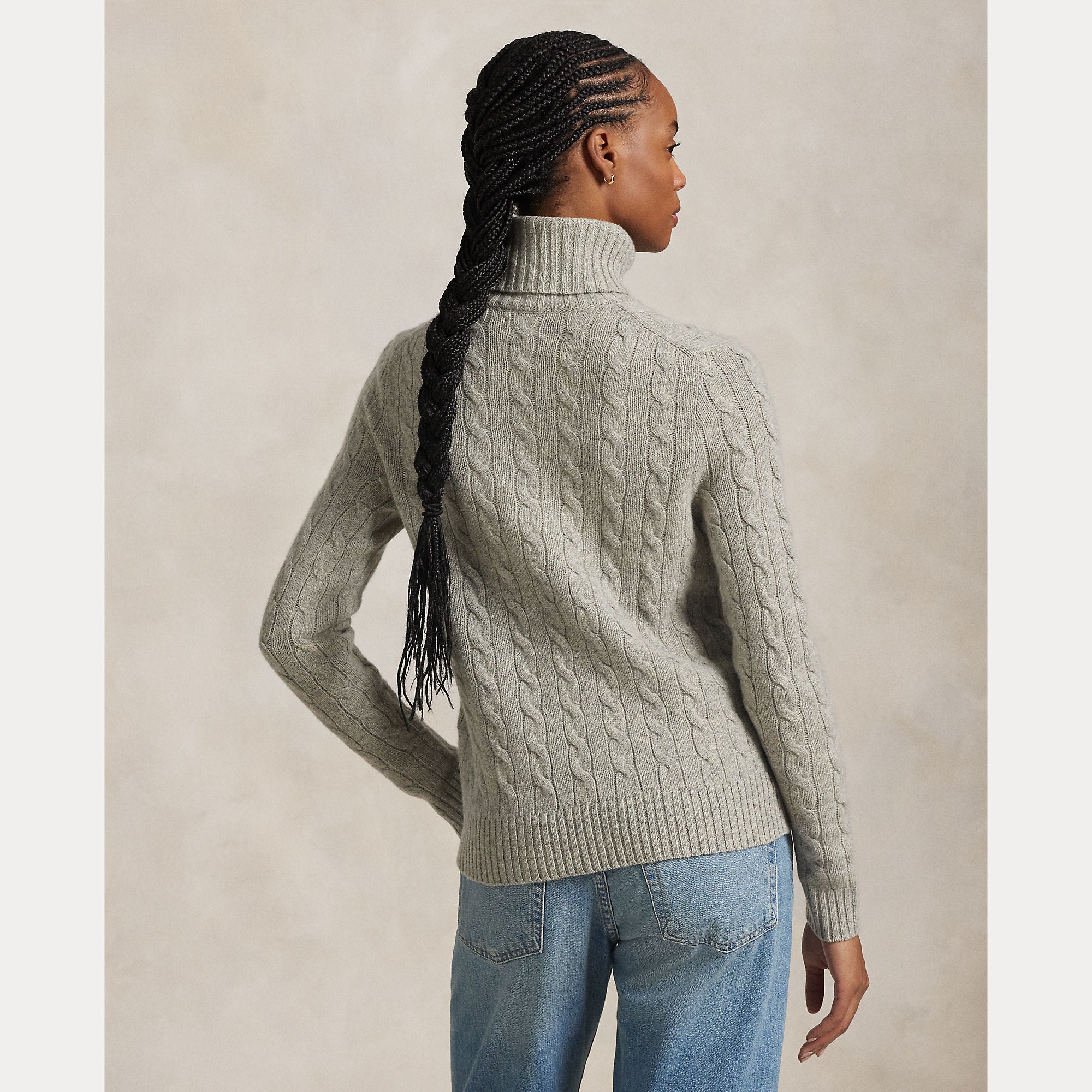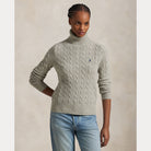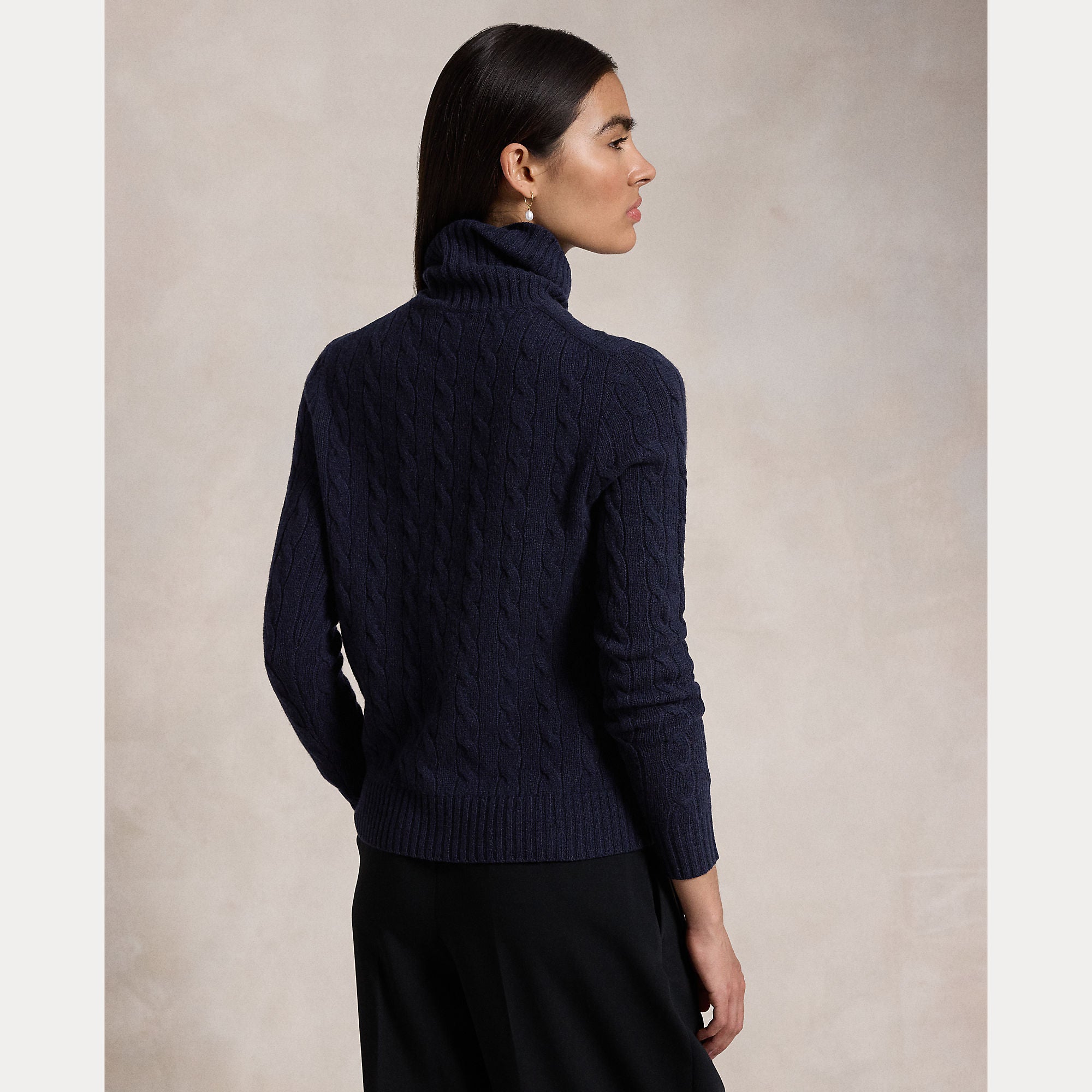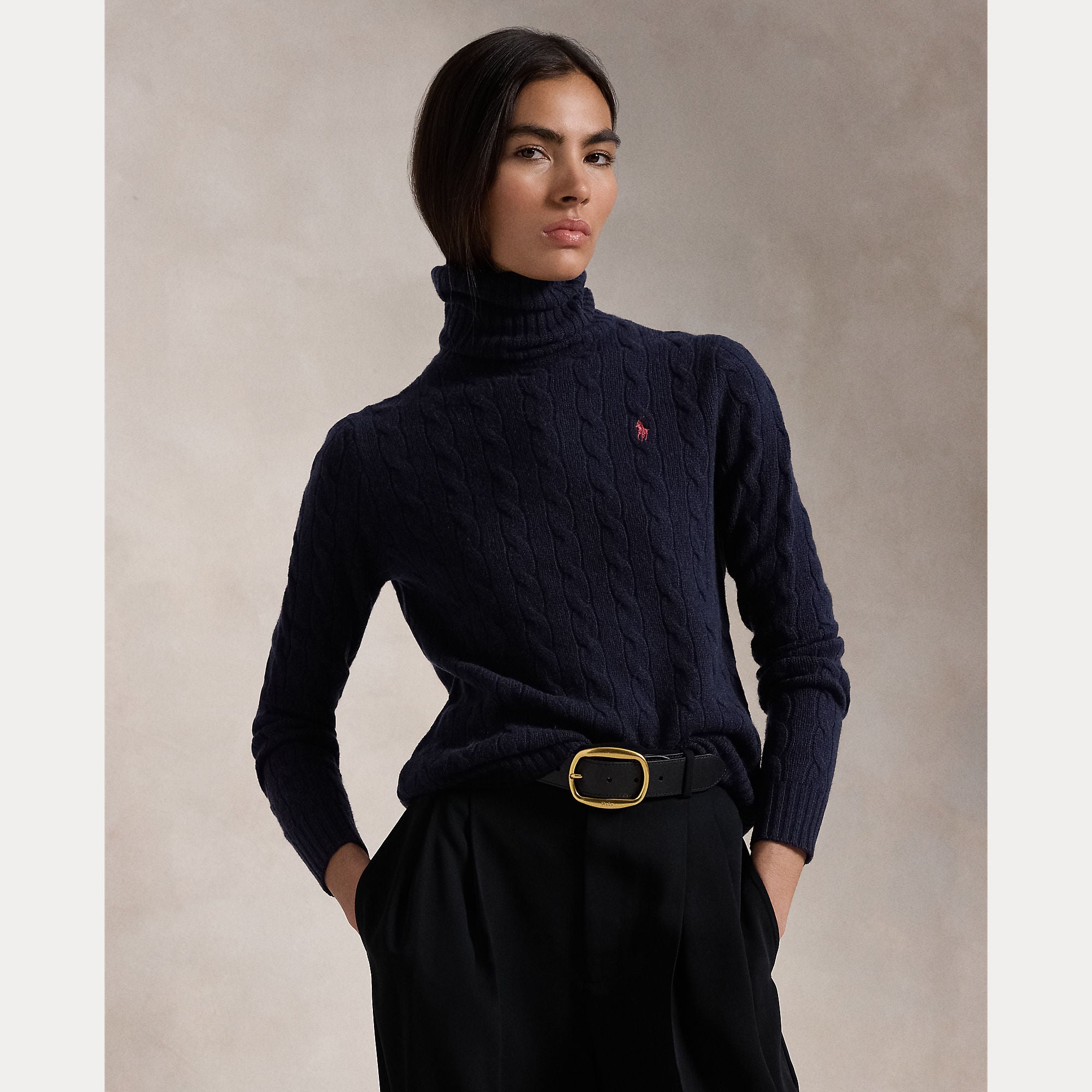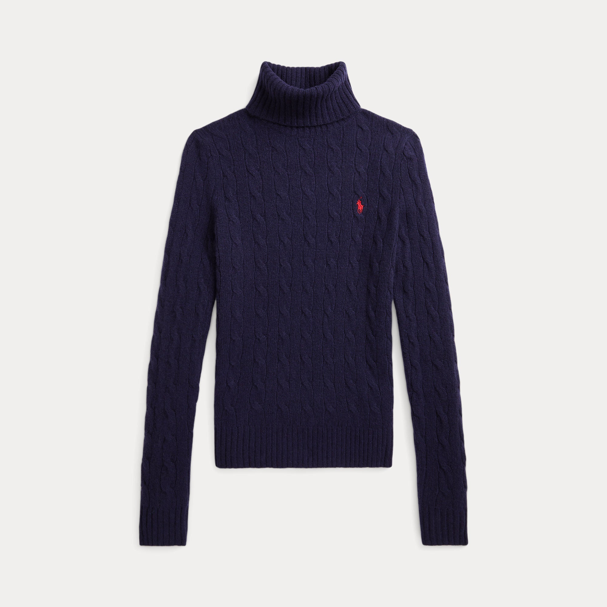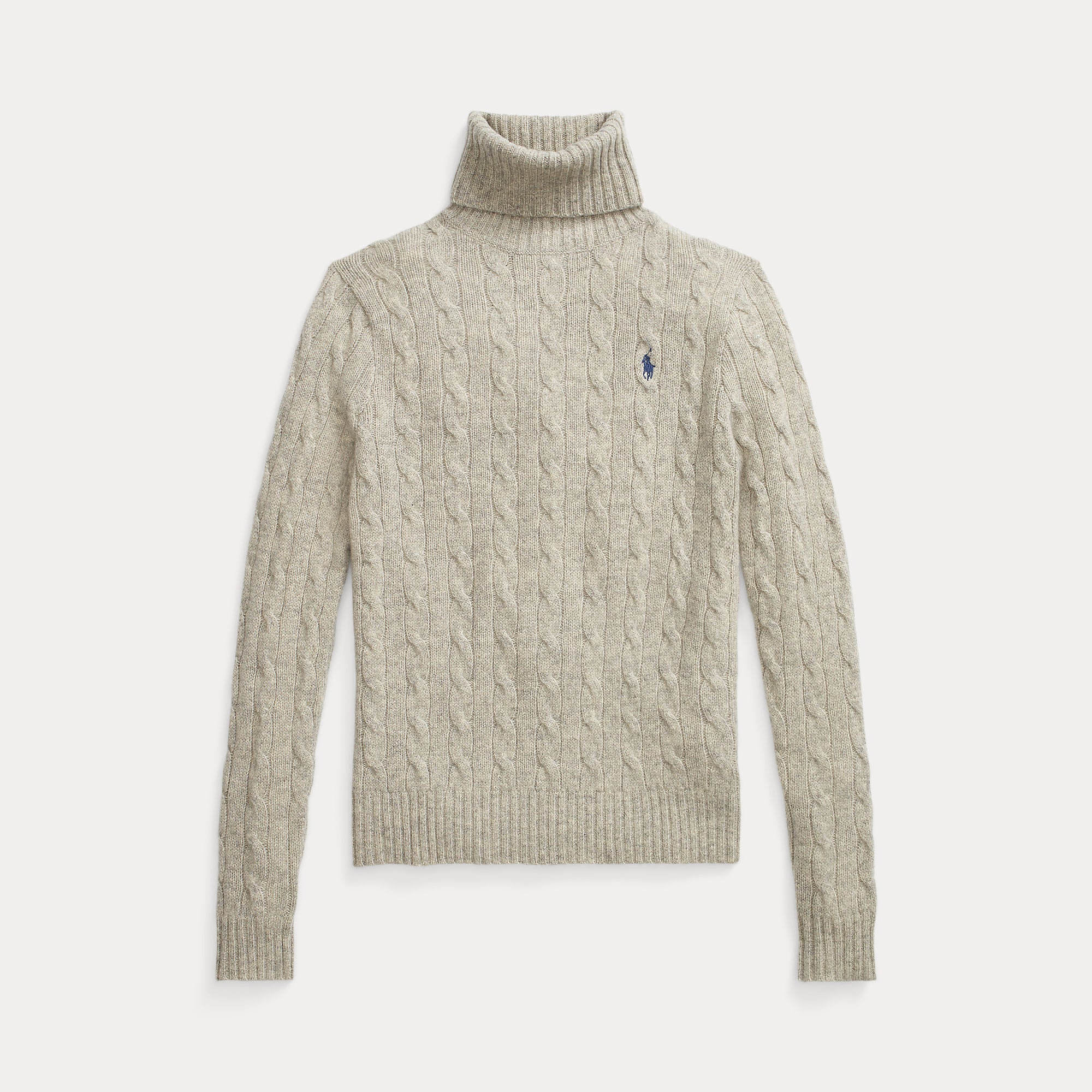 Polo's signature cable-knit construction lends soft texture to this wool-and-cashmere turtleneck sweater. Our embroidered Pony accents the chest.