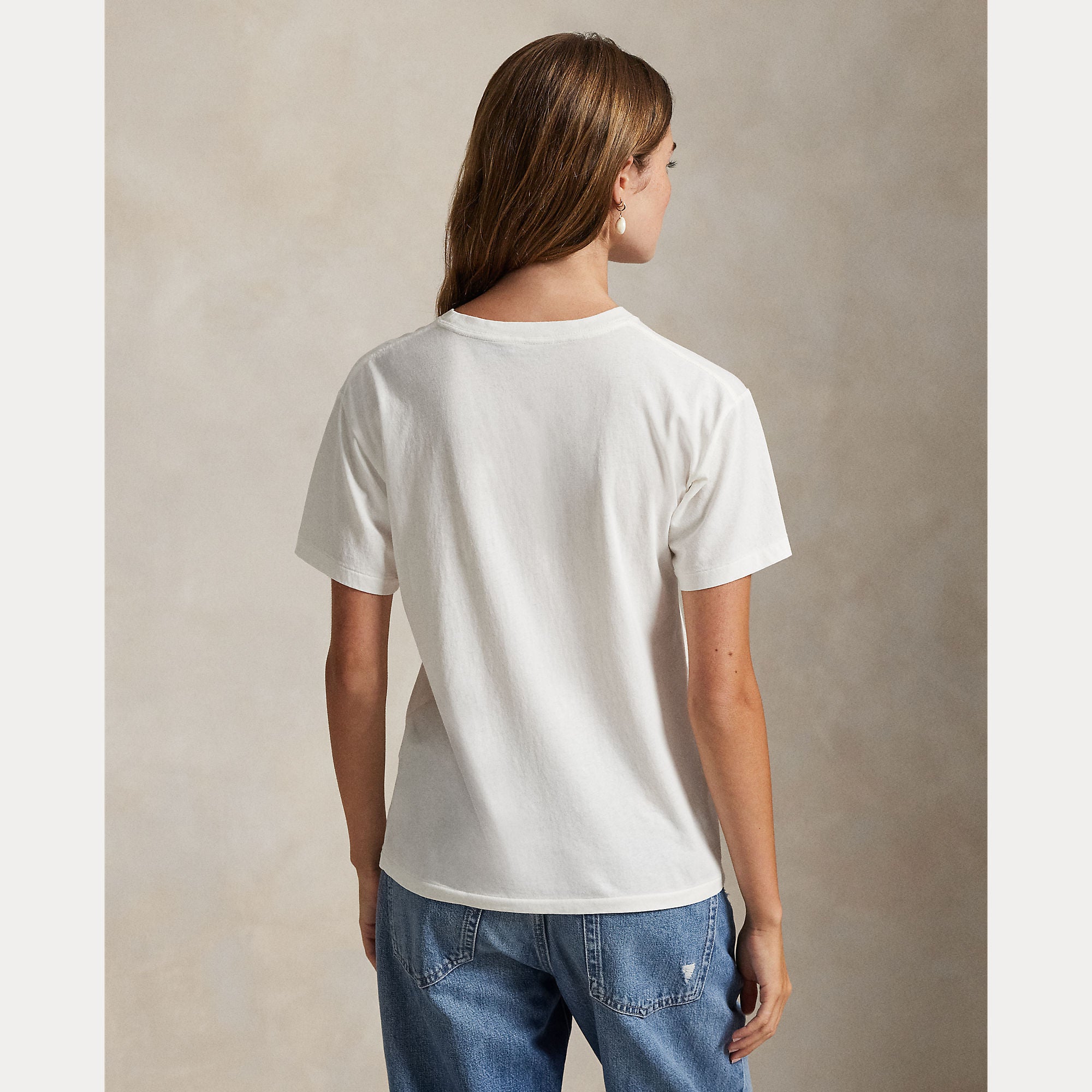 Ralph Lauren’s Polo Bear is featured at the front of this cotton jersey crewneck tee, along with our signature logo.