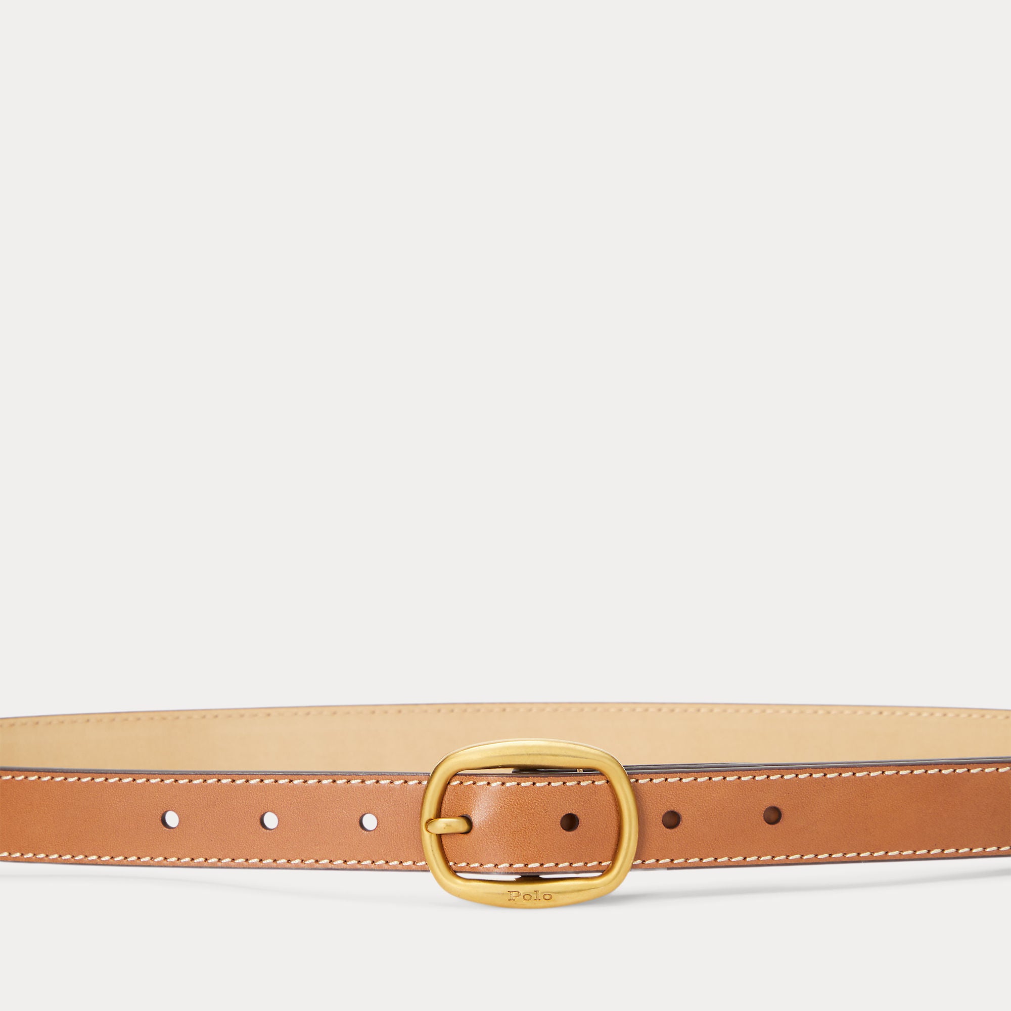 Crafted with full-grain vachetta leather, this belt is detailed with a gold-tone brass oval buckle engraved with our signature logo.