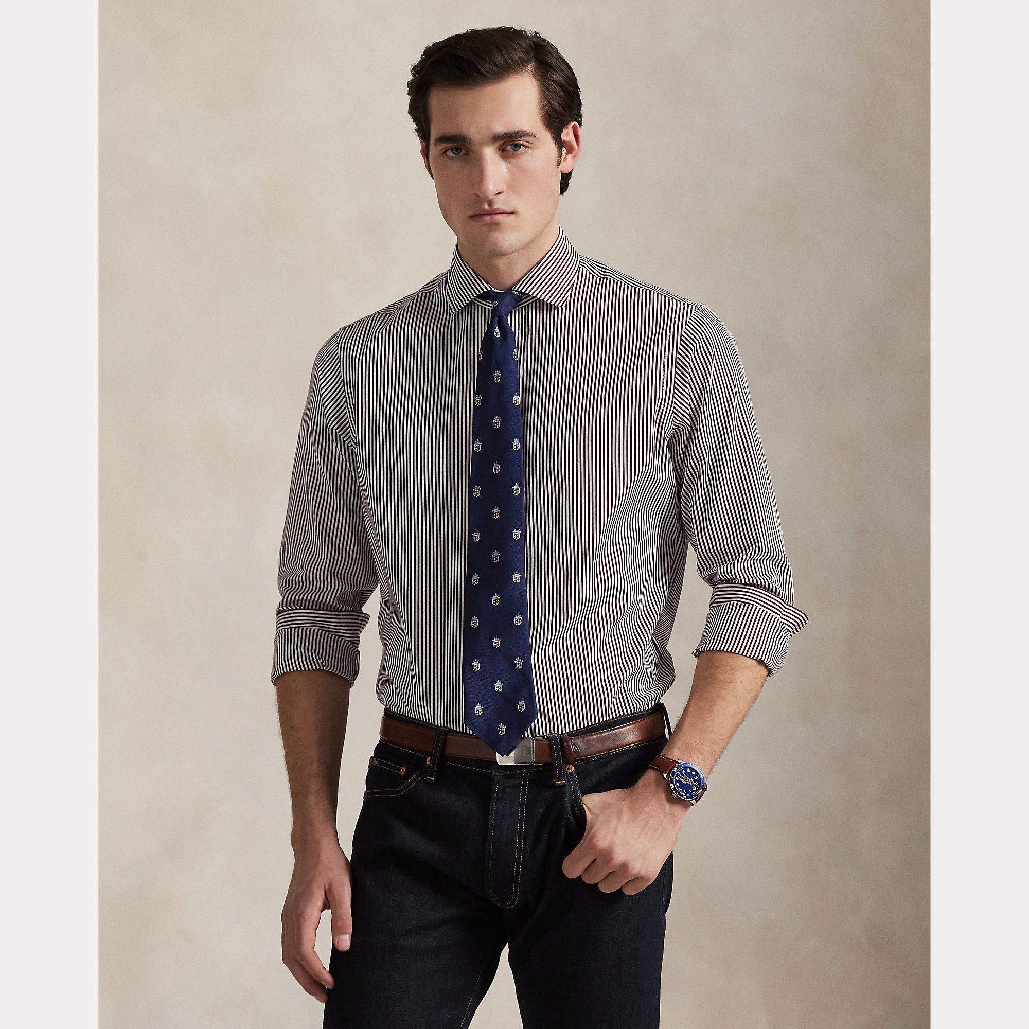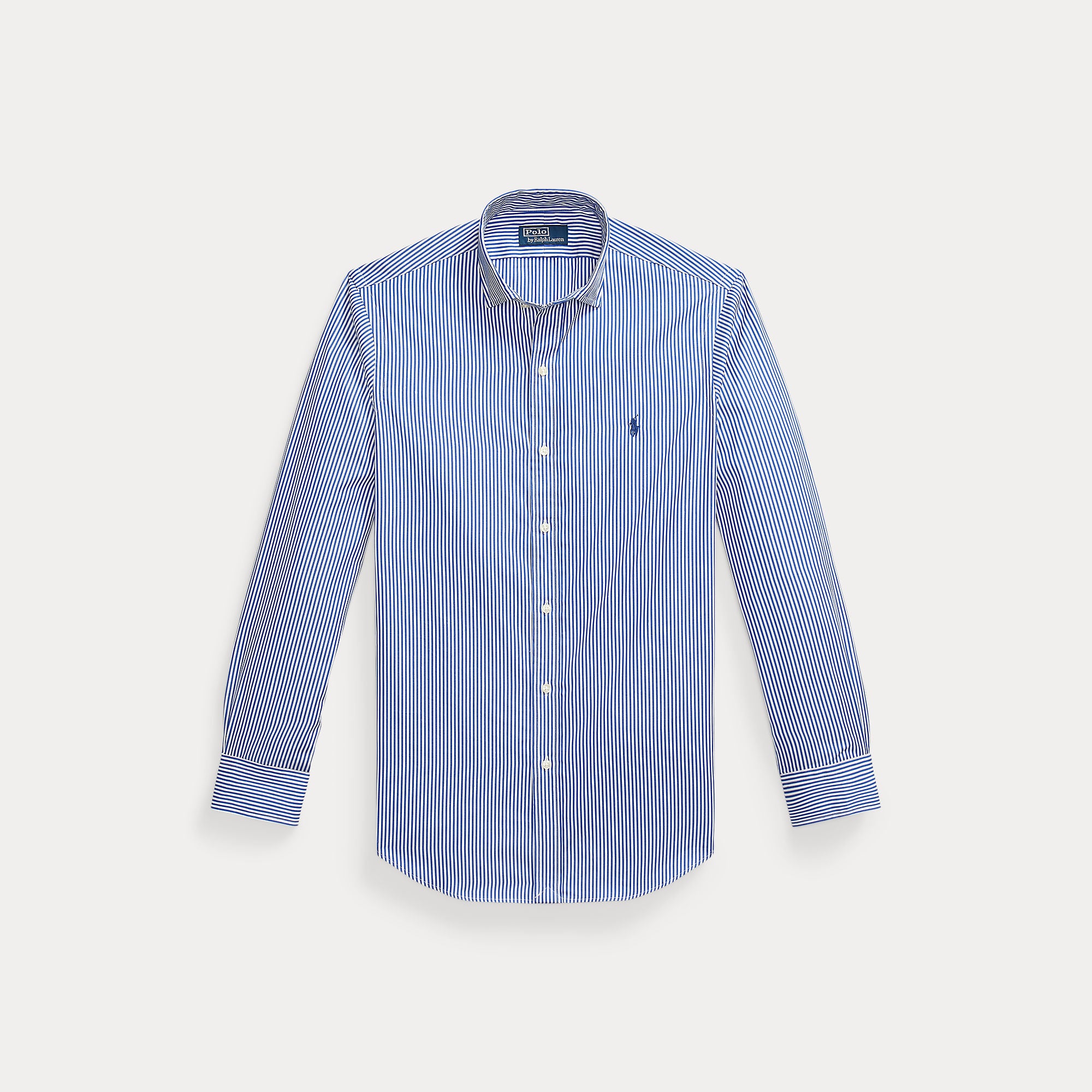 Meticulously crafted with lightweight cotton poplin, this striped shirt delivers impeccable Polo style with its crisp texture and precise tailoring. The classic design is further elevated by our iconic embroidered Pony, which adds a distinctive signature touch.