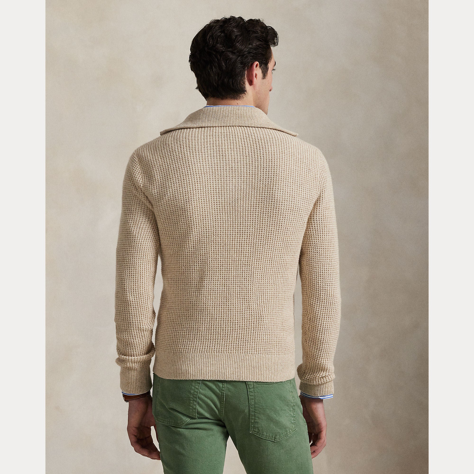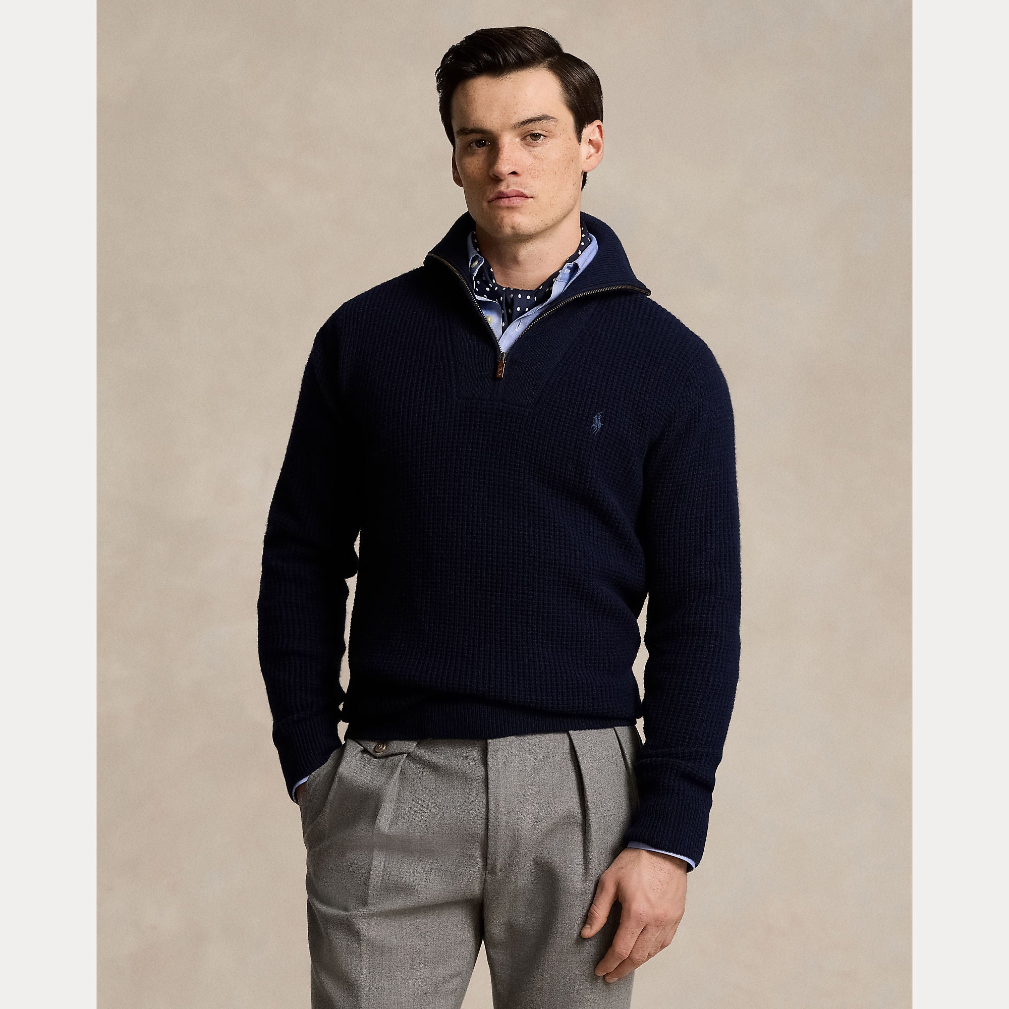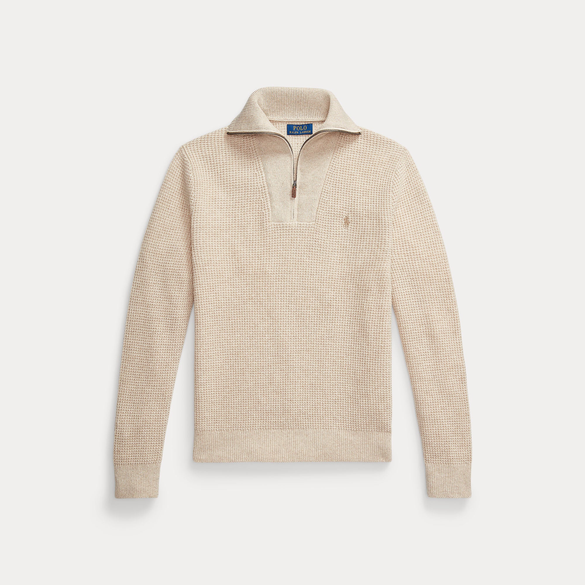 WAFFLE WOOL-COTTON QUARTER-ZIP SWEATER