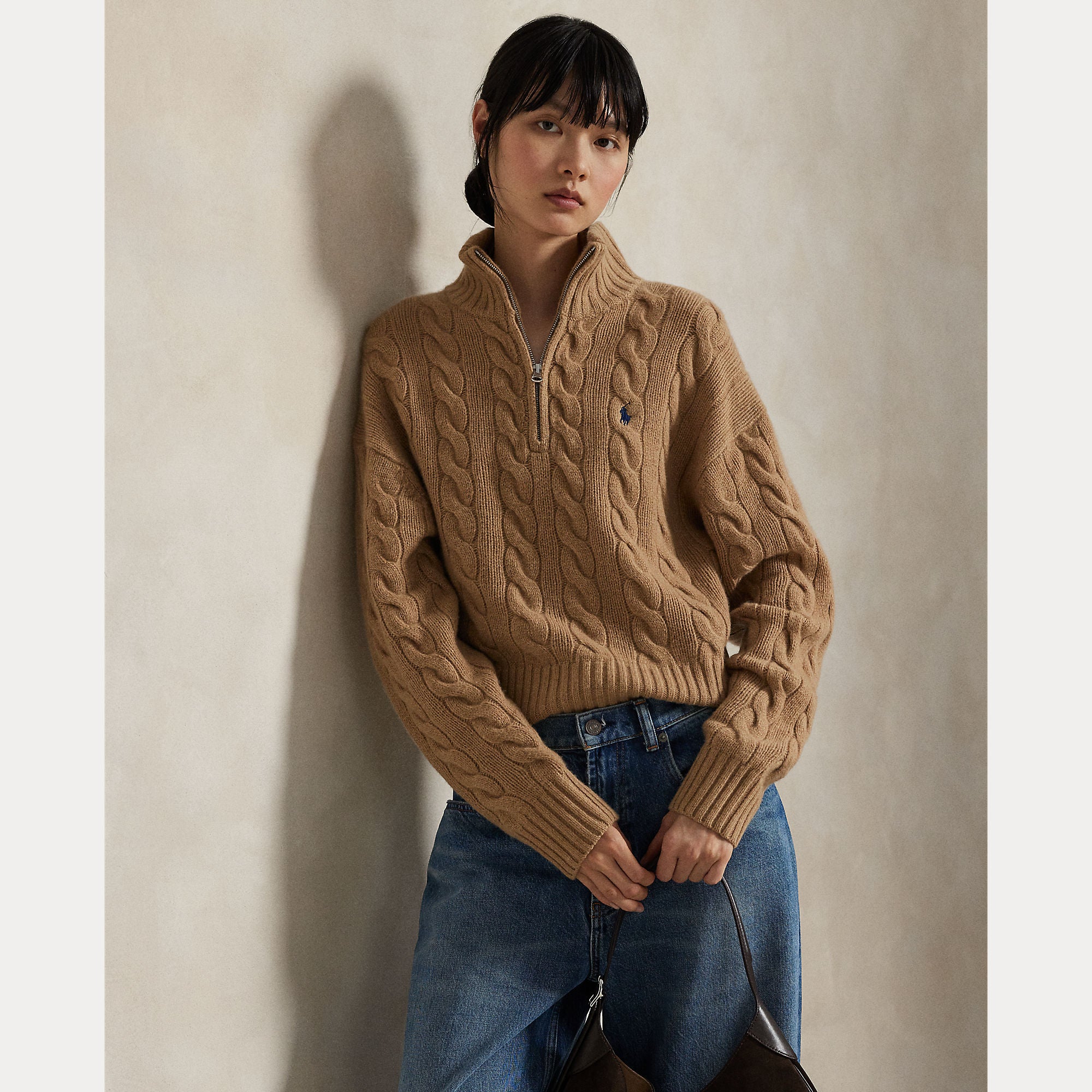 CABLE WOOL-CASHMERE HALF-ZIP SWEATER