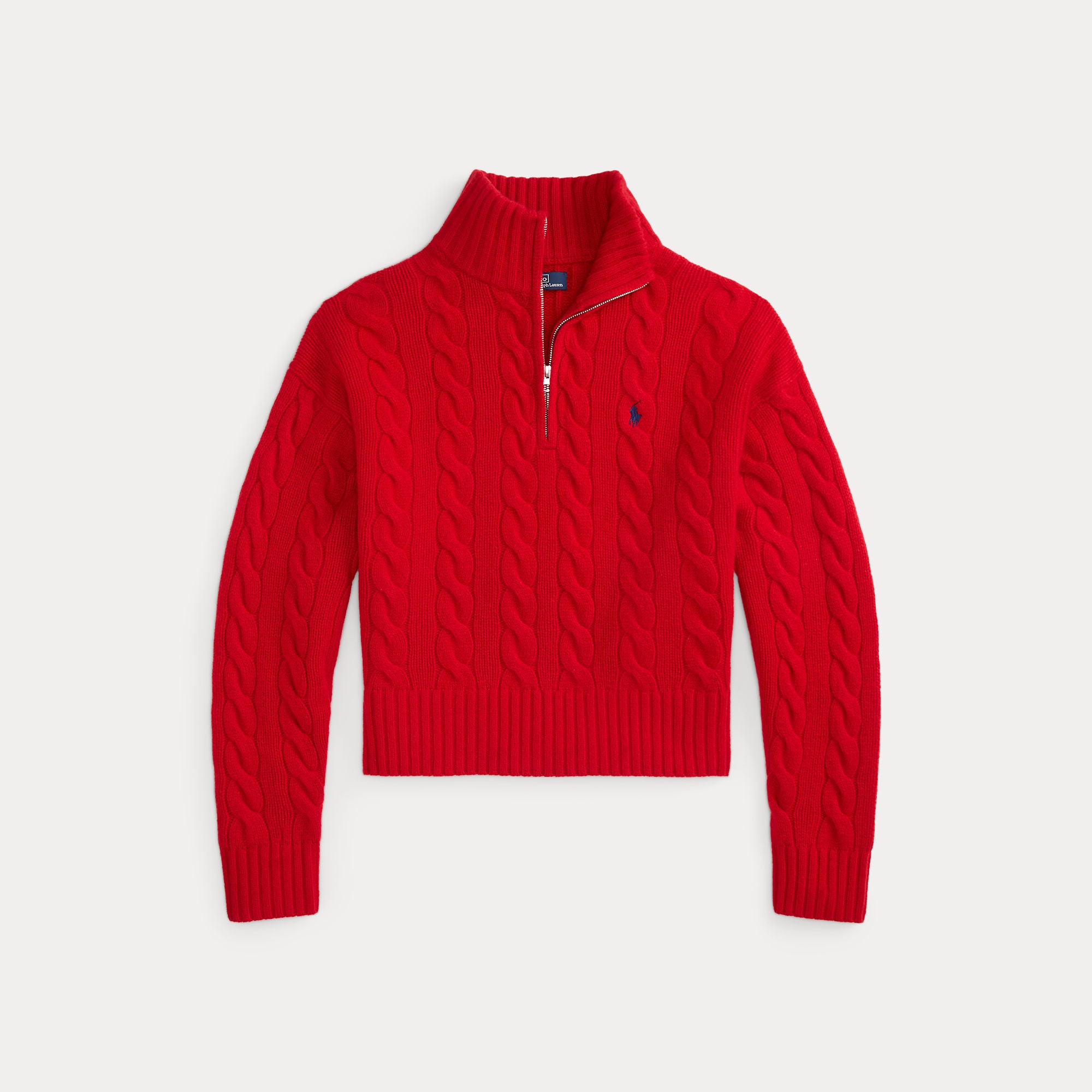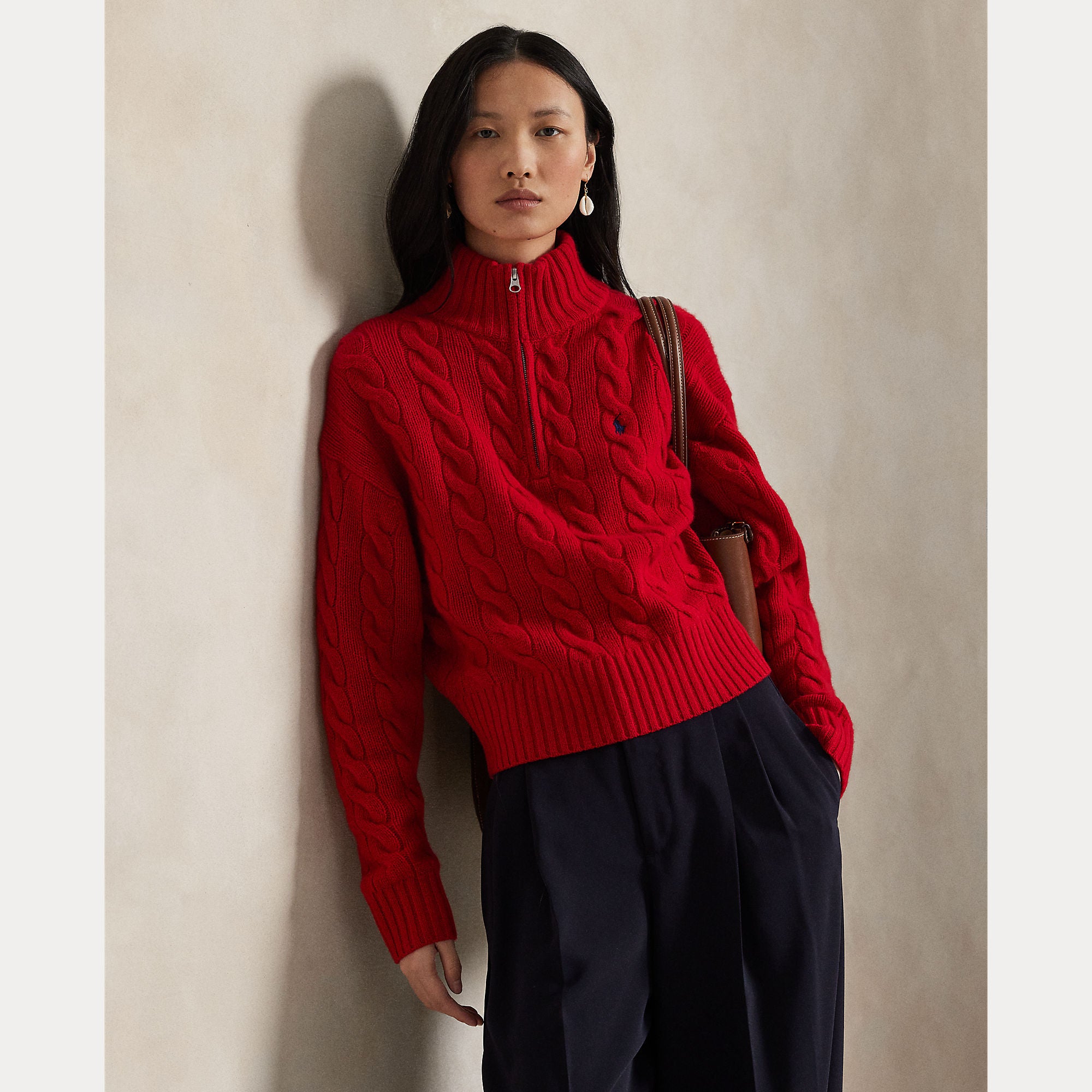 Italian wool and cashmere is cable-knit for a soft, chunky texture to create this relaxed-fitting pullover featuring a half-zip placket. Our signature embroidered Pony accents the chest.