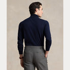 This lightweight sweater’s Italian wool yarn is treated for easy care and worsted for durability as well as a fine, smooth texture.