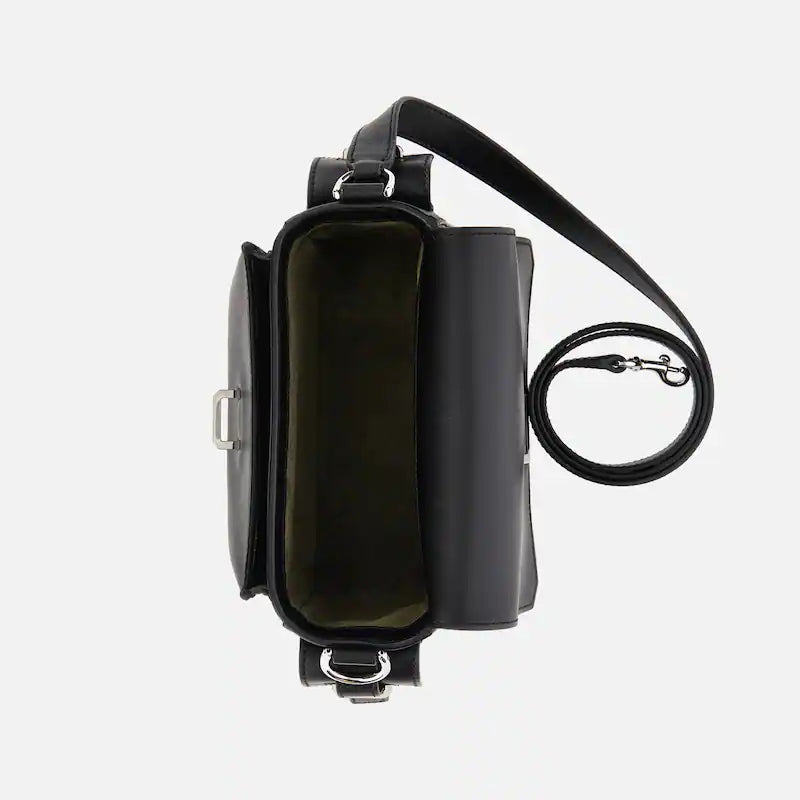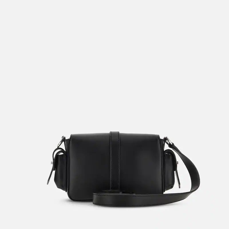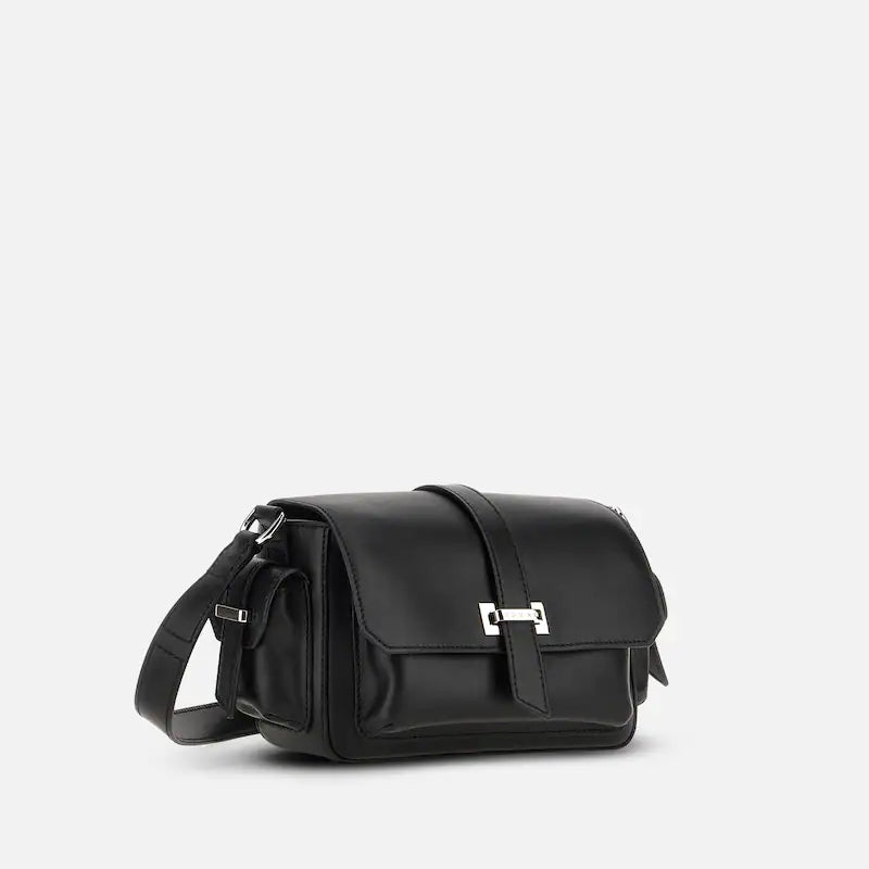 Compact but voluminous, functional but stylish. New interpretation of the classic camera bag, this model in soft leather is perfect for the everyday look. A flap with engraved metal logo on the strap keeper characterizes both the central compartment and sides. Featuring a semi-concealed front pocket, it comes with a shoulder strap for carrying crossbody or over the shoulder.
