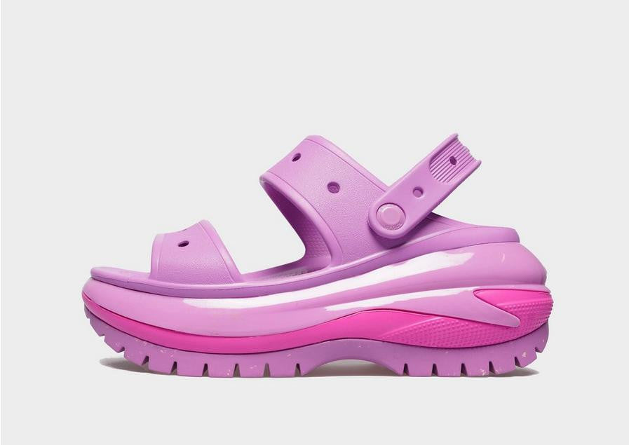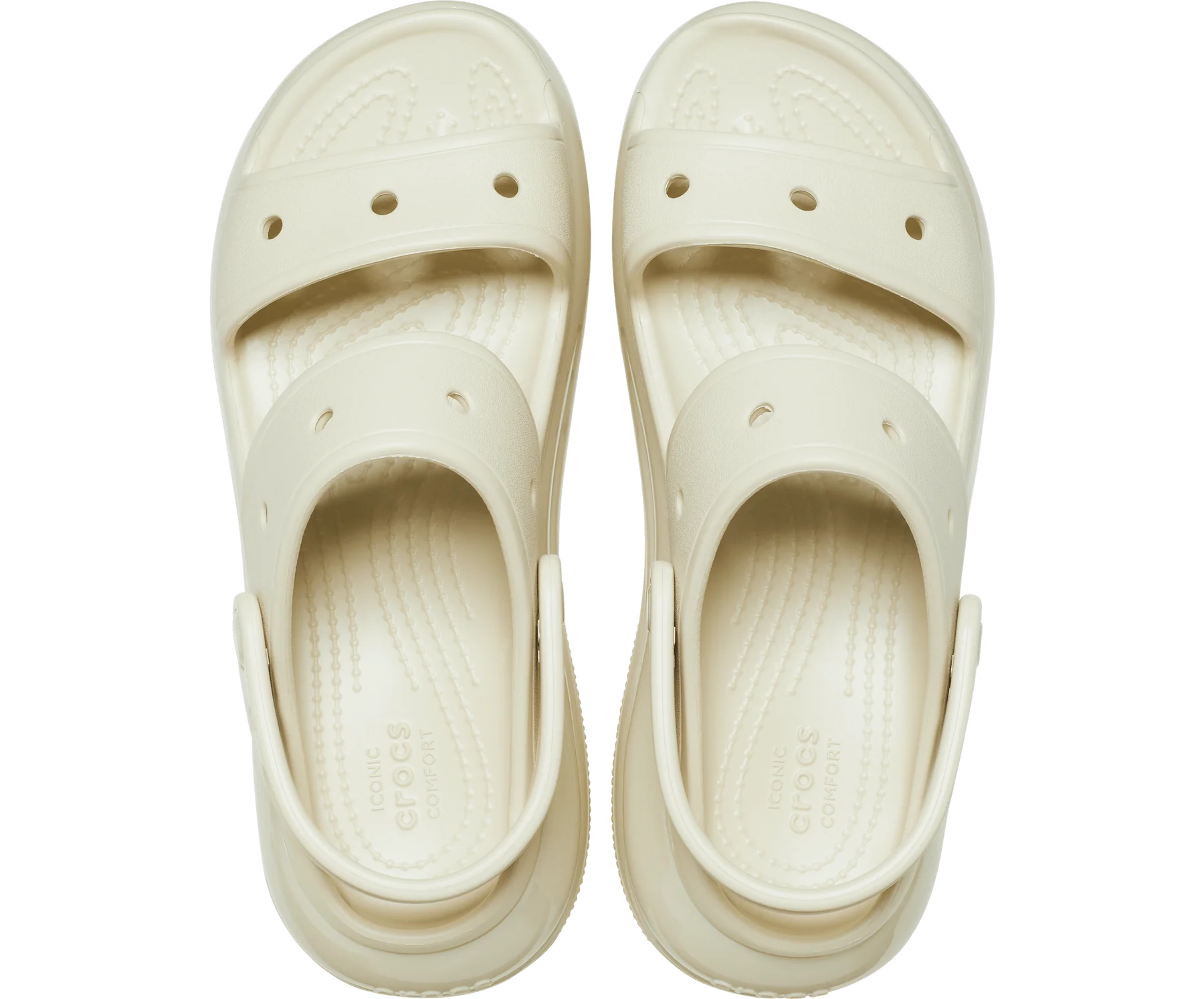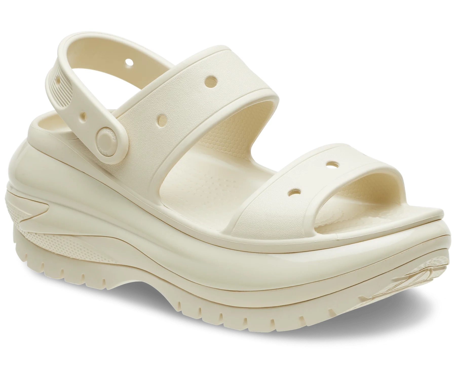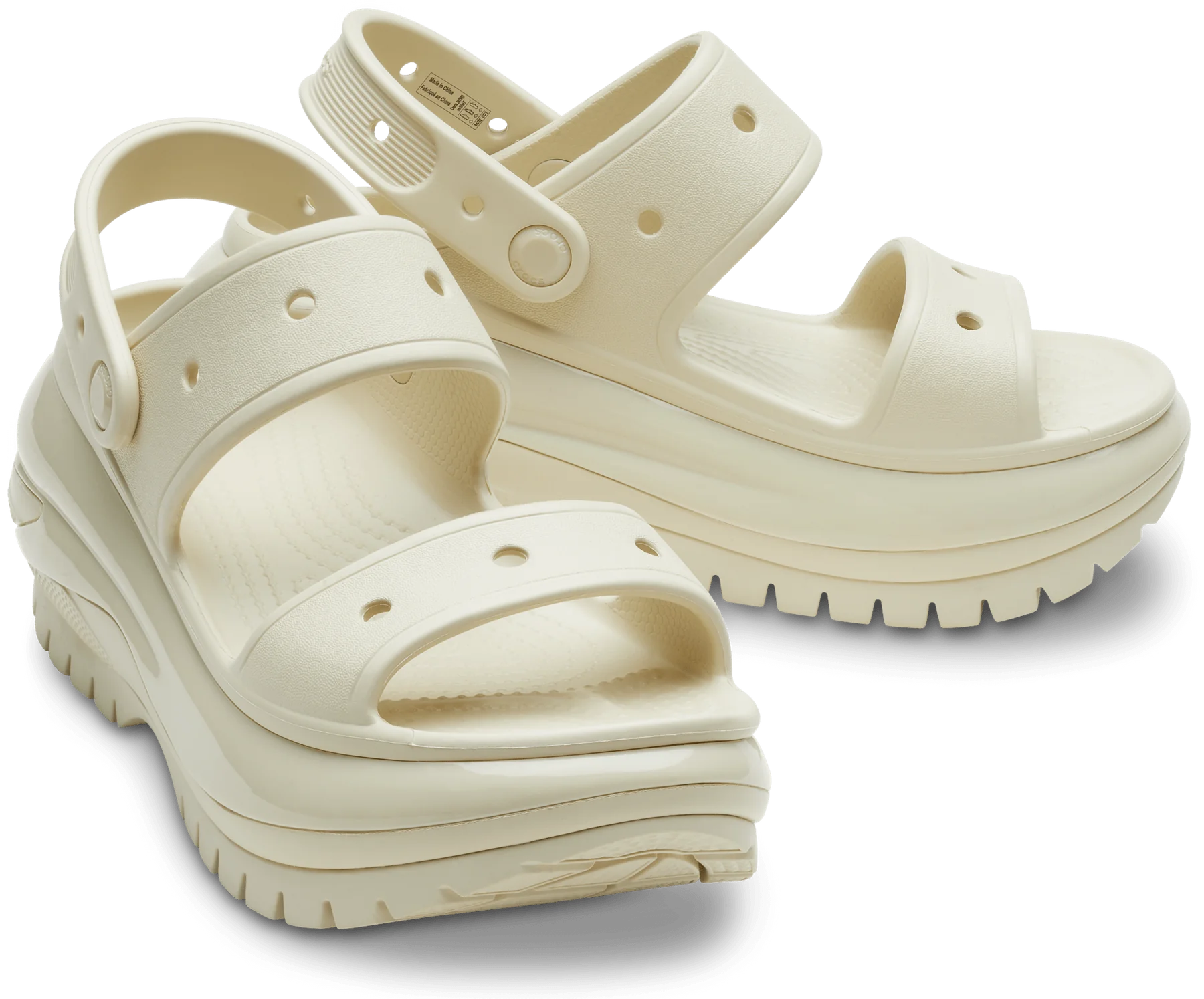 The look and feel of our Classic Mega Crush Clog is now available in sandal form. Introducing the Classic Mega Crush Sandal, featuring an enhanced rubber tread, updated detailing around the outsole and a platform ready to take any outfit to the next level. A two-strap upper and secure backstrap help ensure a secure fit, while boasting holes for personalization with Jibbitz™ charms. Are you ready for your new crush?